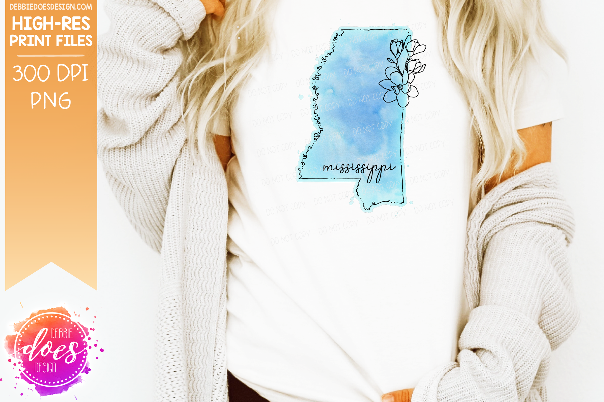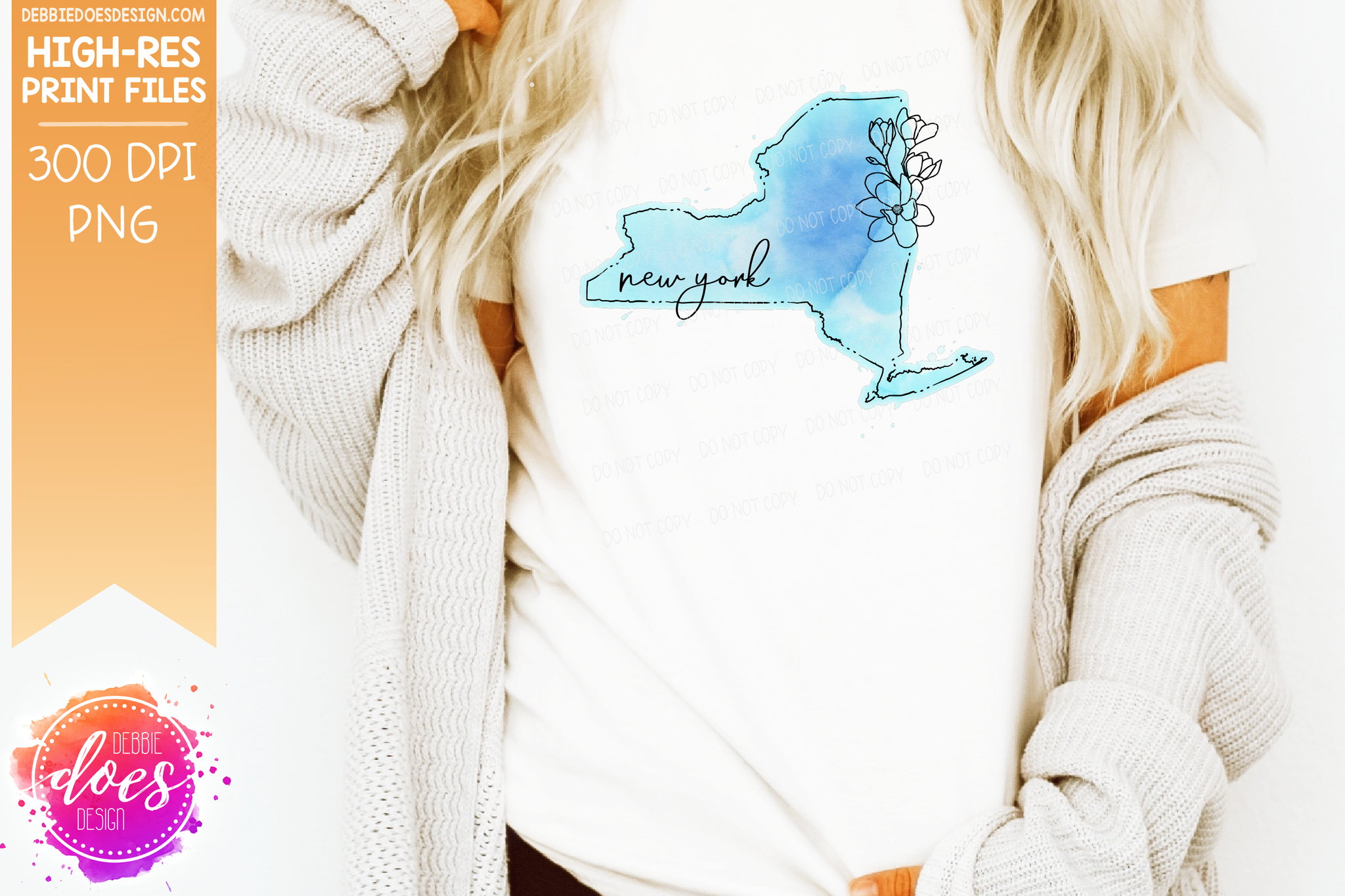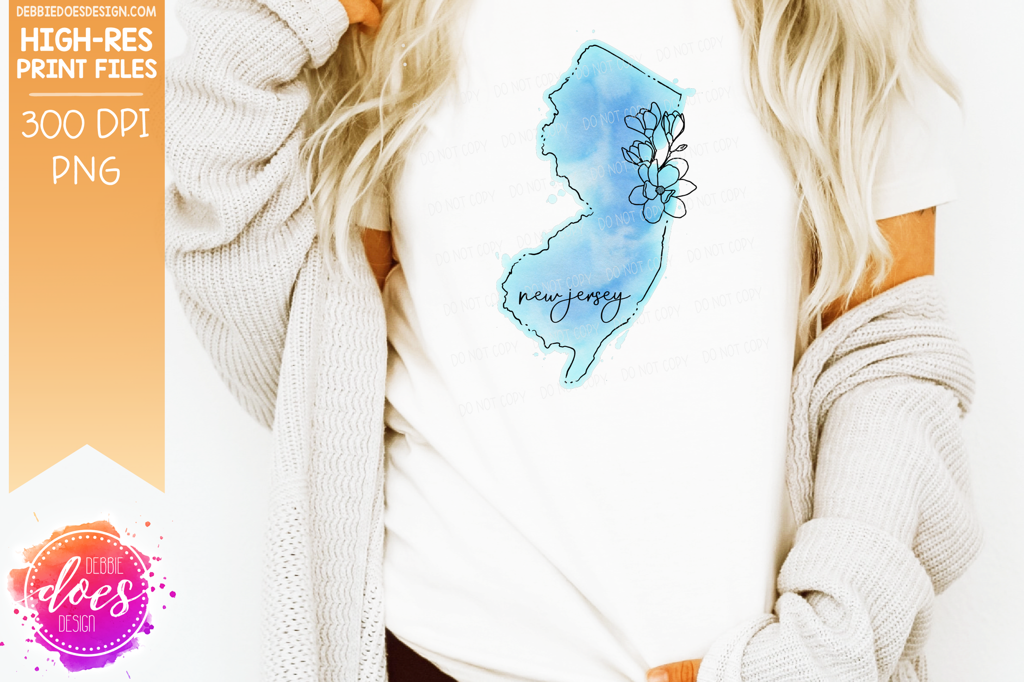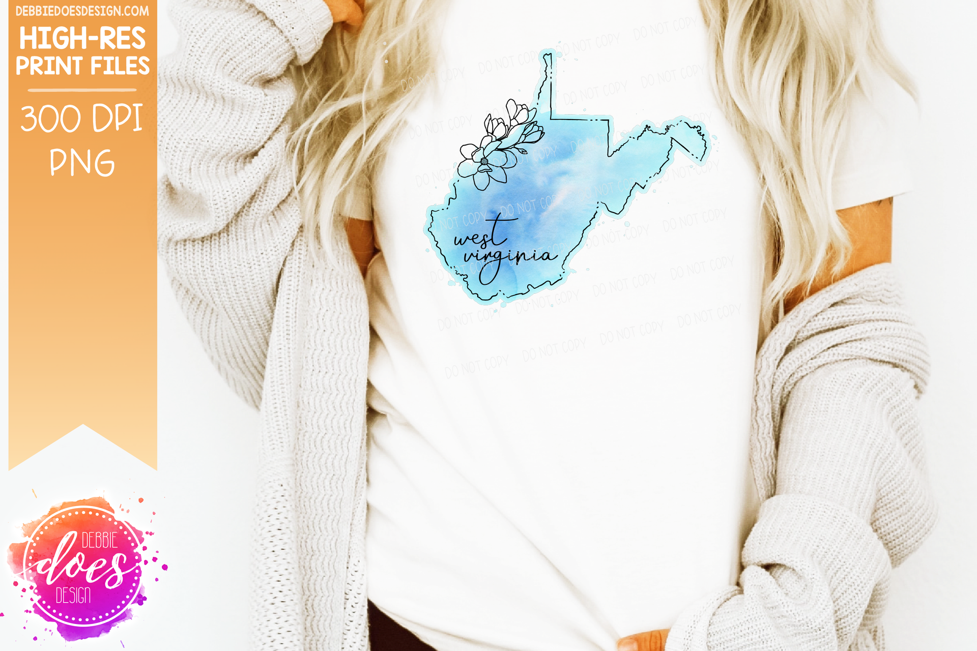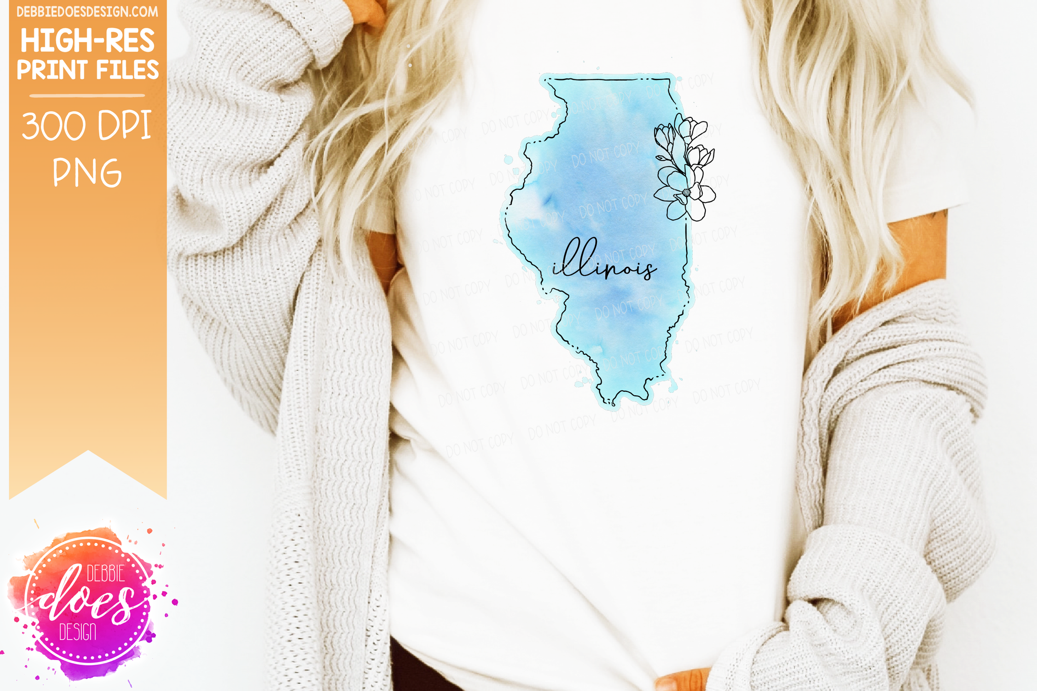 Blue Watercolor Floral Line State - (Individual States: Choose from all 50 US States, District of Columbia, PR, or Guam) - Sublimation/Printable Designs