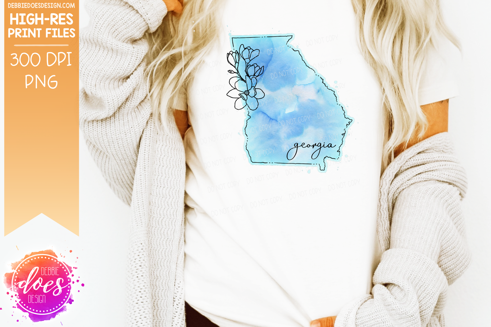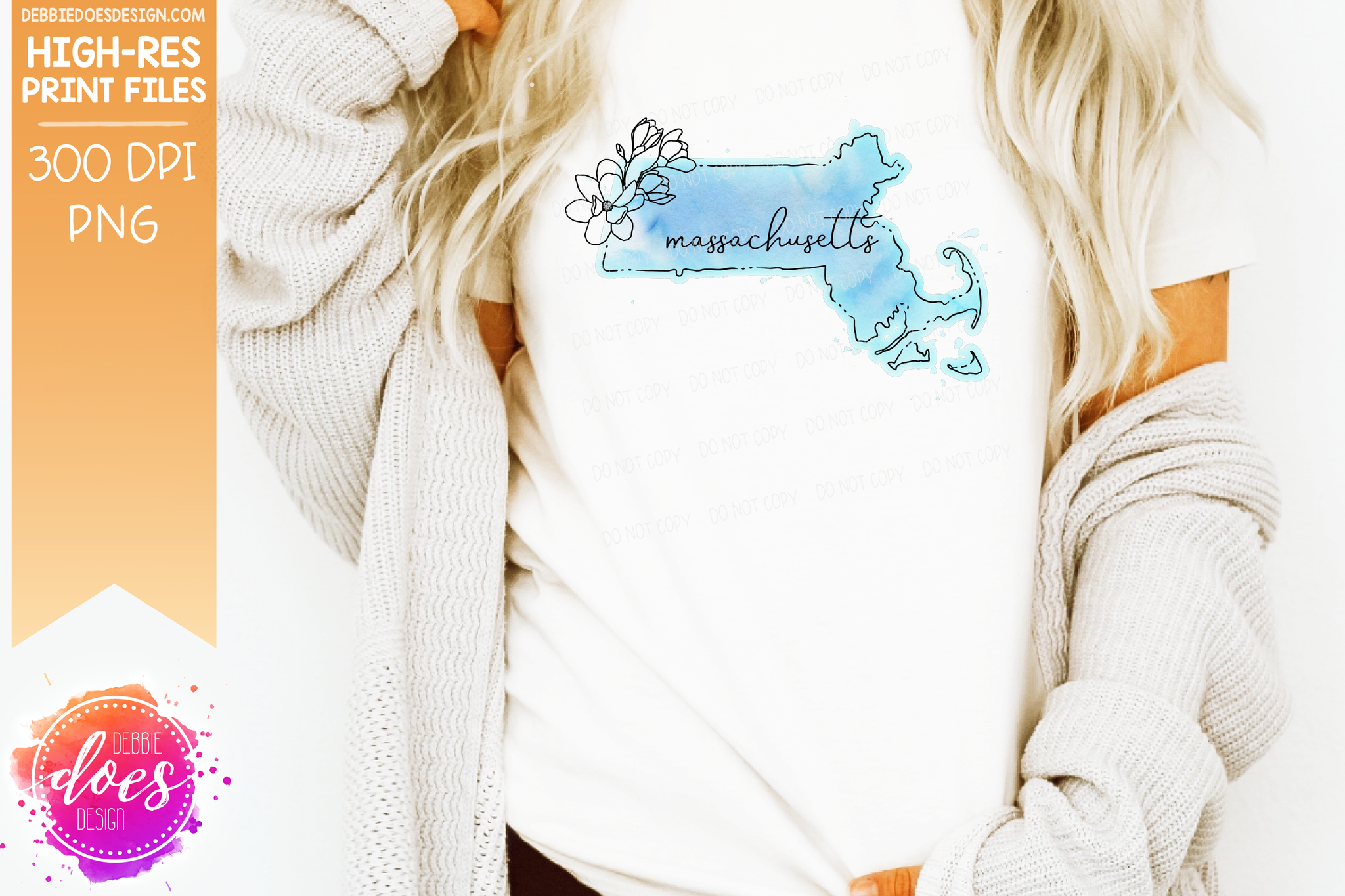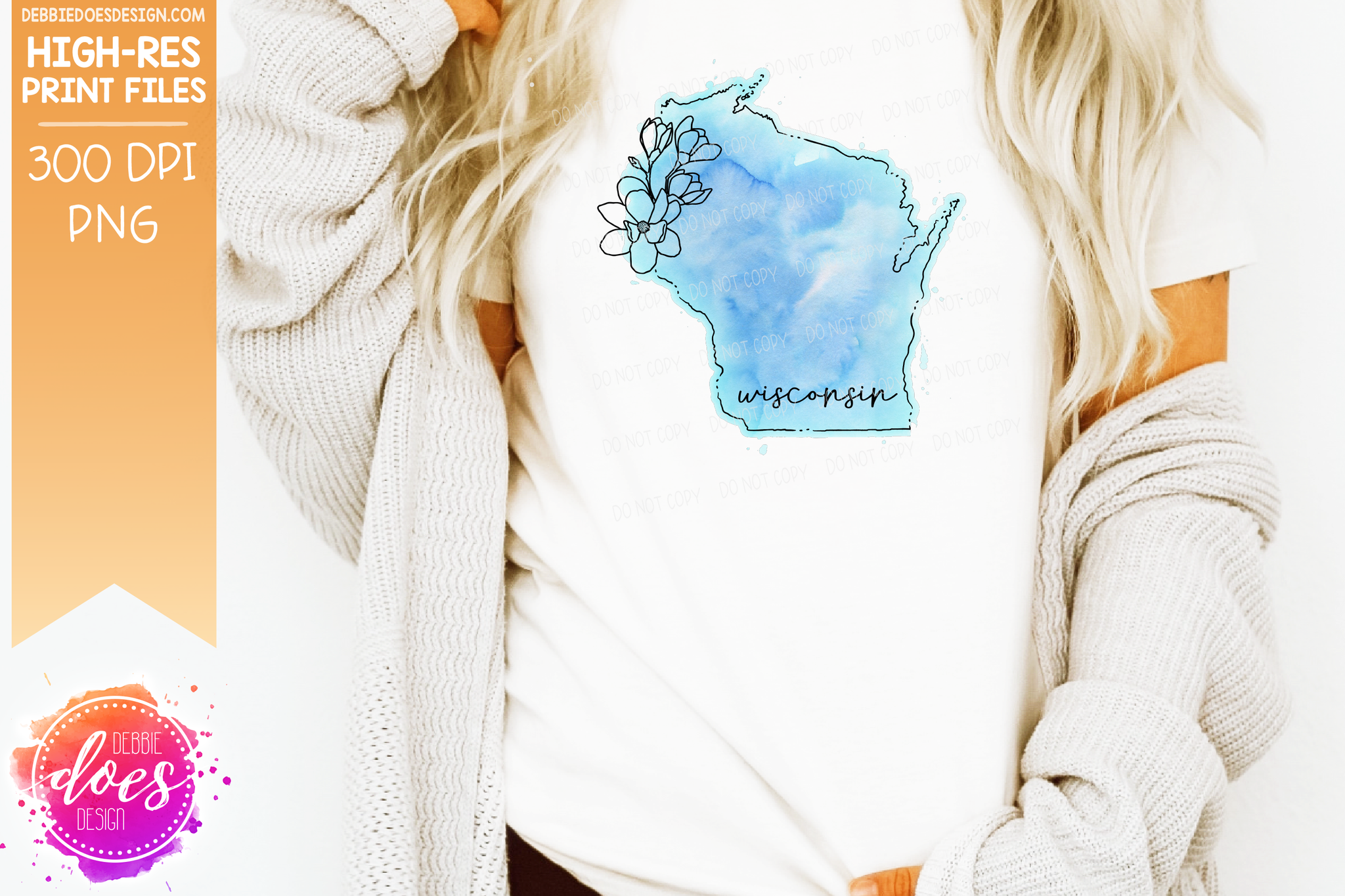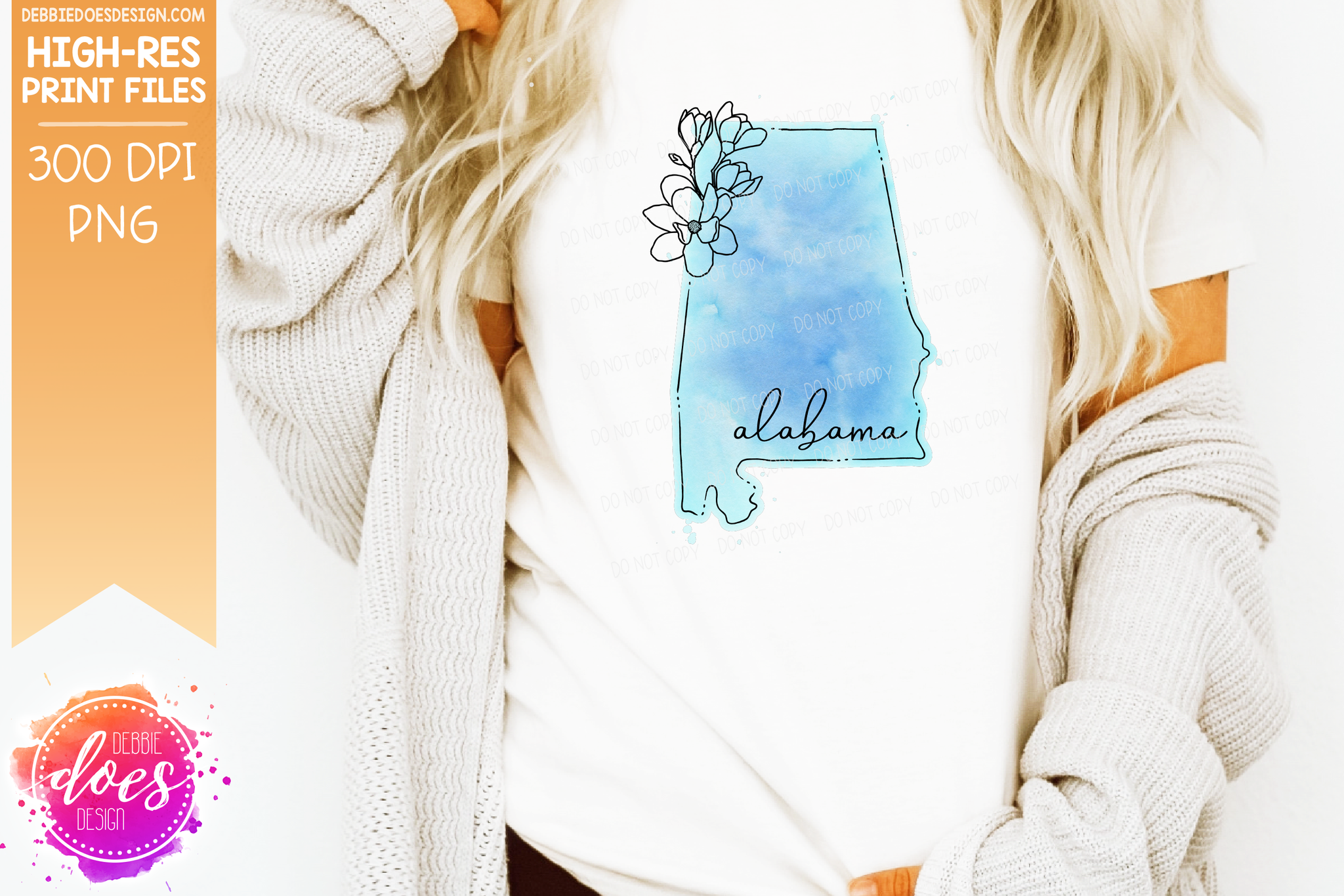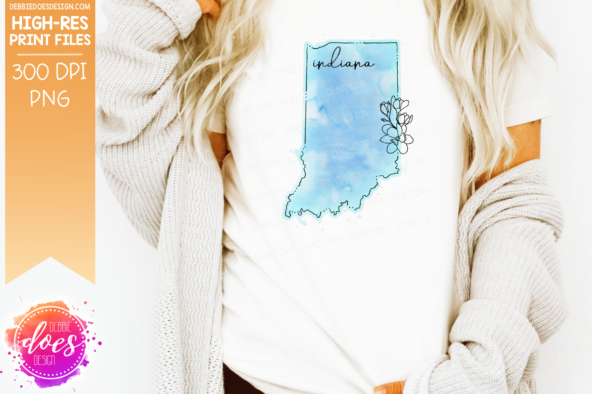 Blue Watercolor Floral Line State - (Individual States: Choose from all 50 US States, District of Columbia, PR, or Guam) - Sublimation/Printable Designs