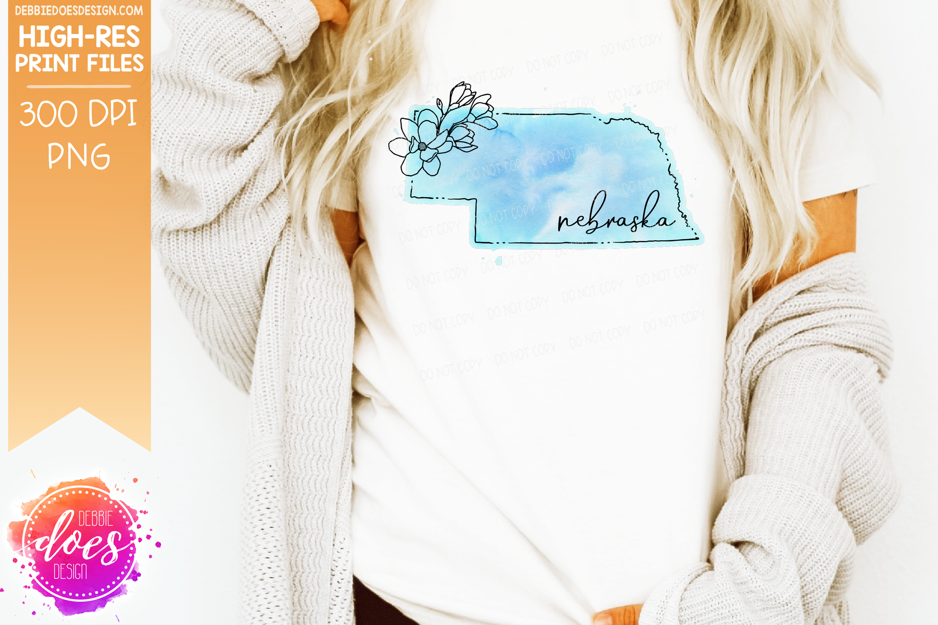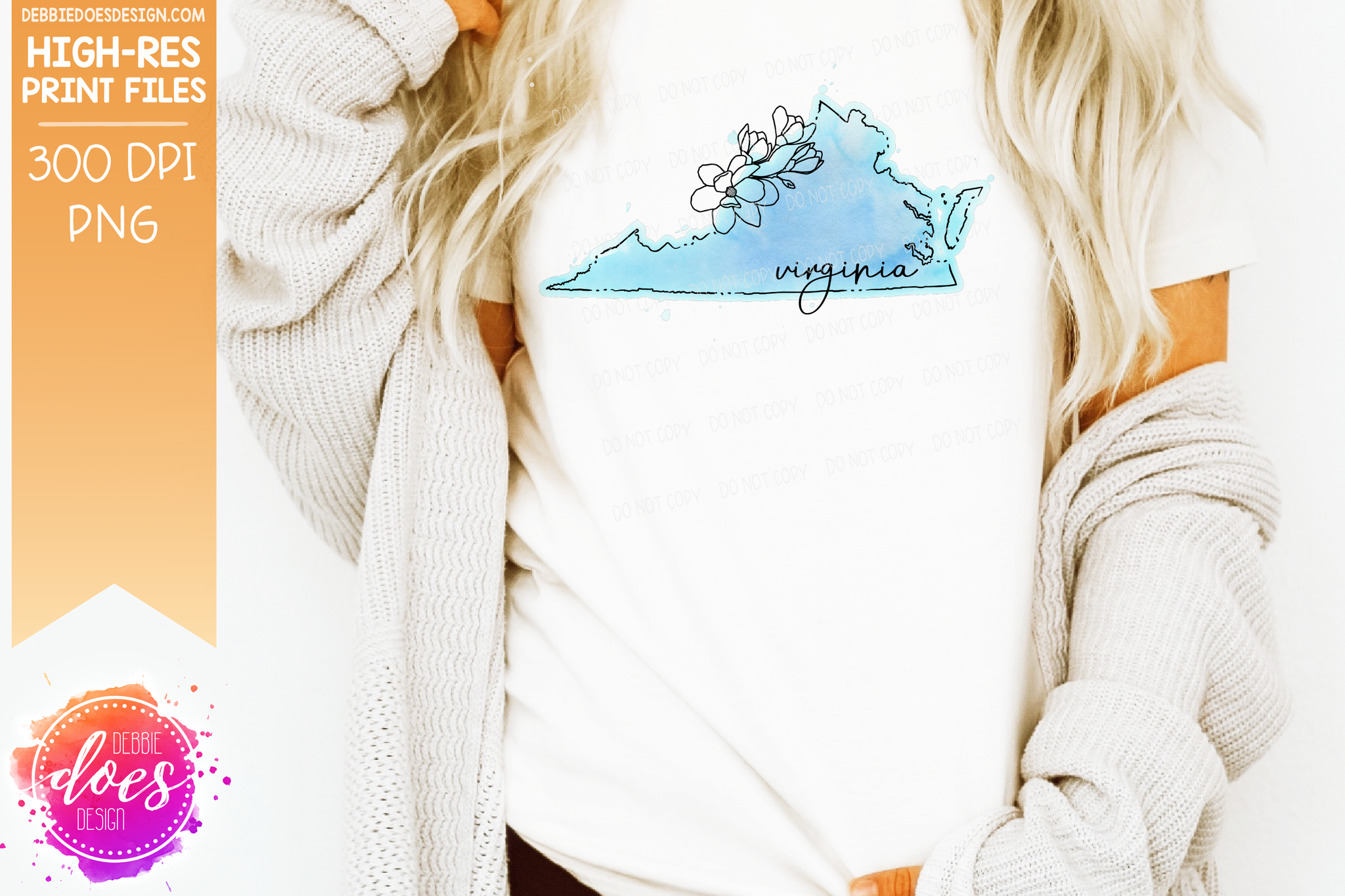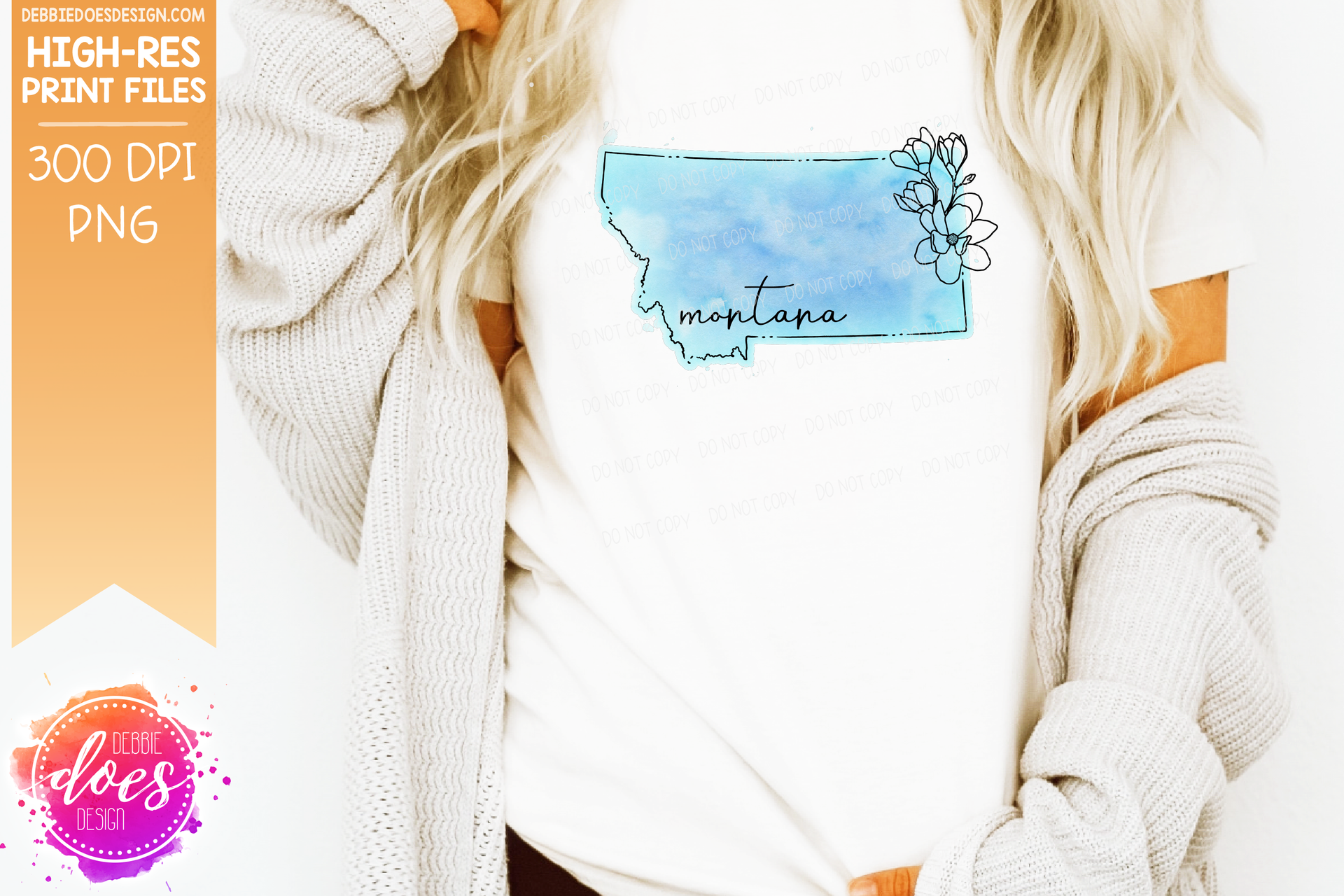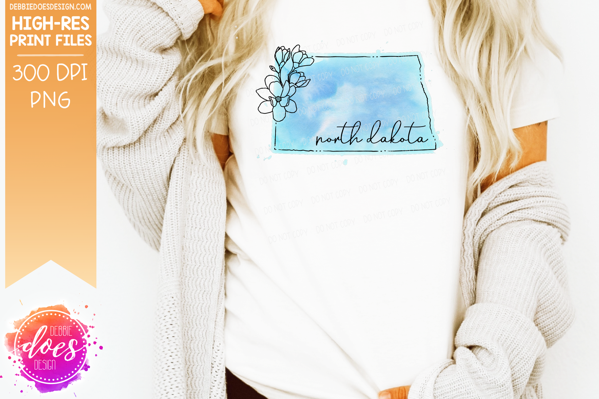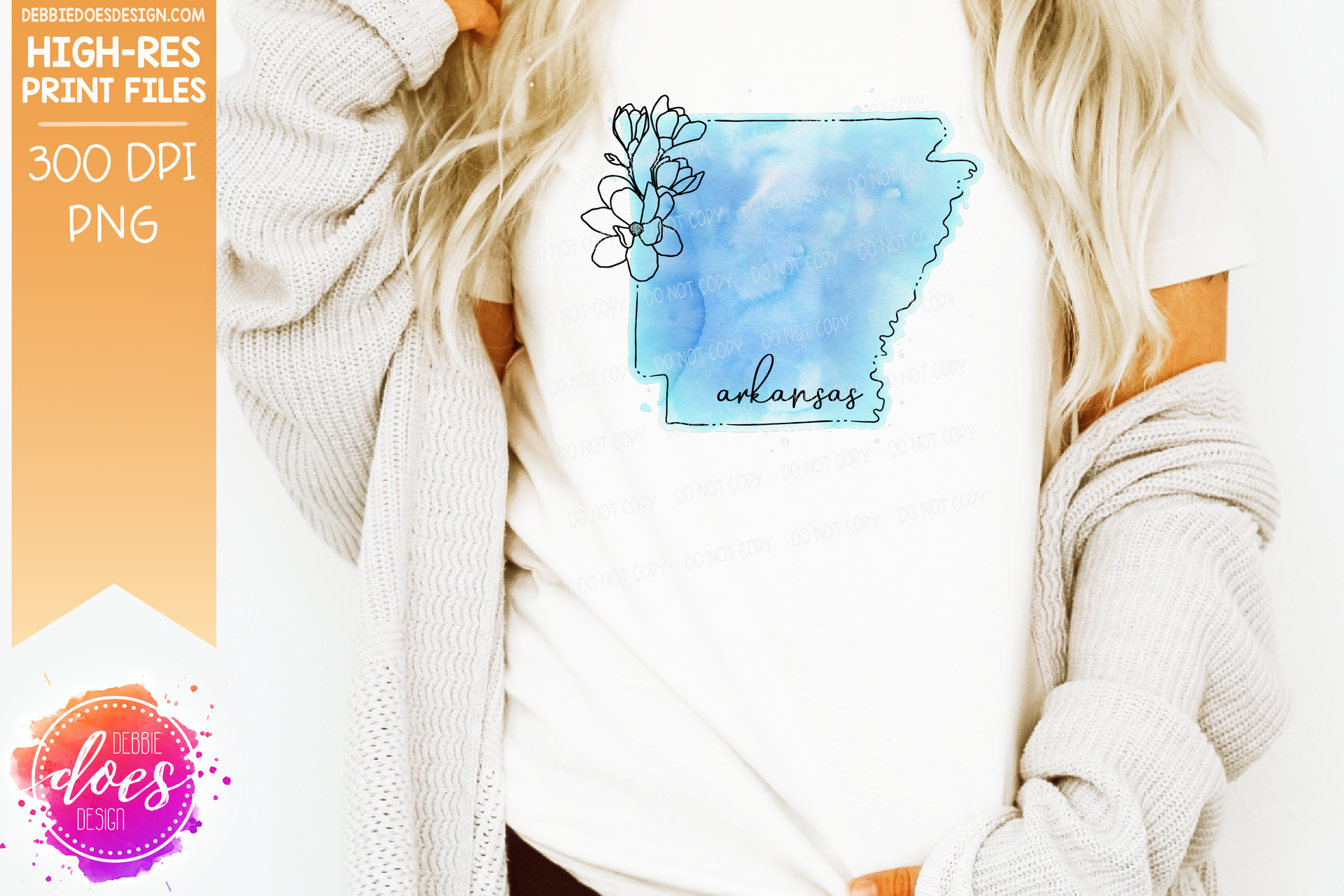 Blue Watercolor Floral Line State - (Individual States: Choose from all 50 US States, District of Columbia, PR, or Guam) - Sublimation/Printable Designs