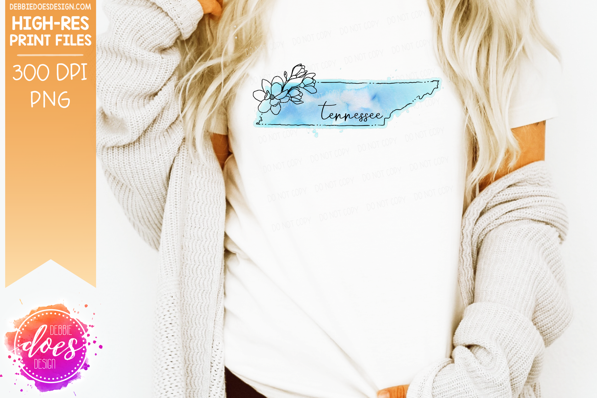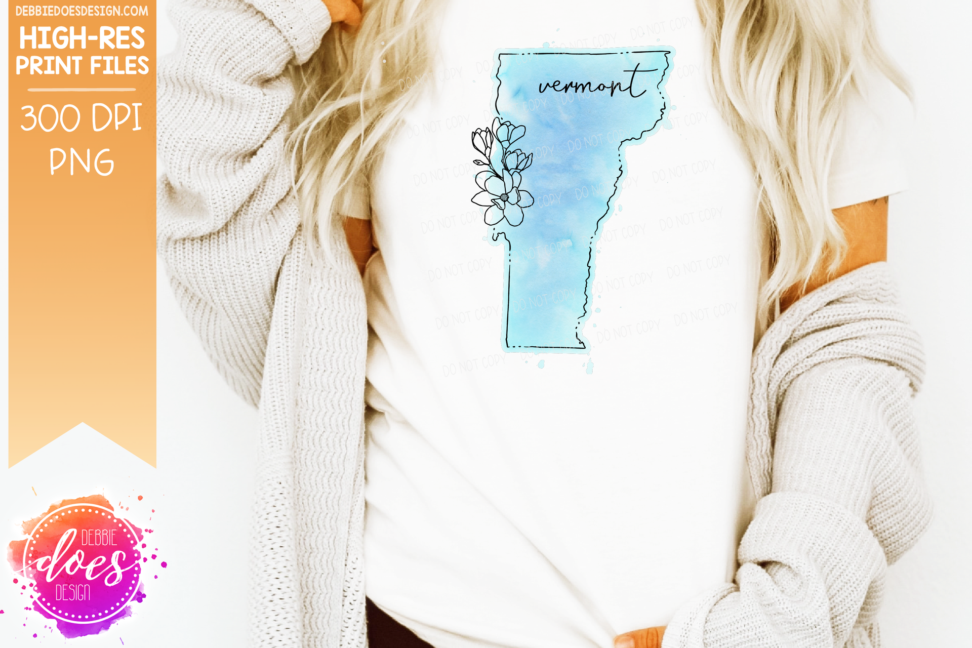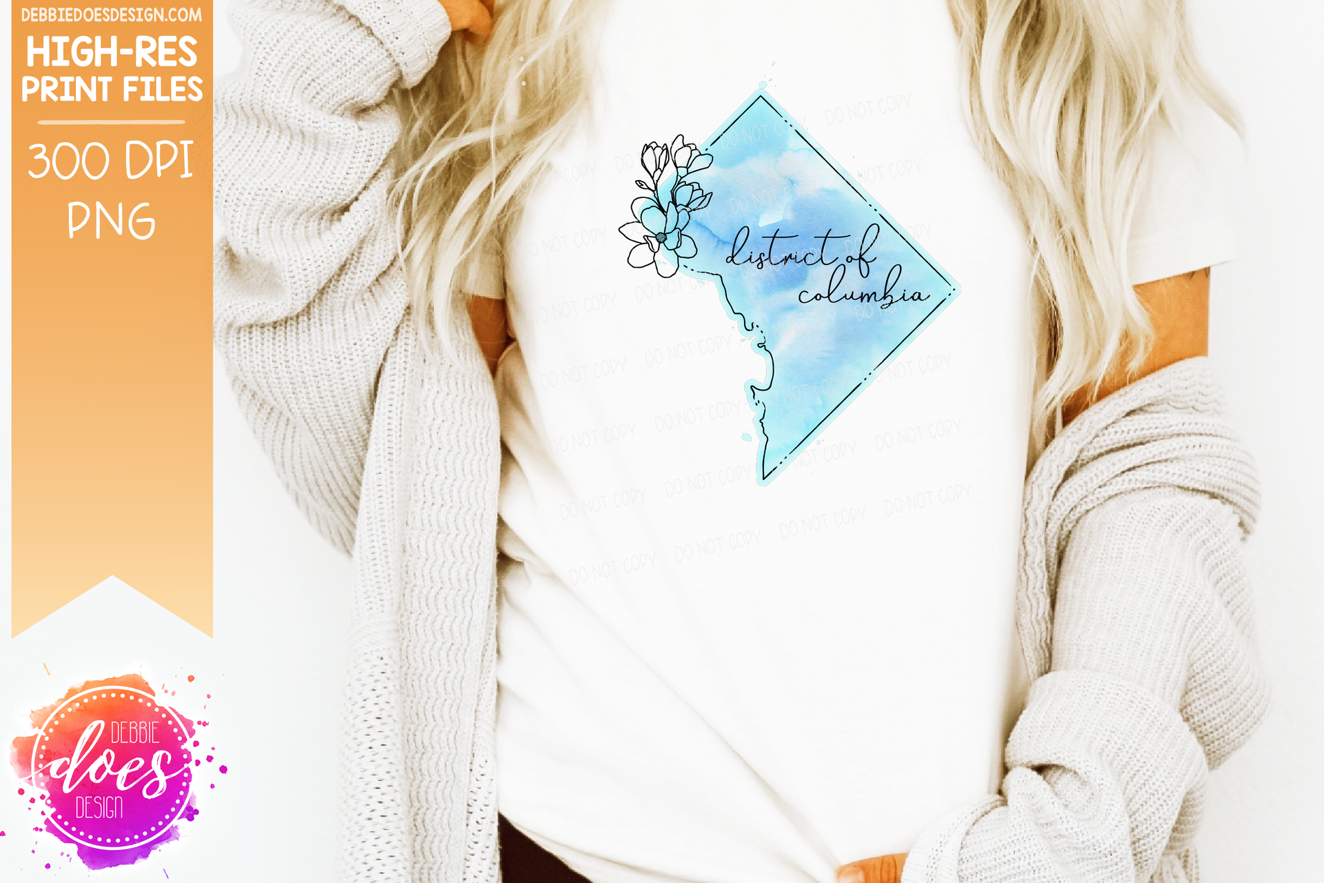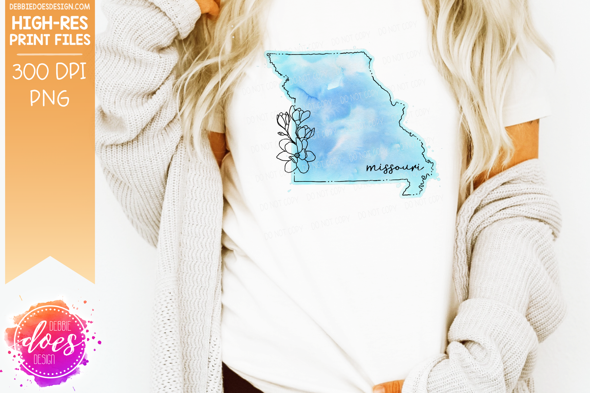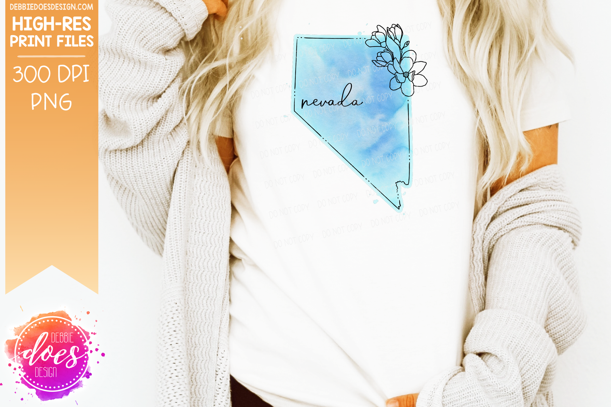 Blue Watercolor Floral Line State - (Individual States: Choose from all 50 US States, District of Columbia, PR, or Guam) - Sublimation/Printable Designs