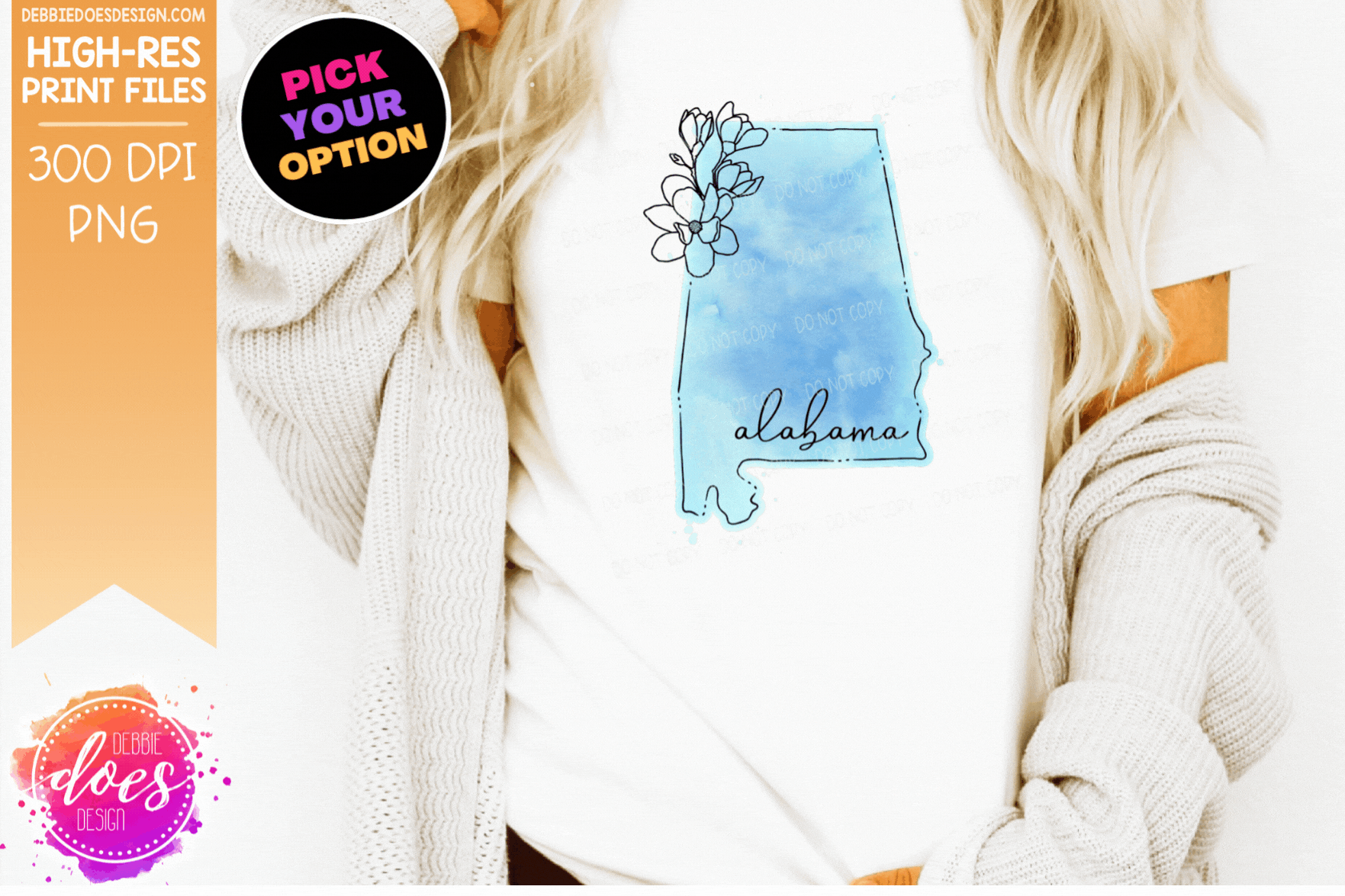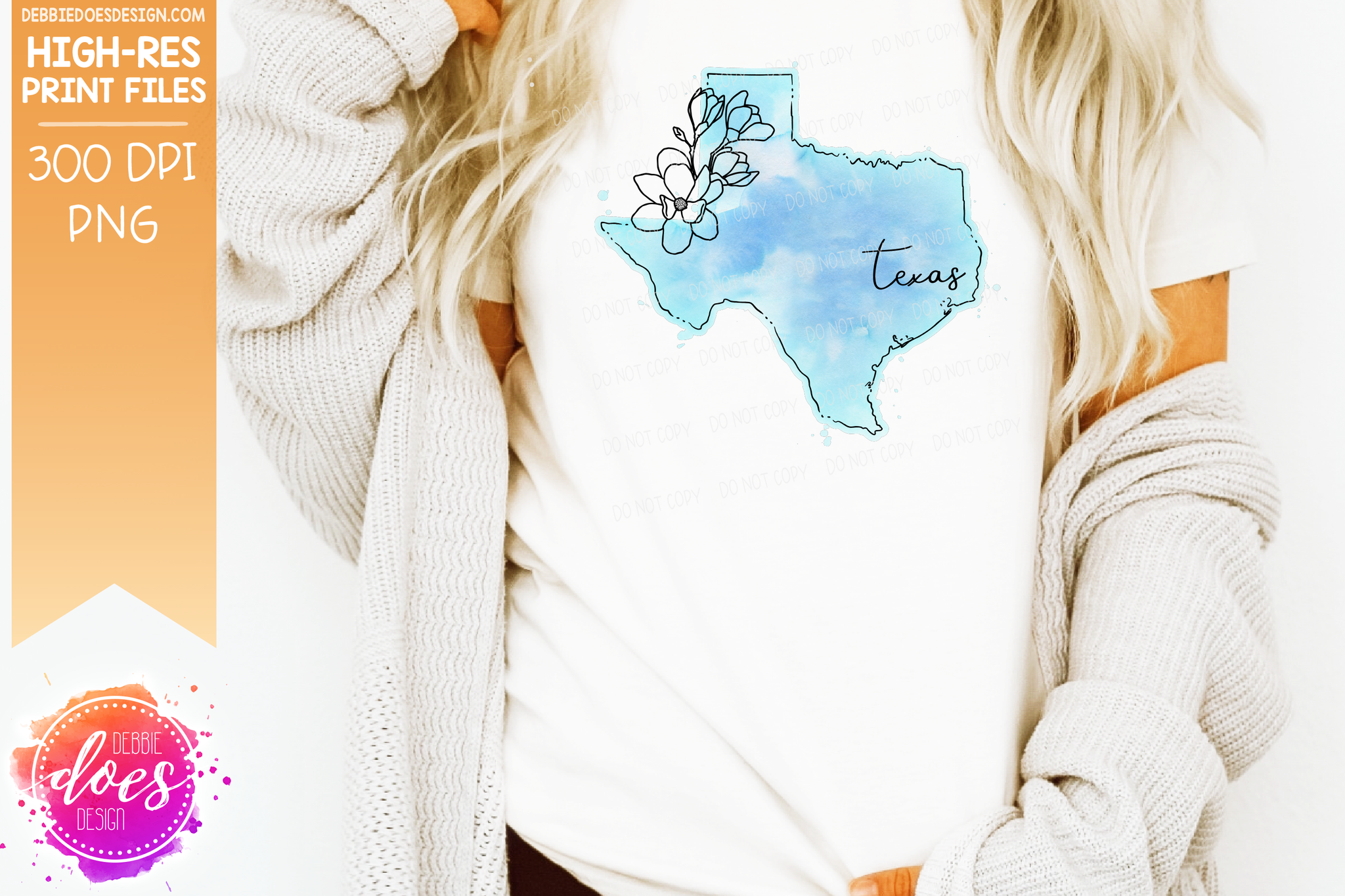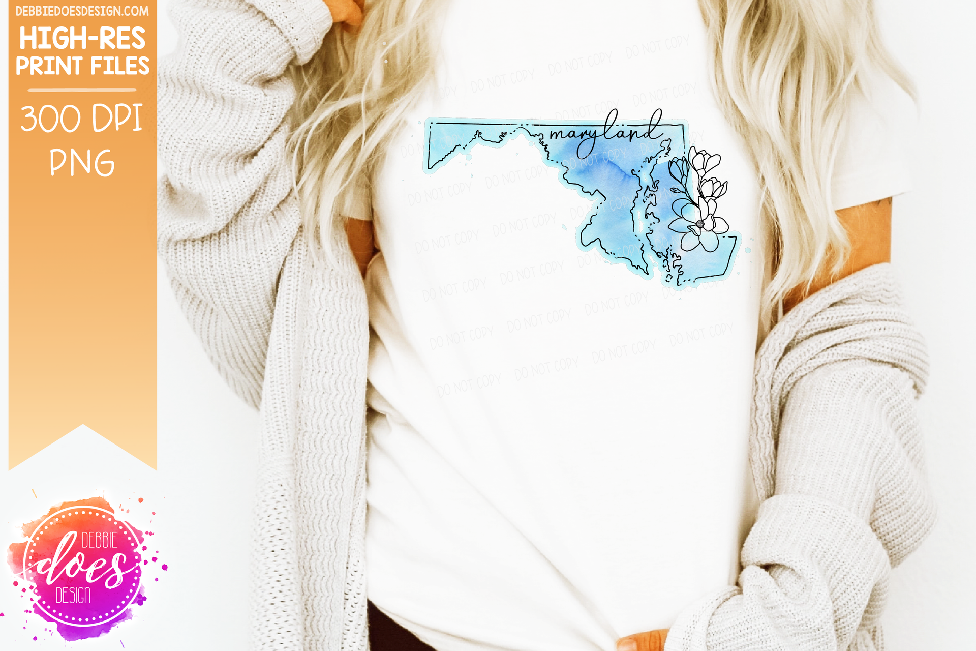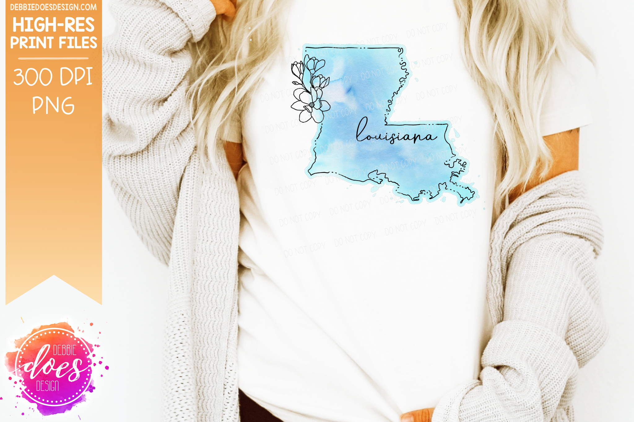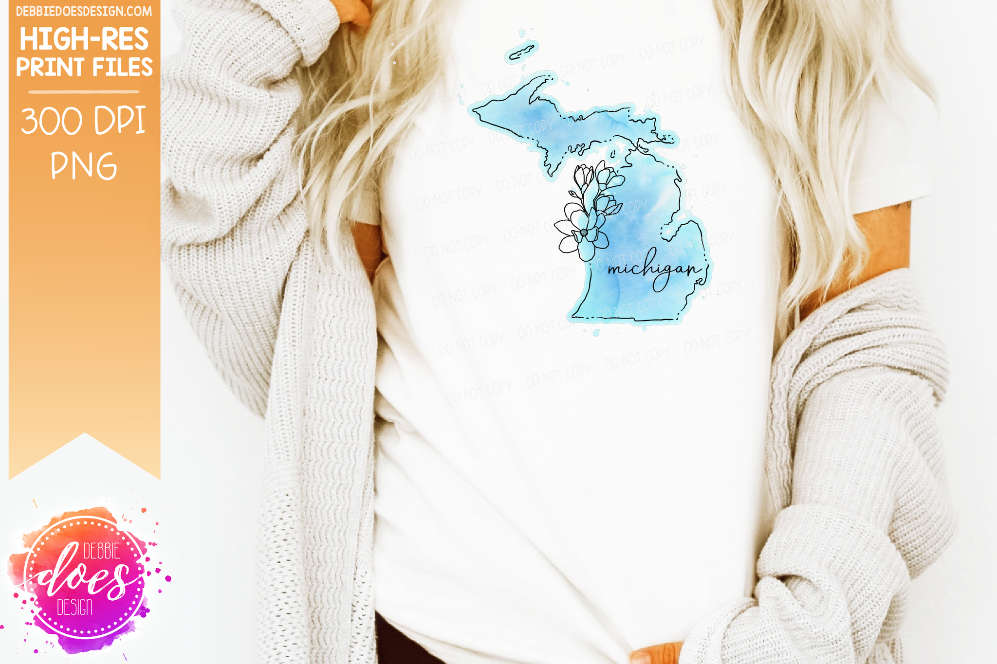 Blue Watercolor Floral Line State - (Individual States: Choose from all 50 US States, District of Columbia, PR, or Guam) - Sublimation/Printable Designs