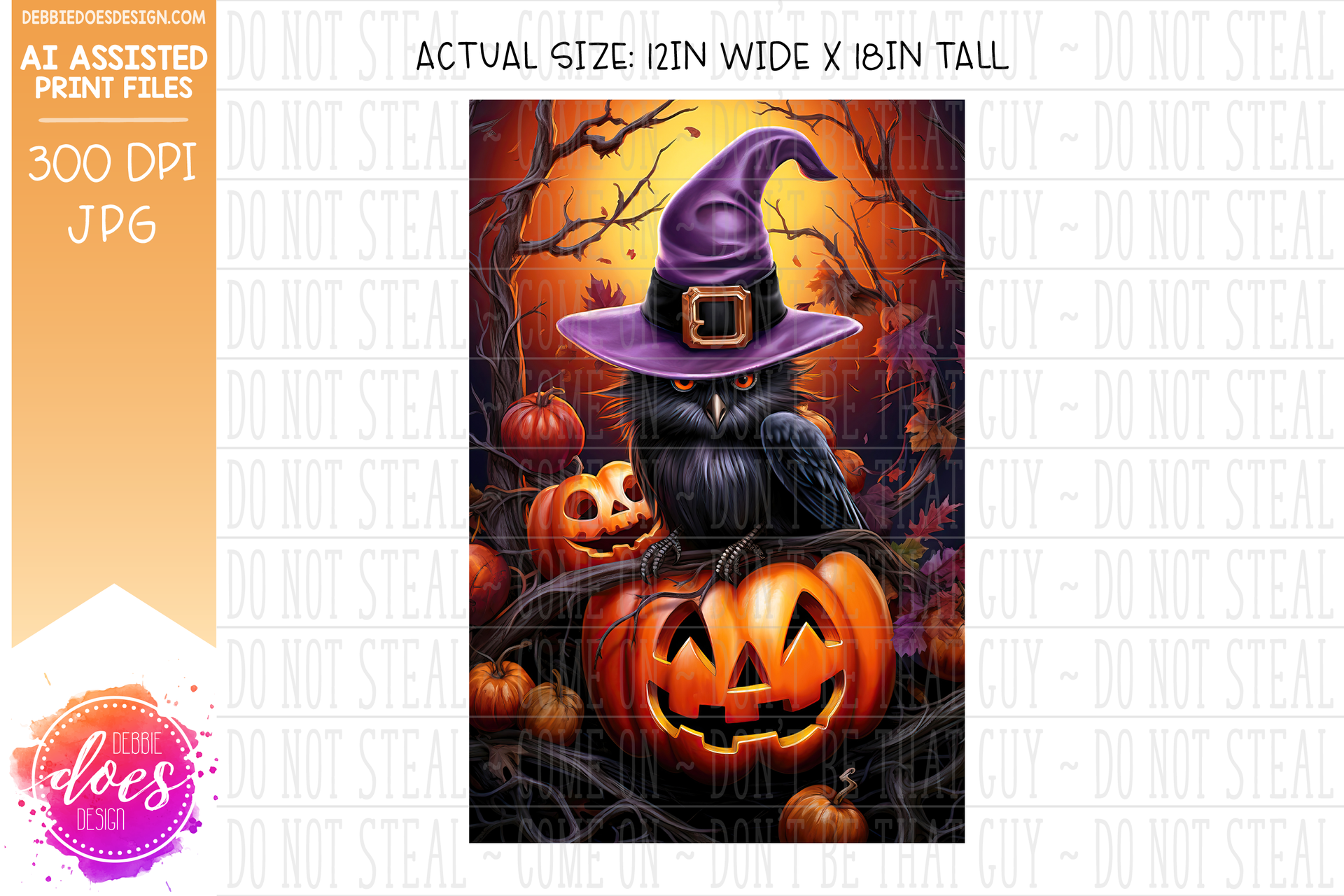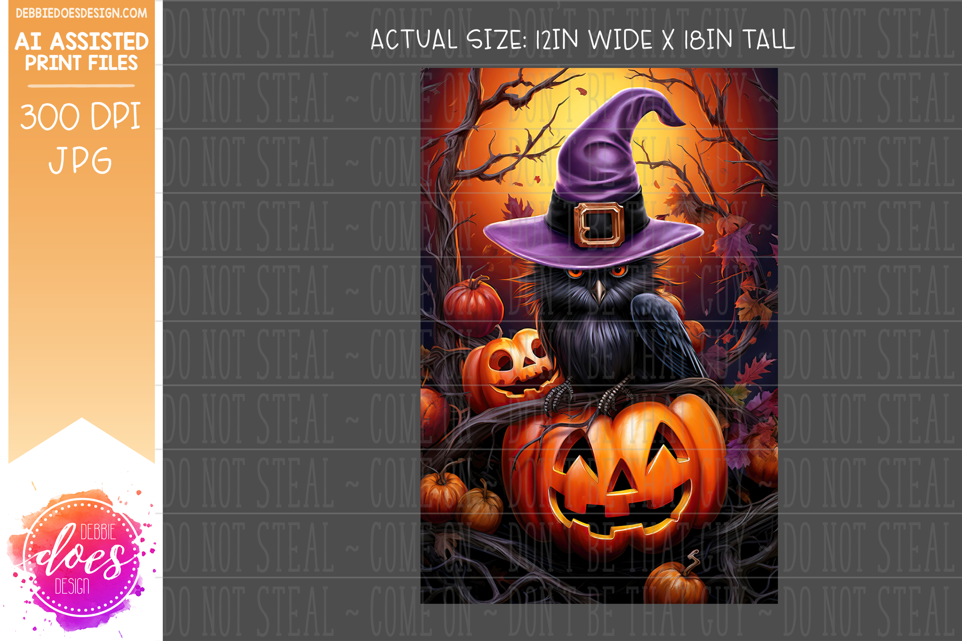 Crow with Witches Hat On Jack O Lantern - Garden Flag - Printable/Sublimation Design