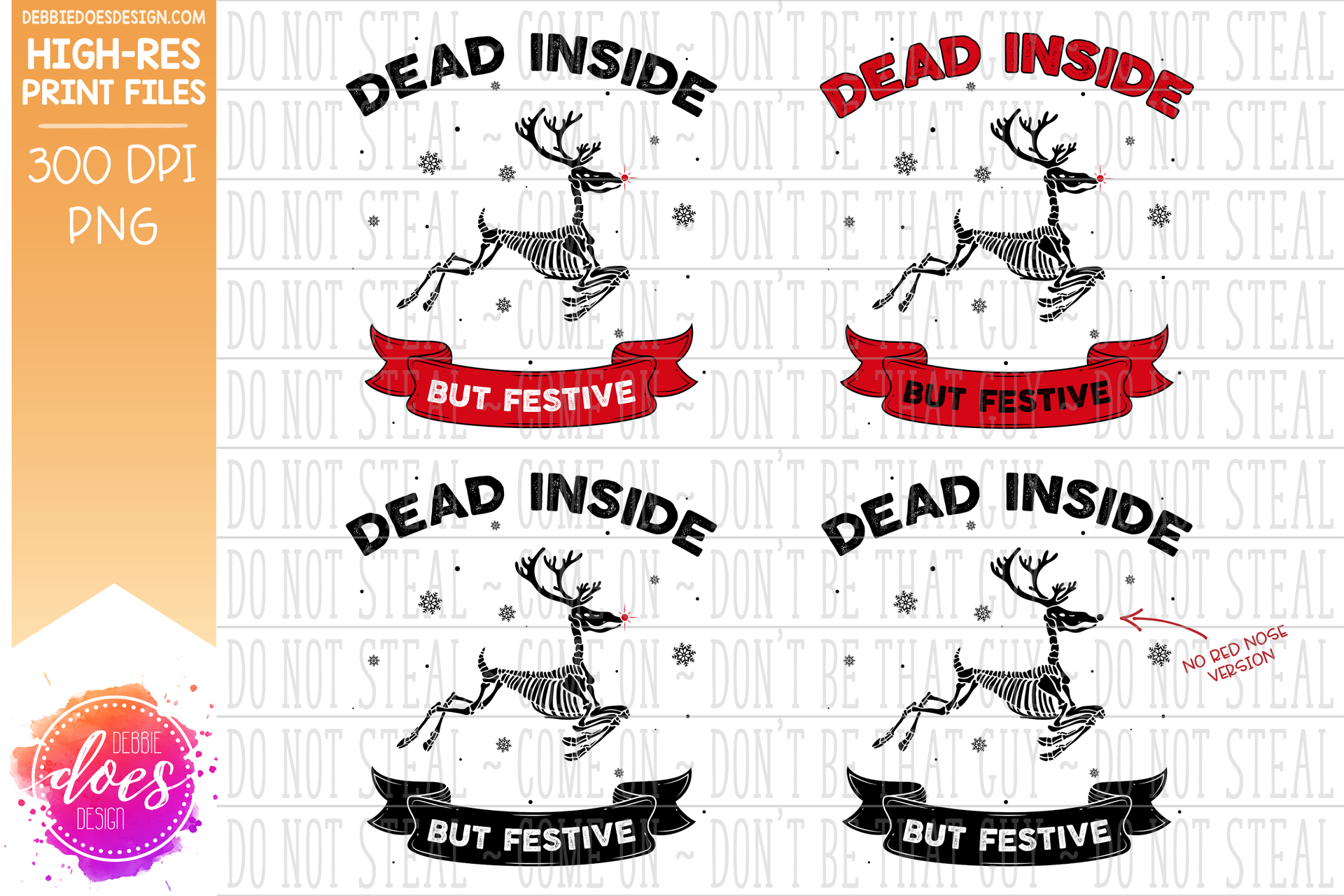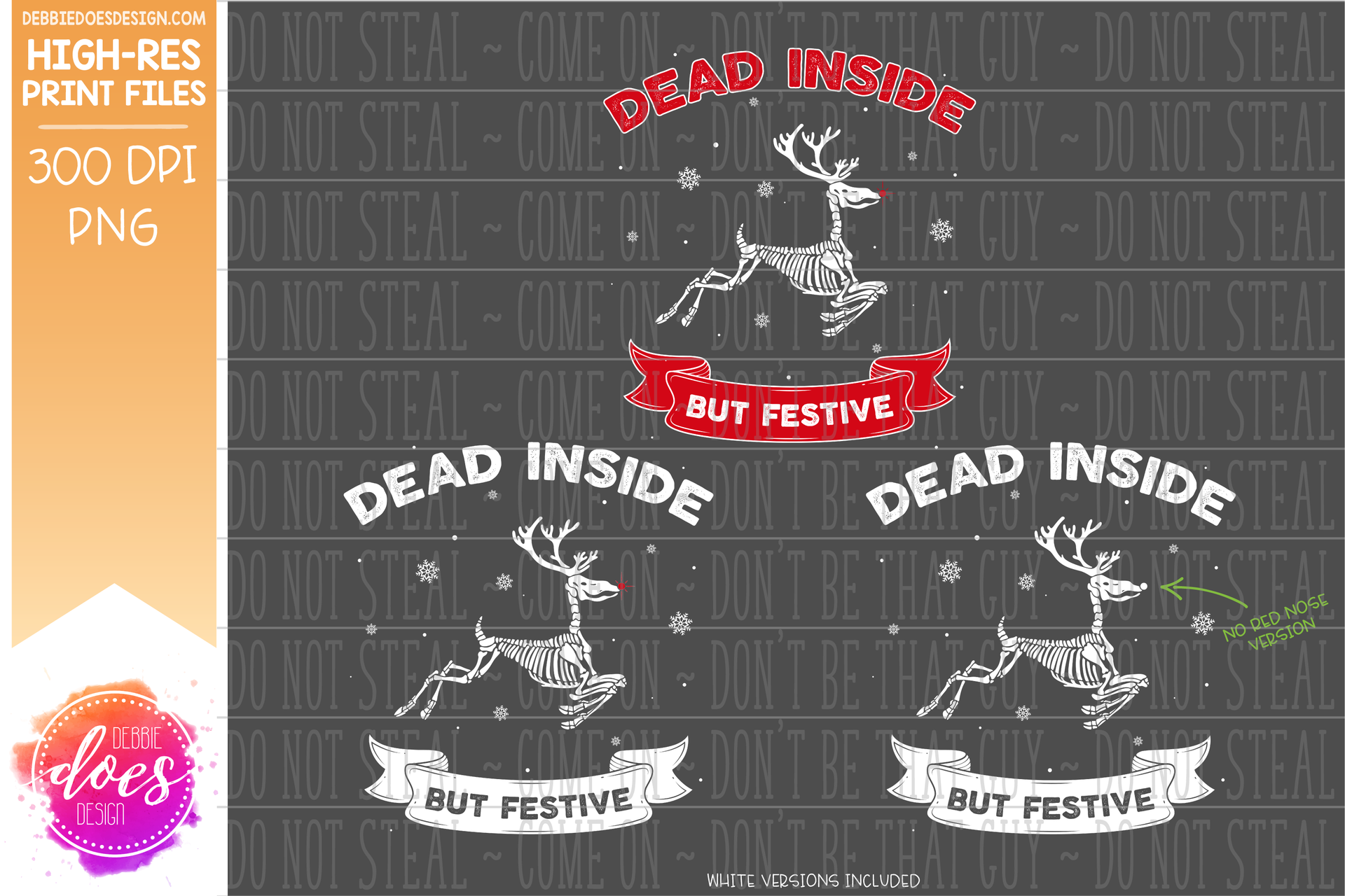 Dead Inside But Festive - Reindeer Skeleton - 7 Versions! - Sublimation/Printable Design