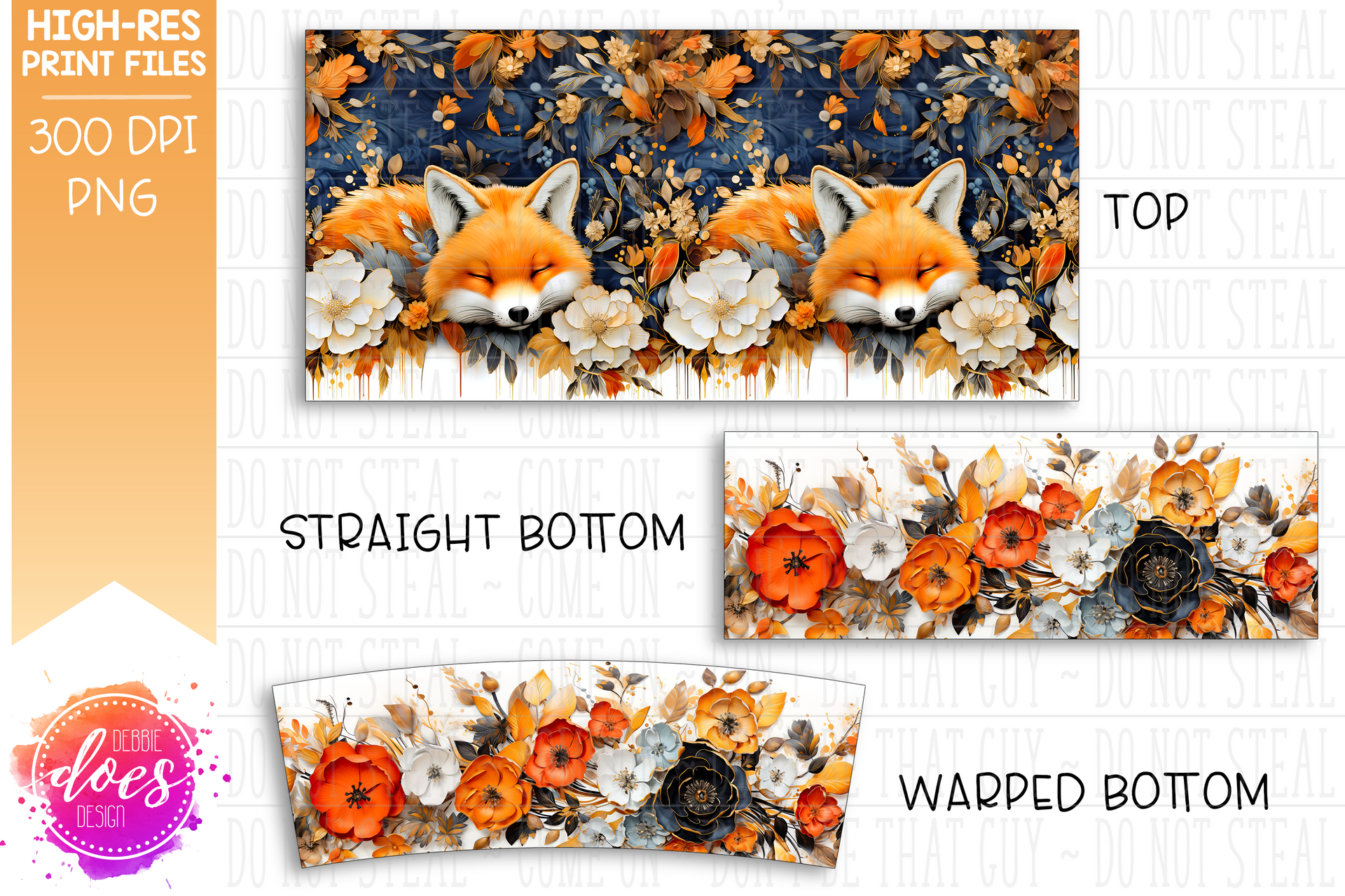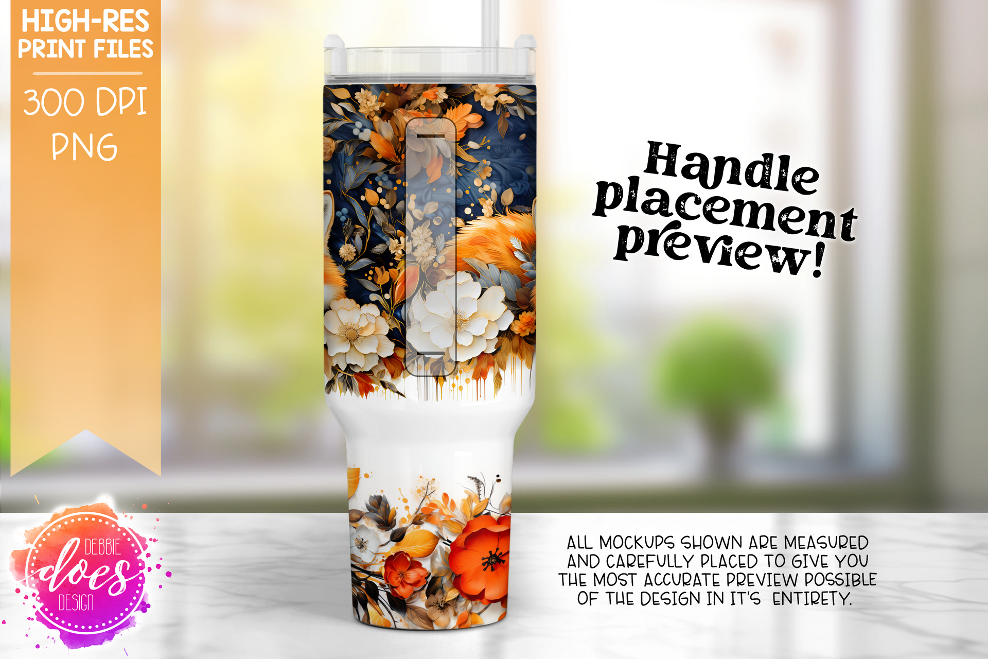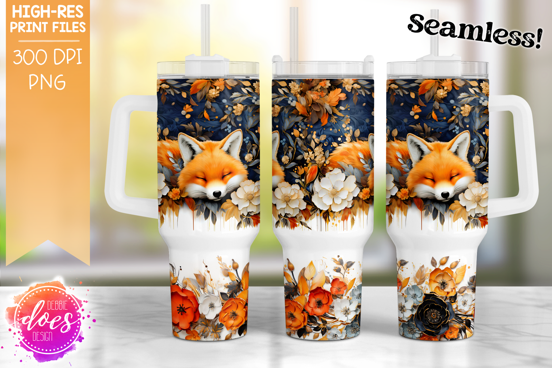 Drippy Fox in Flowers - 40oz Tumbler - Seamless - Printable/Sublimation Design