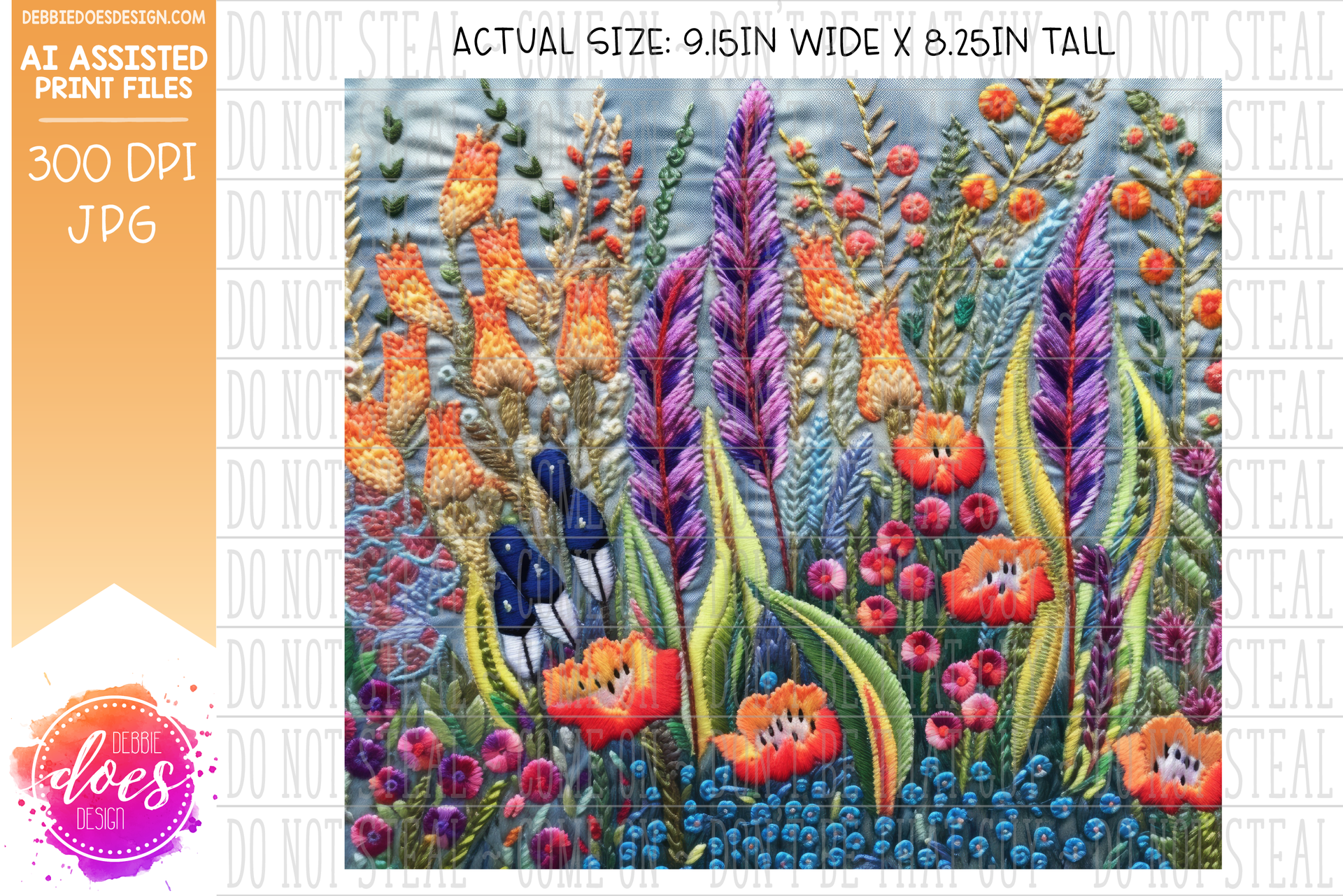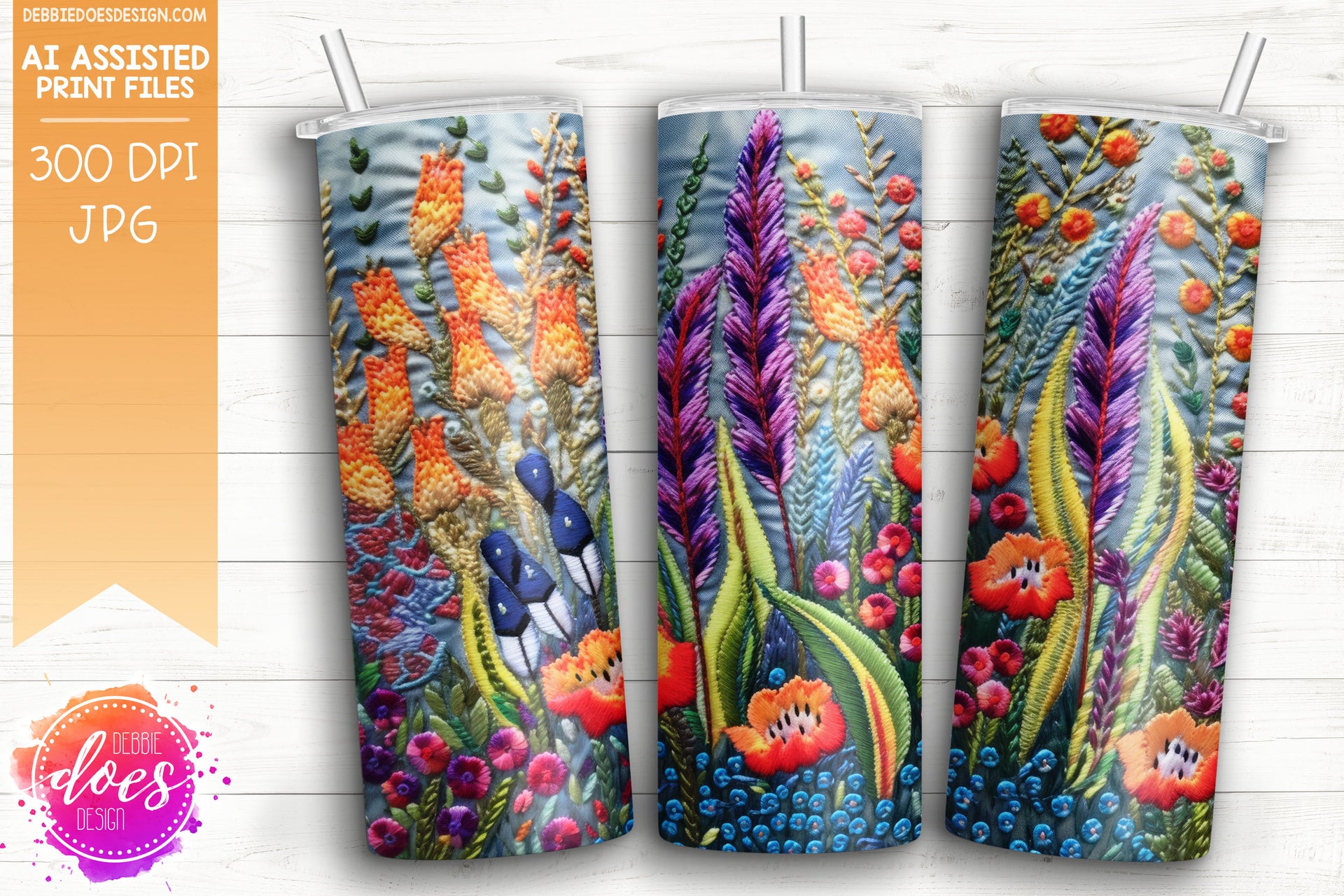Embroidery Pattern Tumbler - Field of Wildflowers - Printable/Sublimation Design