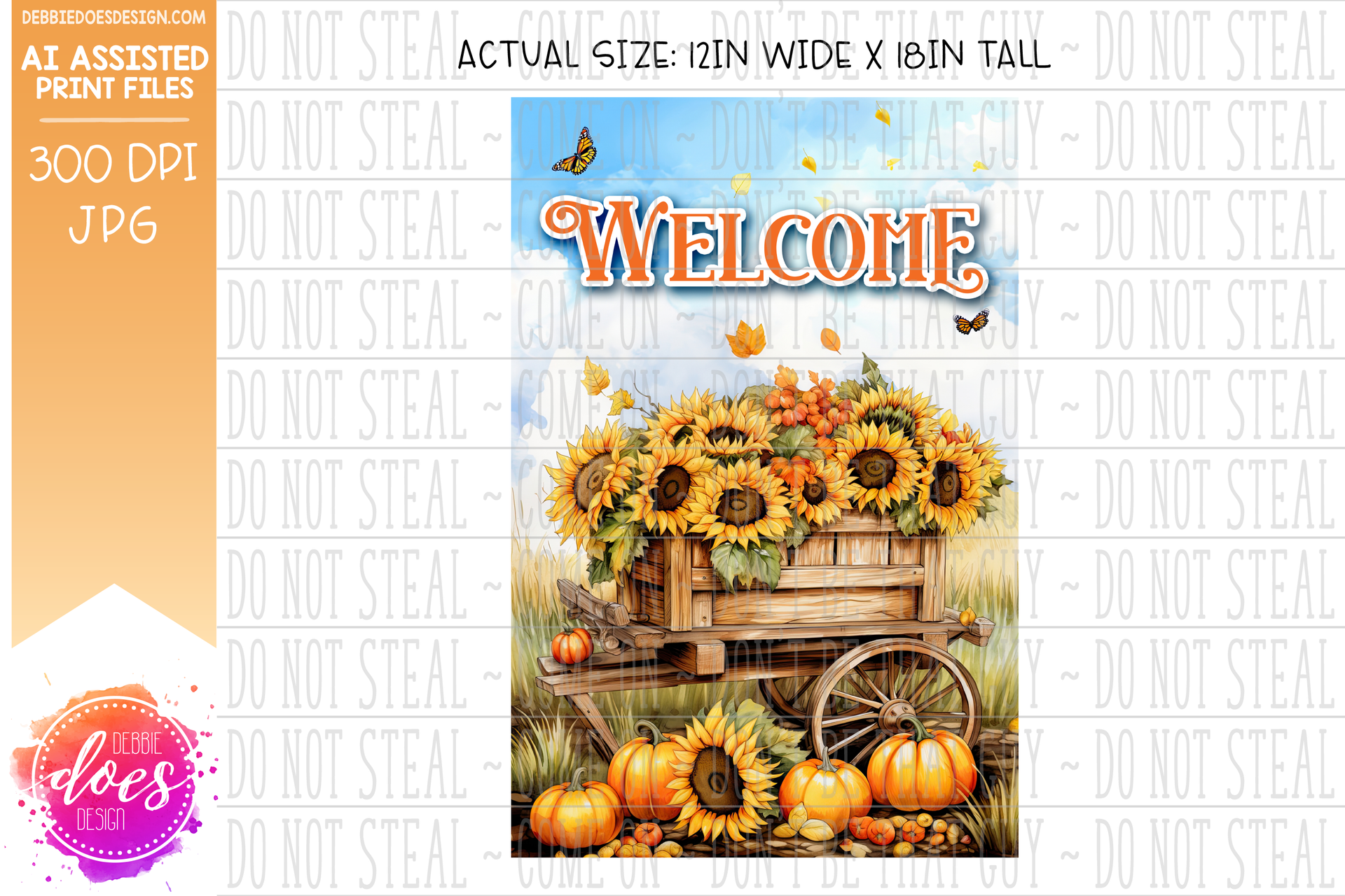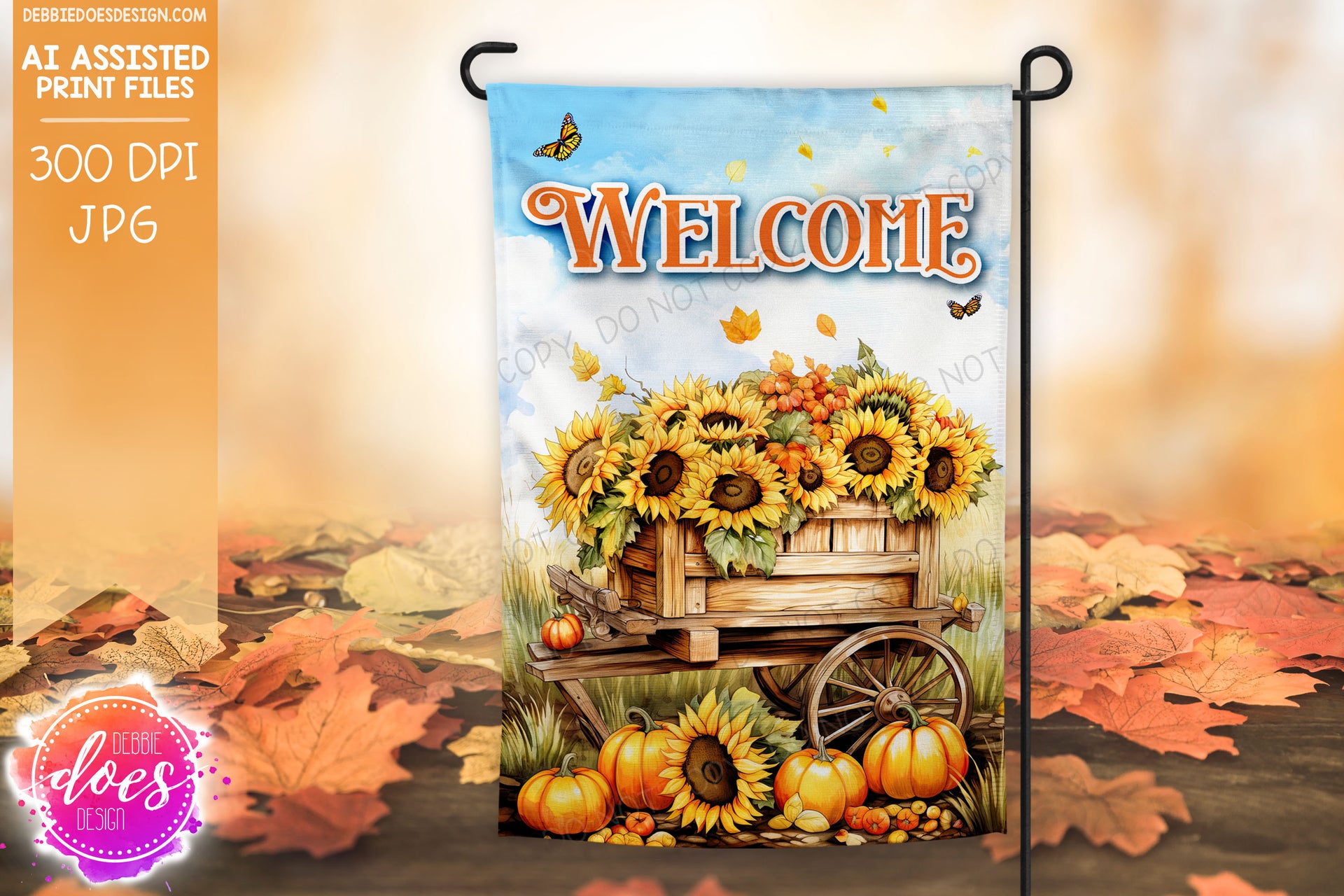 Fall Wagon of Sunflowers - Welcome - Garden Flag - Printable/Sublimation Design