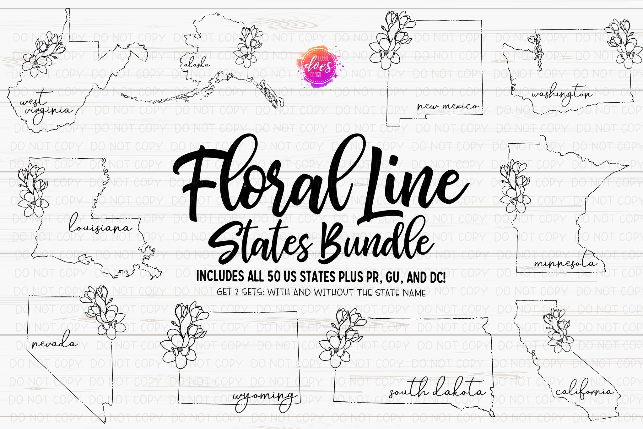 Floral Line States Bundle - All 50 States, plus PR, GU & DC! - Sublimation/Printable Designs