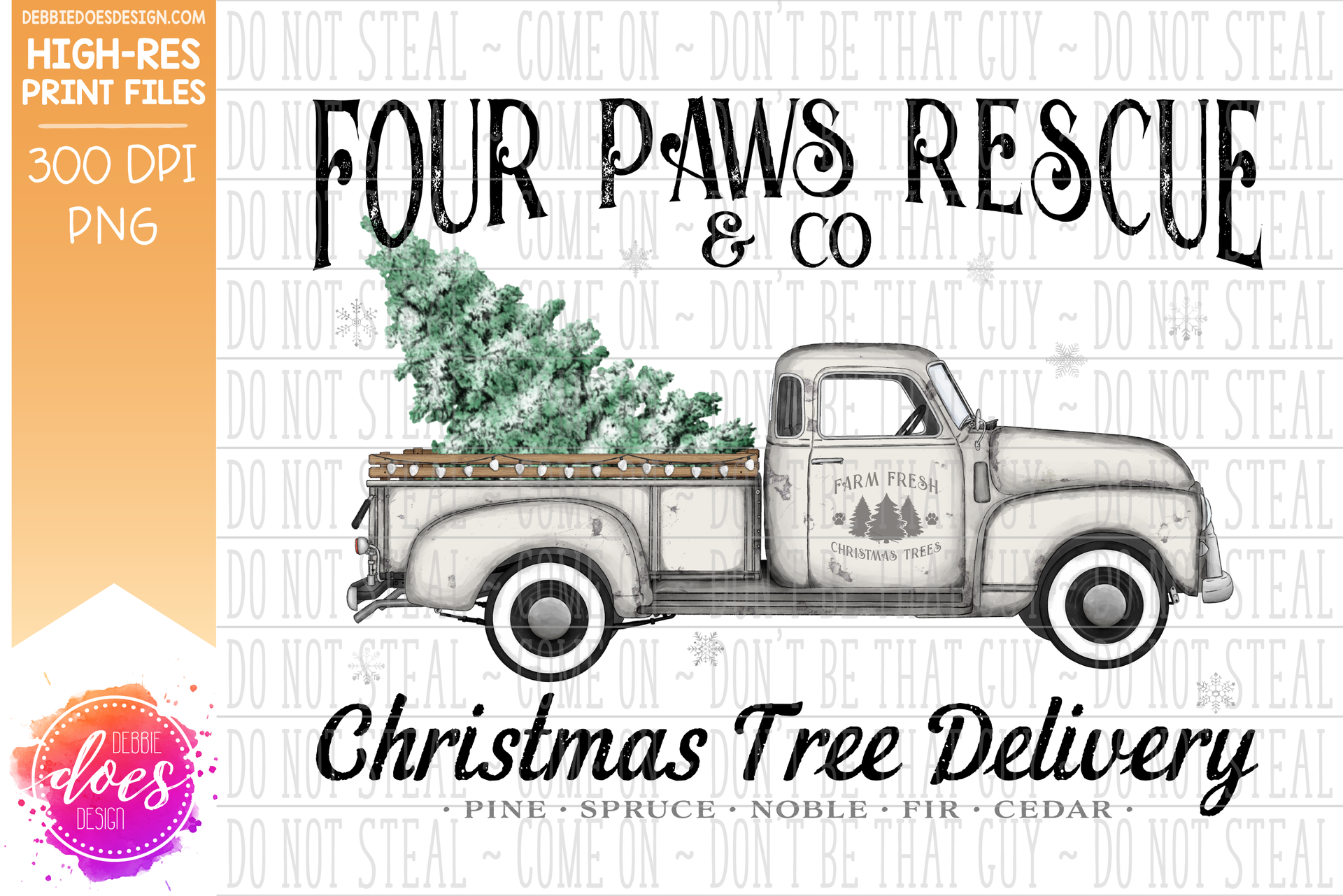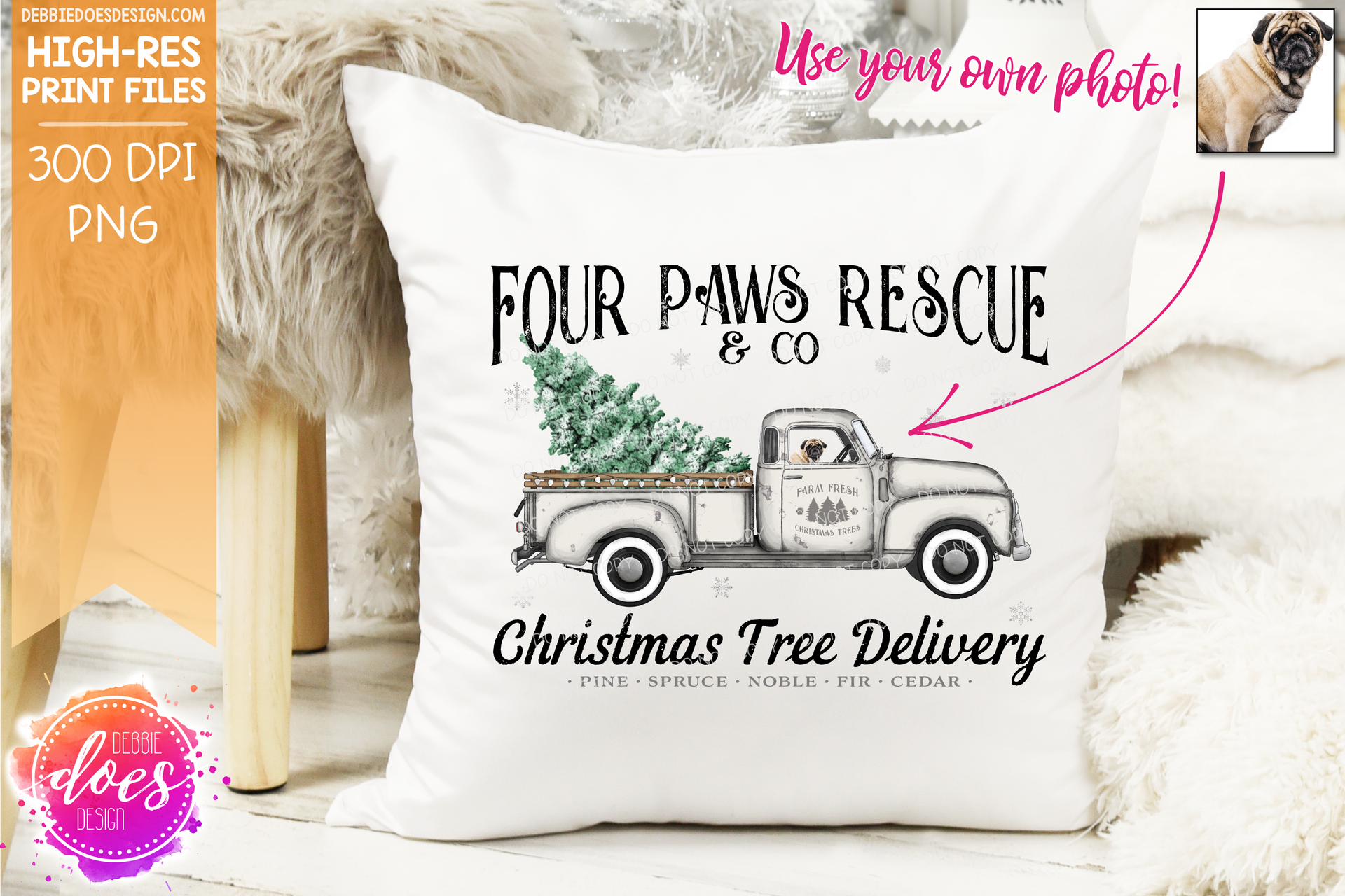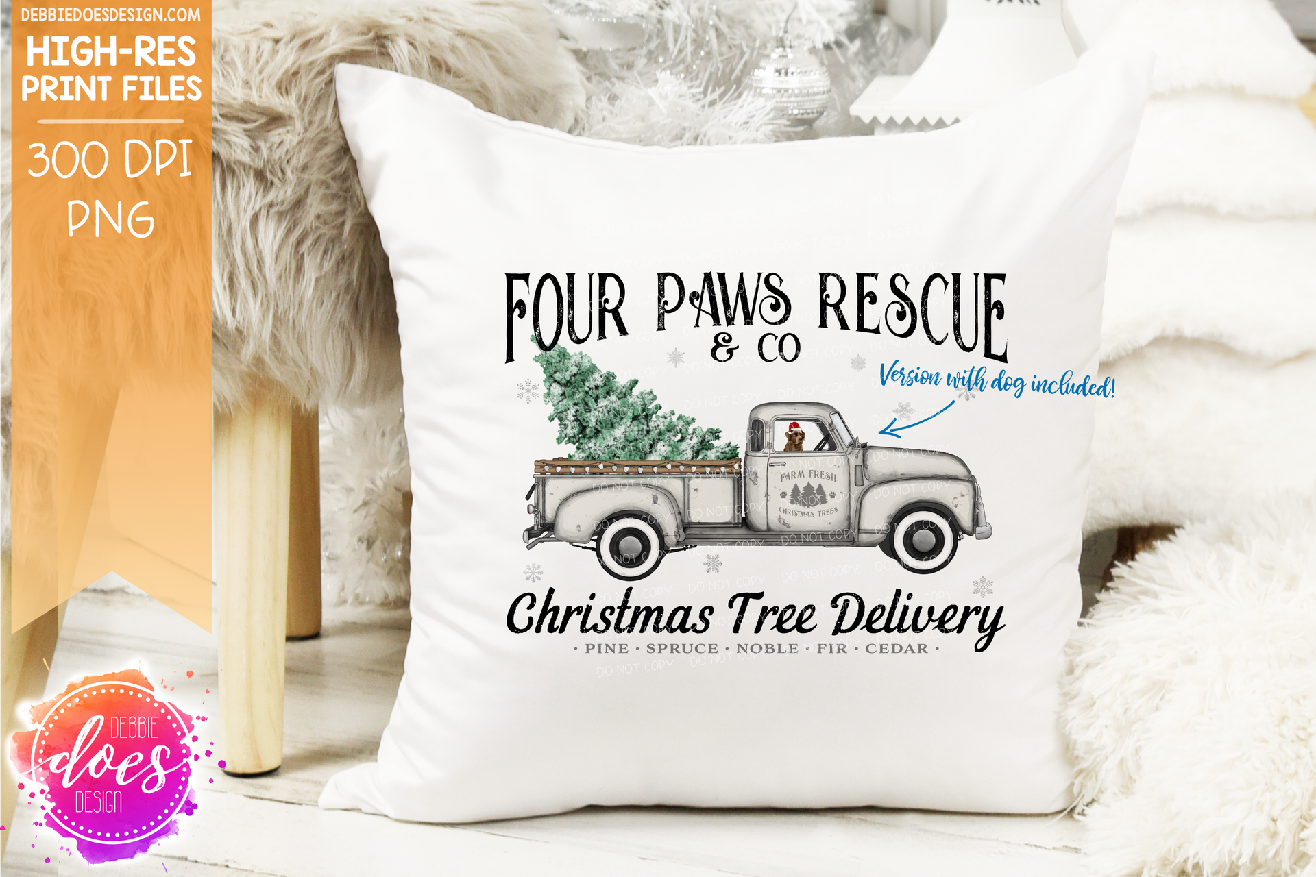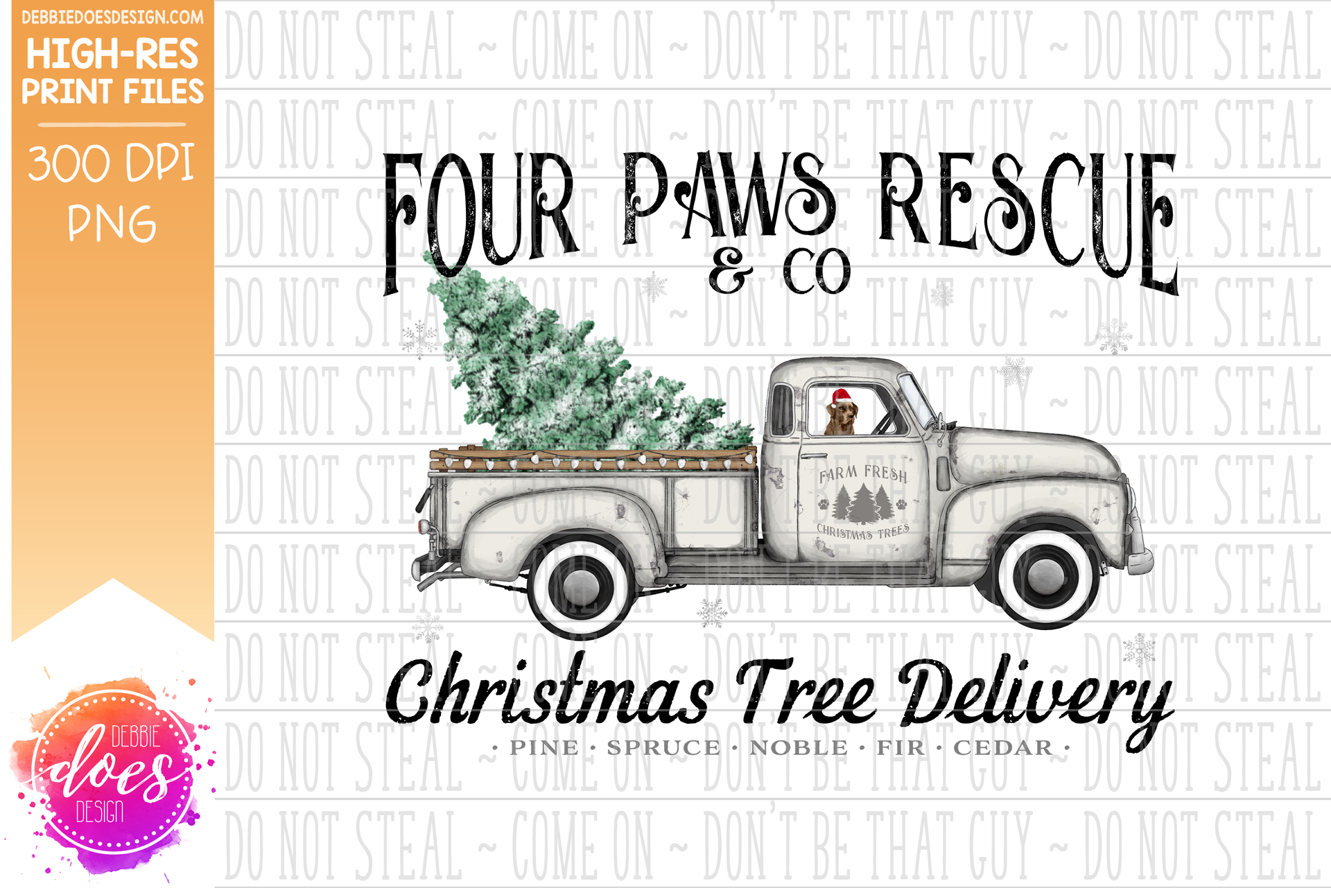 Four Paws Rescue - Dog Farmhouse Christmas Truck - Sublimation/Printable Design