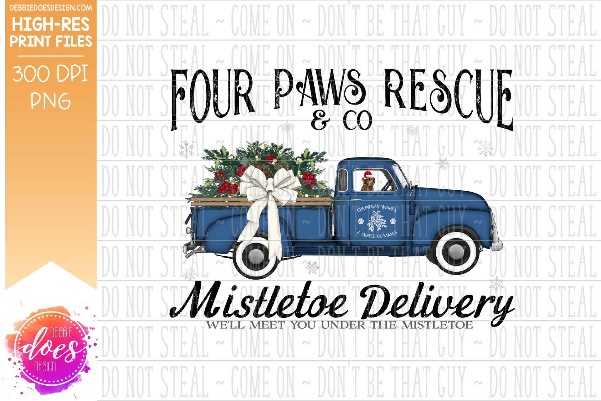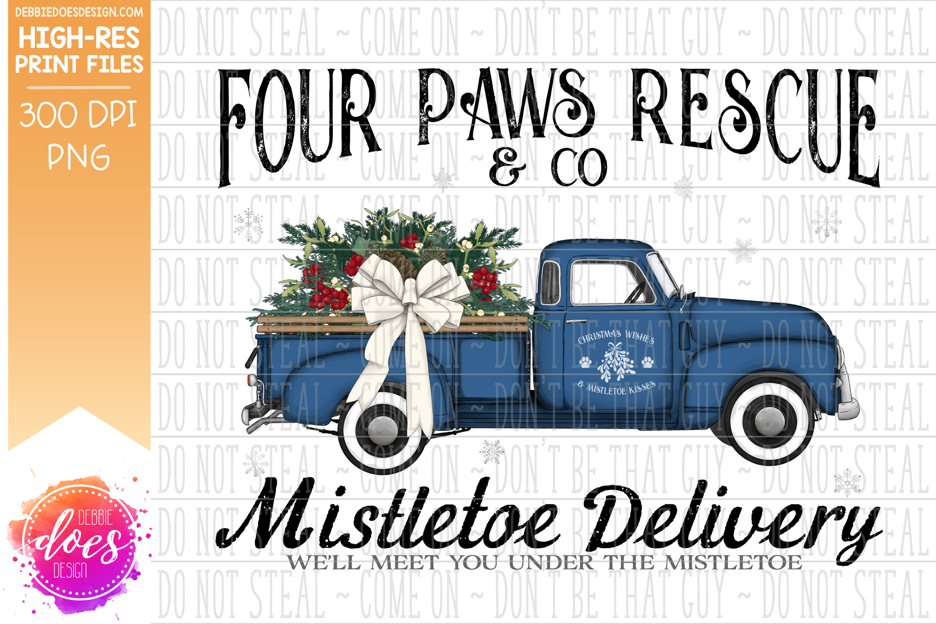 Four Paws Rescue - Dog Mistletoe Delivery Truck - Sublimation/Printable Design