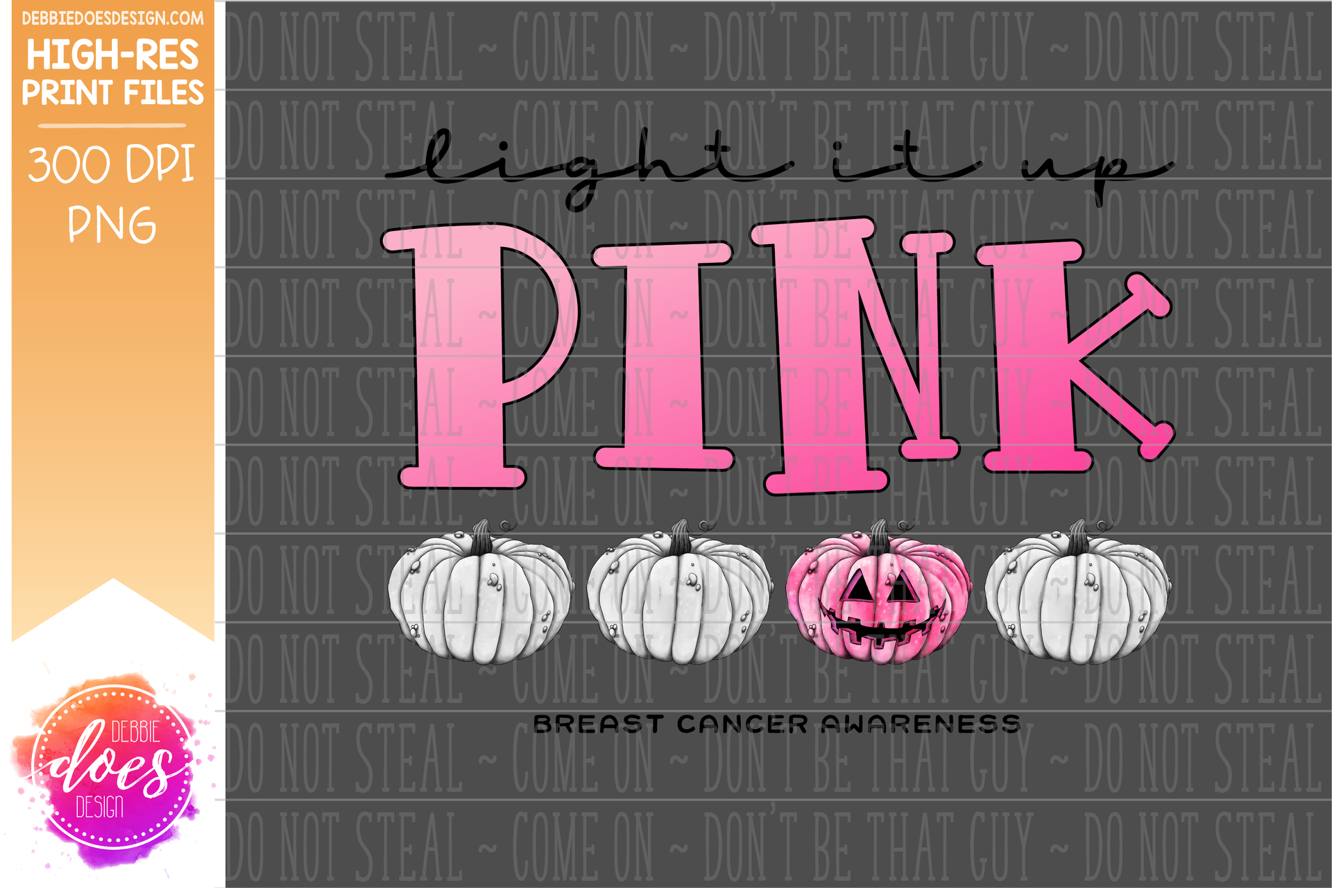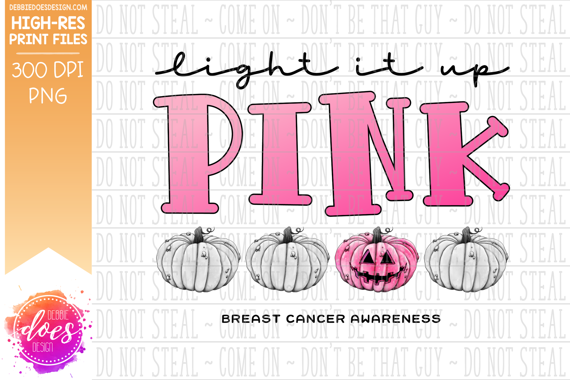 Light it Up Pink - Breast Cancer Pumpkins - Sublimation/Printable Design