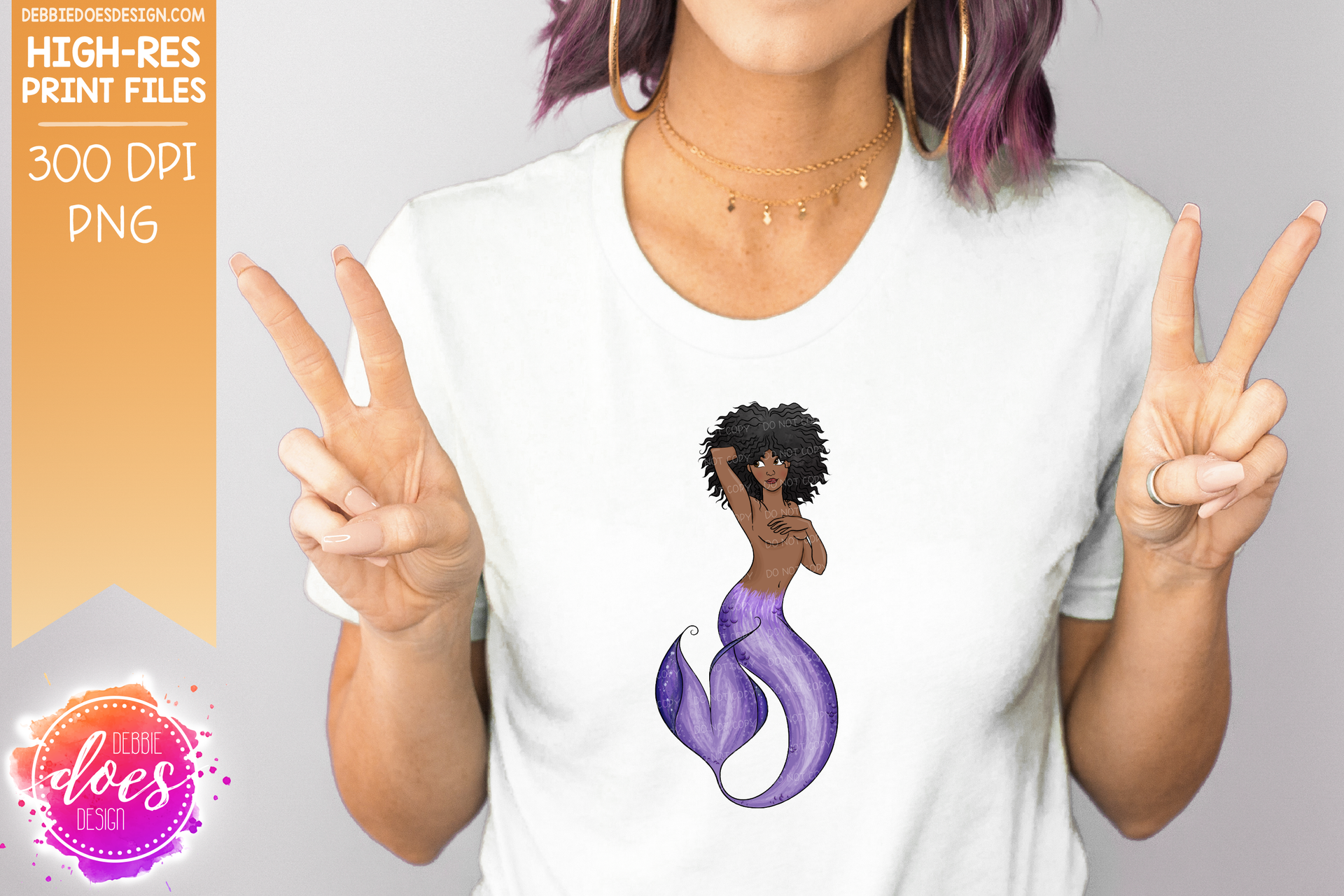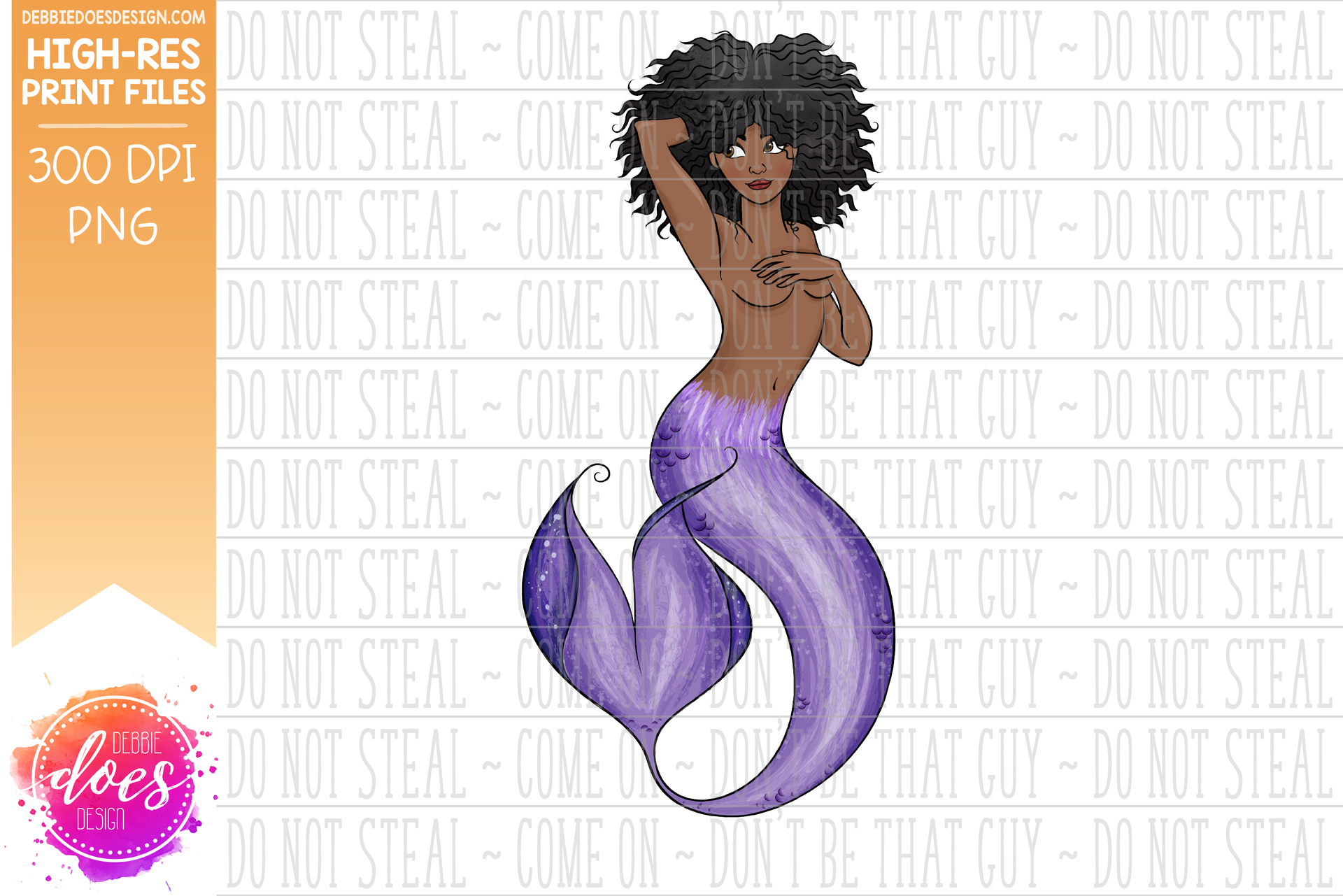Mermaid - Puff Hair Dark Skin - Sublimation/Printable Design