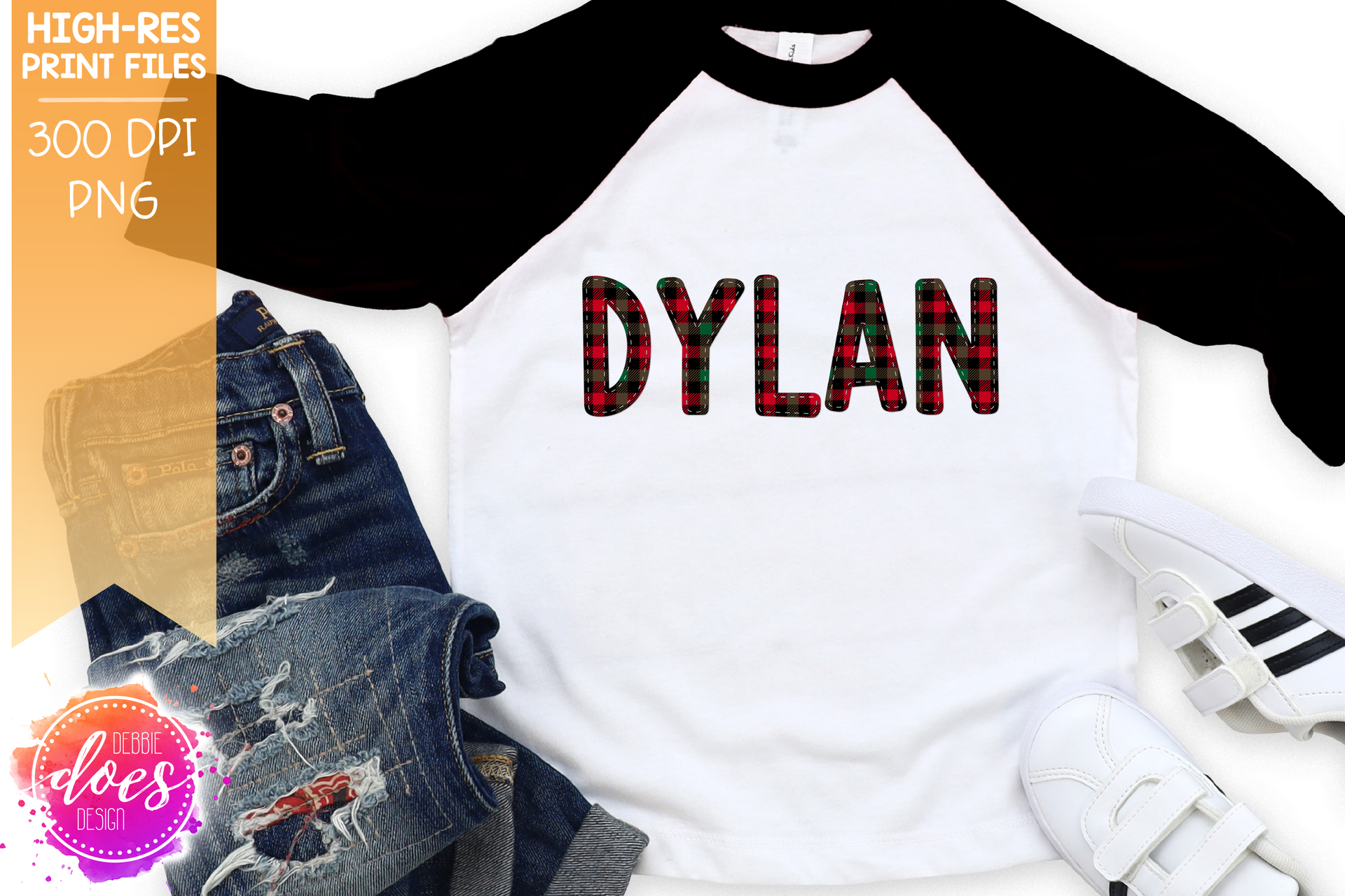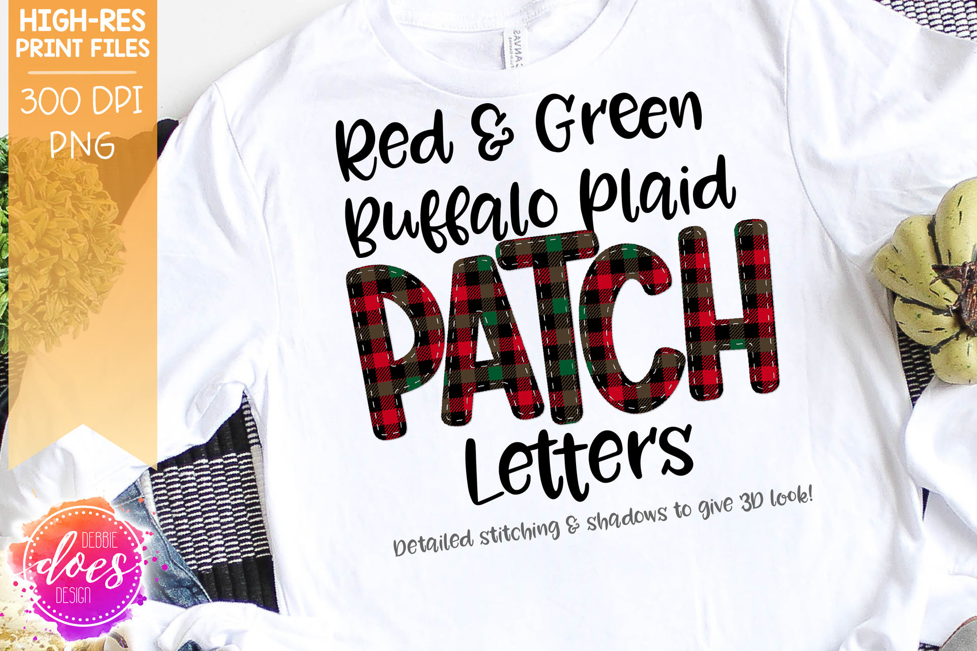 Red and Green Buffalo Plaid Patch Letters - Design Elements - Design Elements