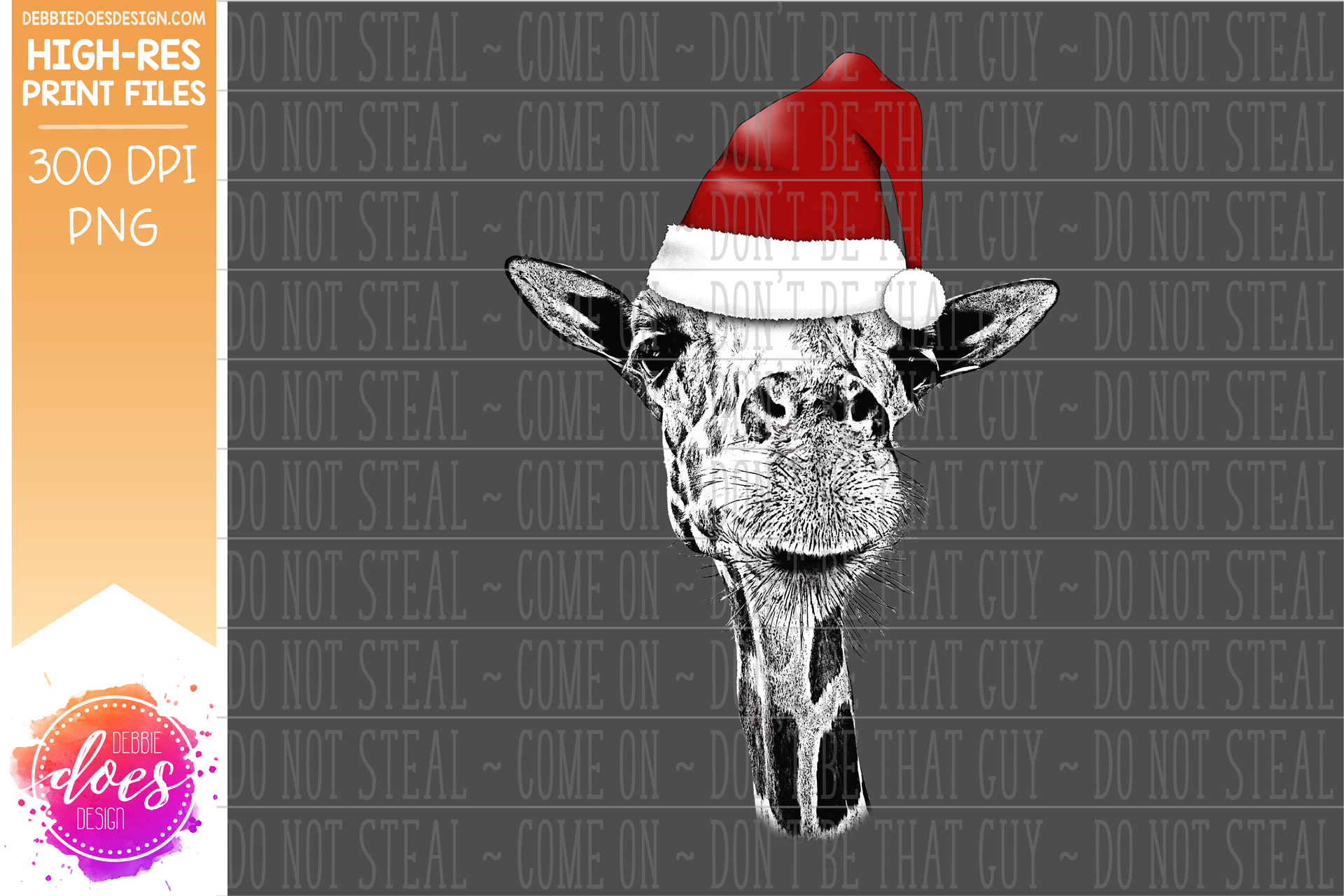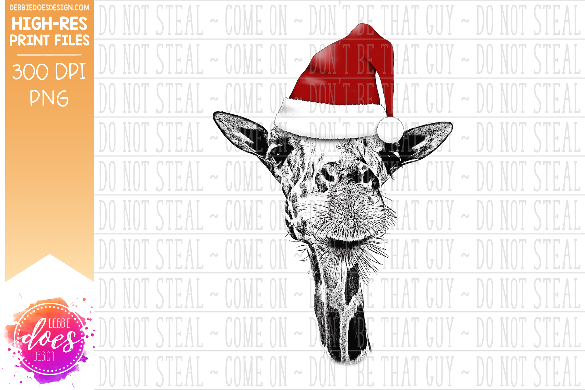 Santa Hat Giraffe Sketch - Sublimation/Printable Design