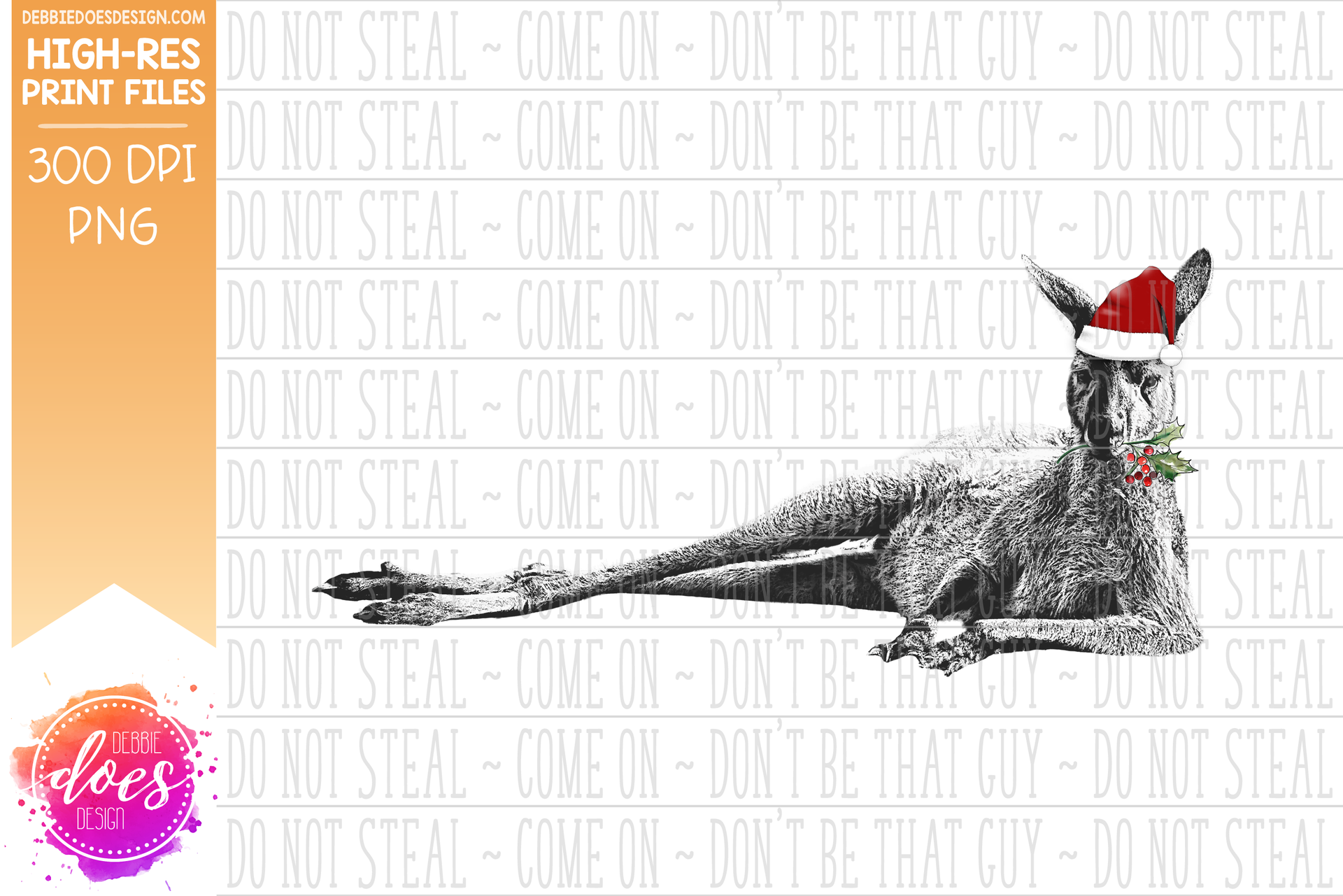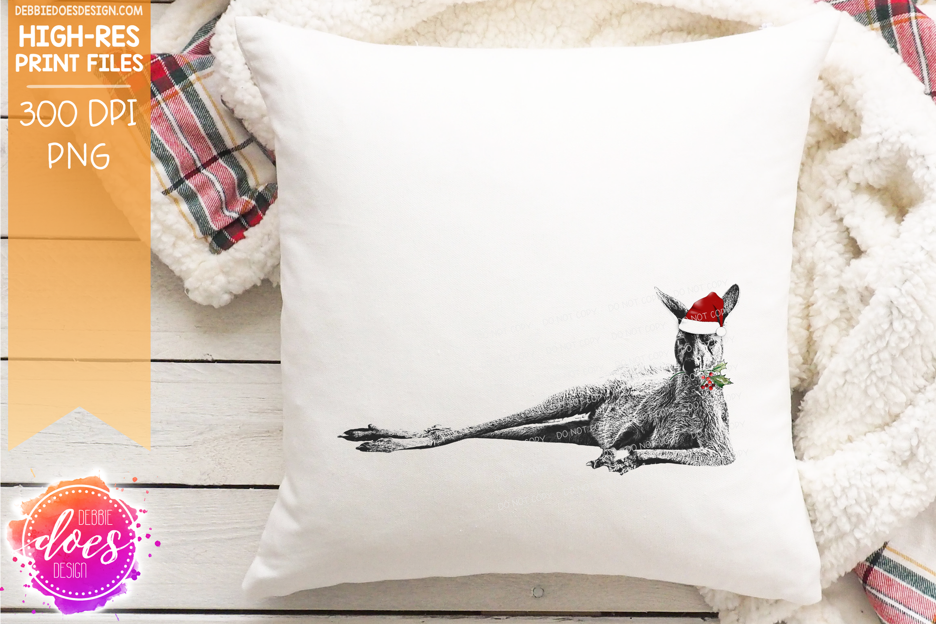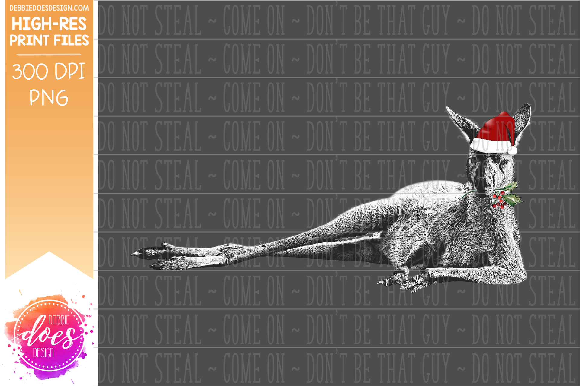 Santa Hat Kangaroo Sketch with Holly - Sublimation/Printable Design