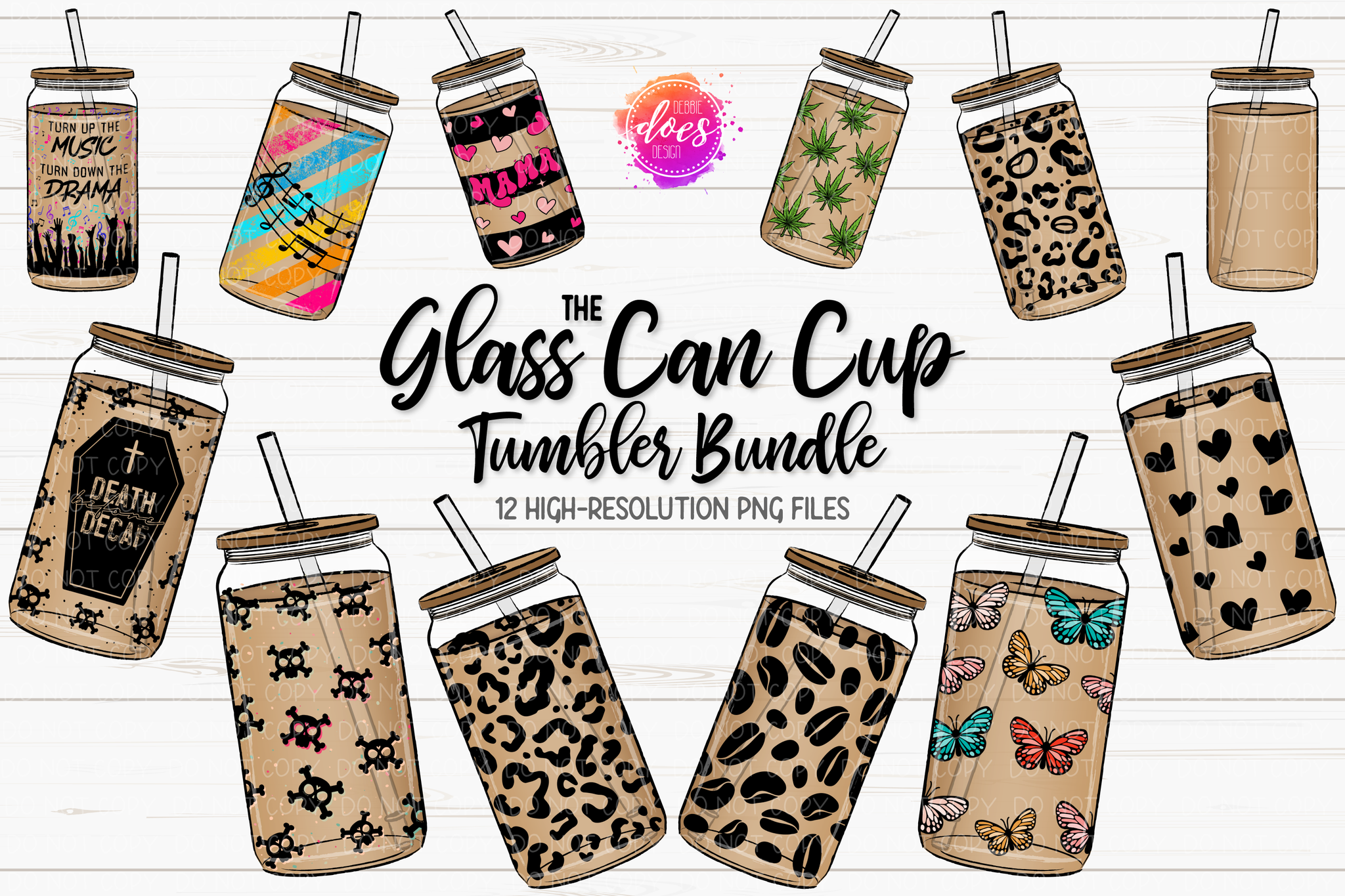 The Glass Can Cup Tumbler Bundle - Includes 12 designs! - Printable/Sublimation Designs