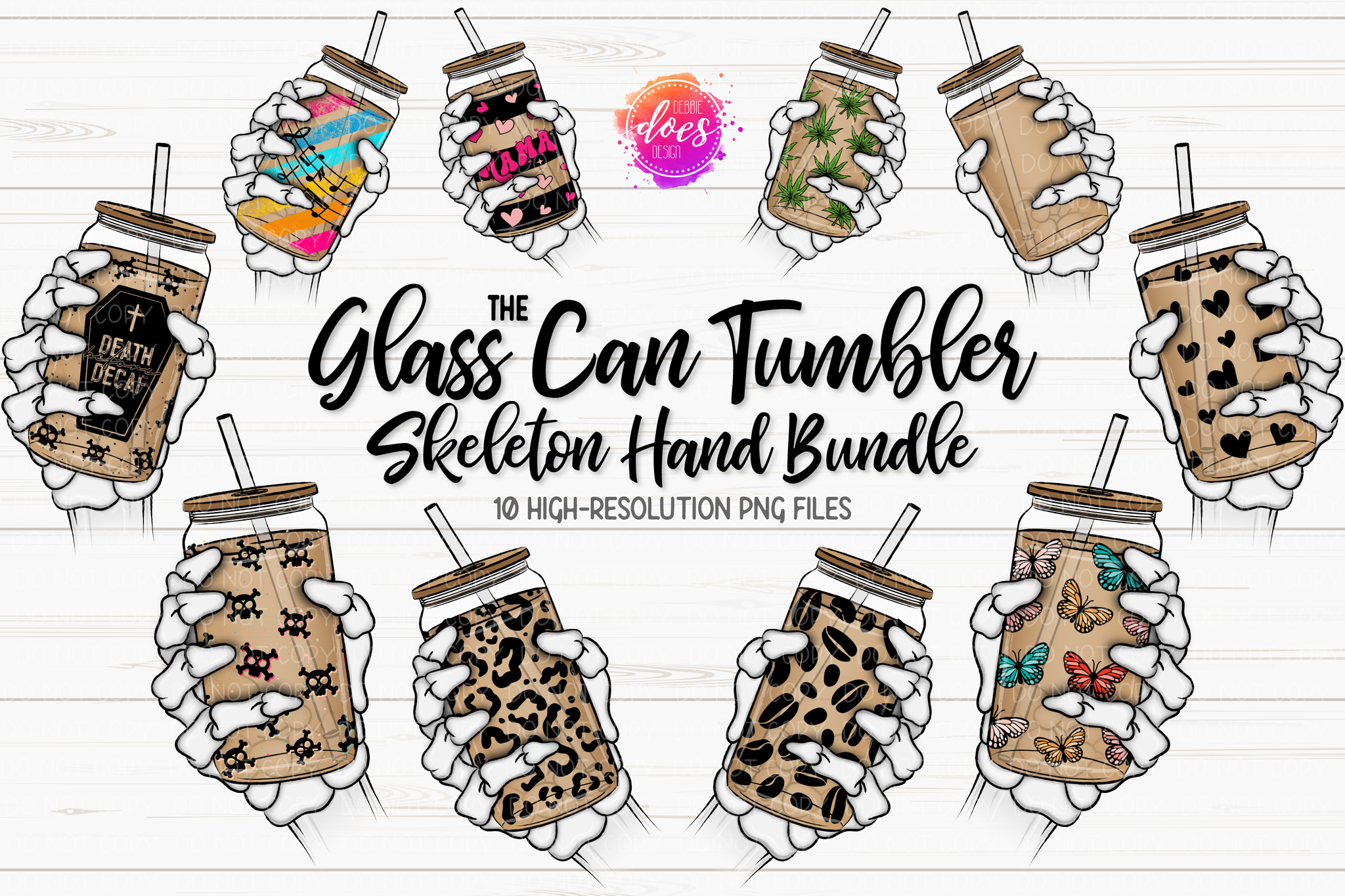 The Glass Can Tumbler Skeleton Hand Bundle - Printable/Sublimation Designs