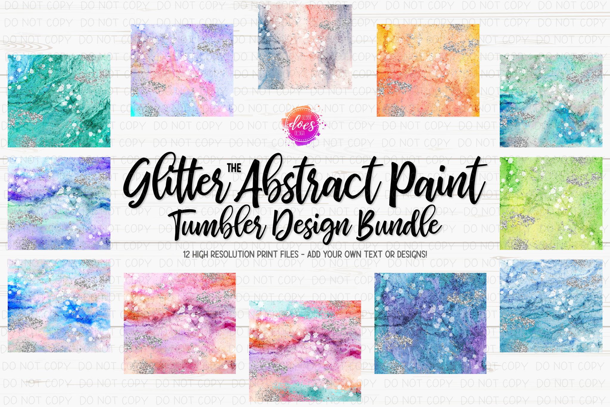 The Glitter Abstract Paint Tumbler Bundle - Includes 12 Tumbler Designs - Printable/Sublimation Designs