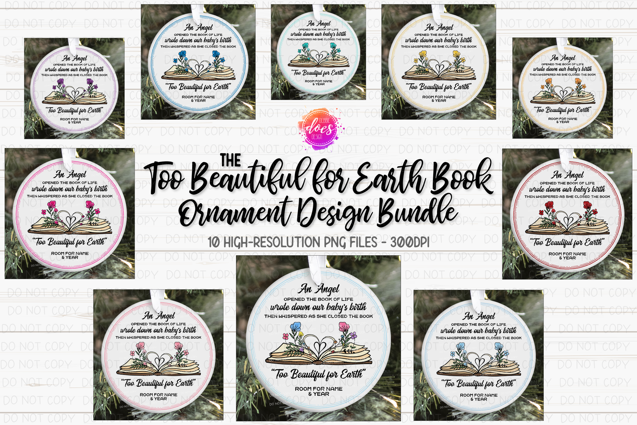 Too Beautiful for Earth Book Ornament Bundle - Includes 10 Files! - Sublimation/Printable Design