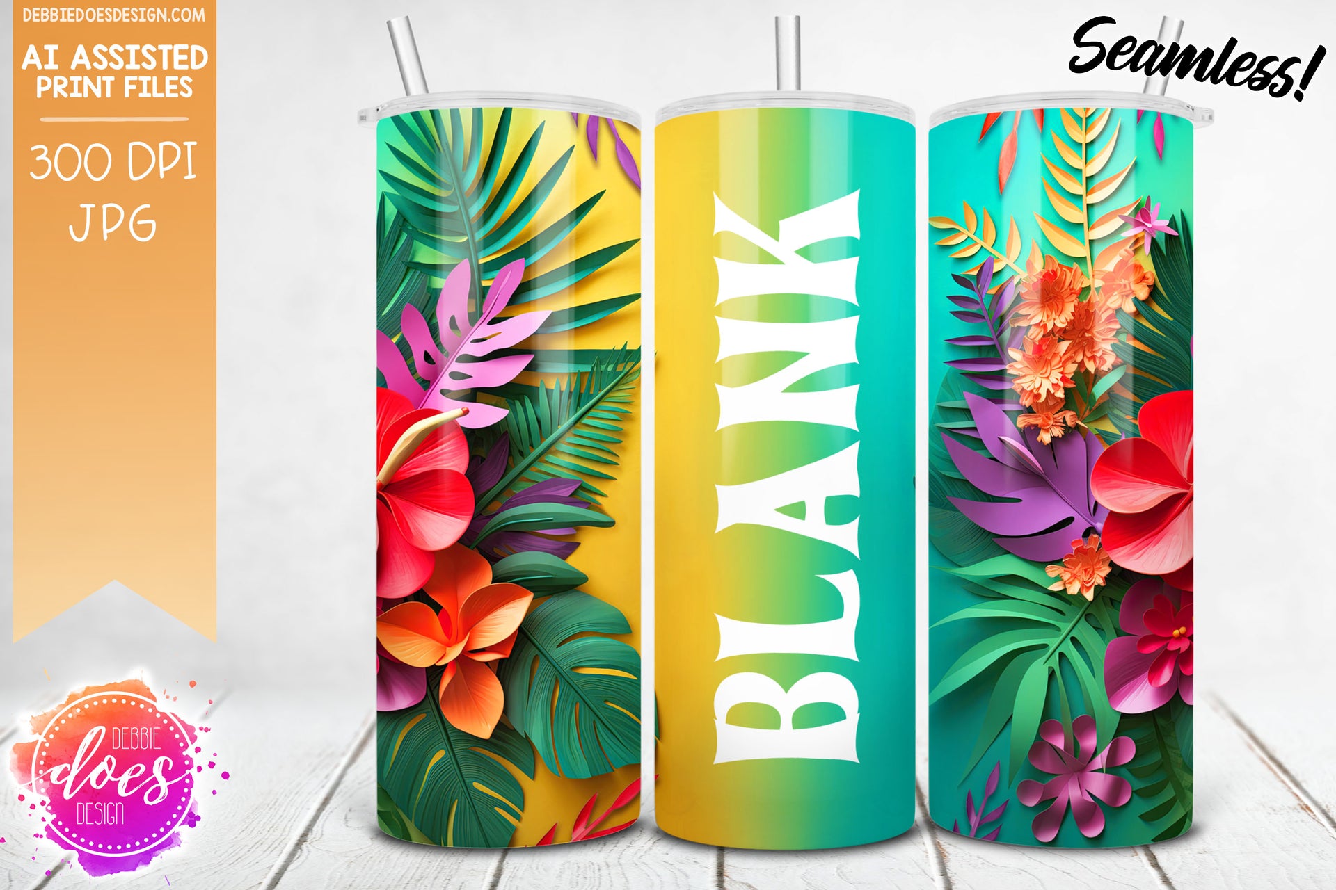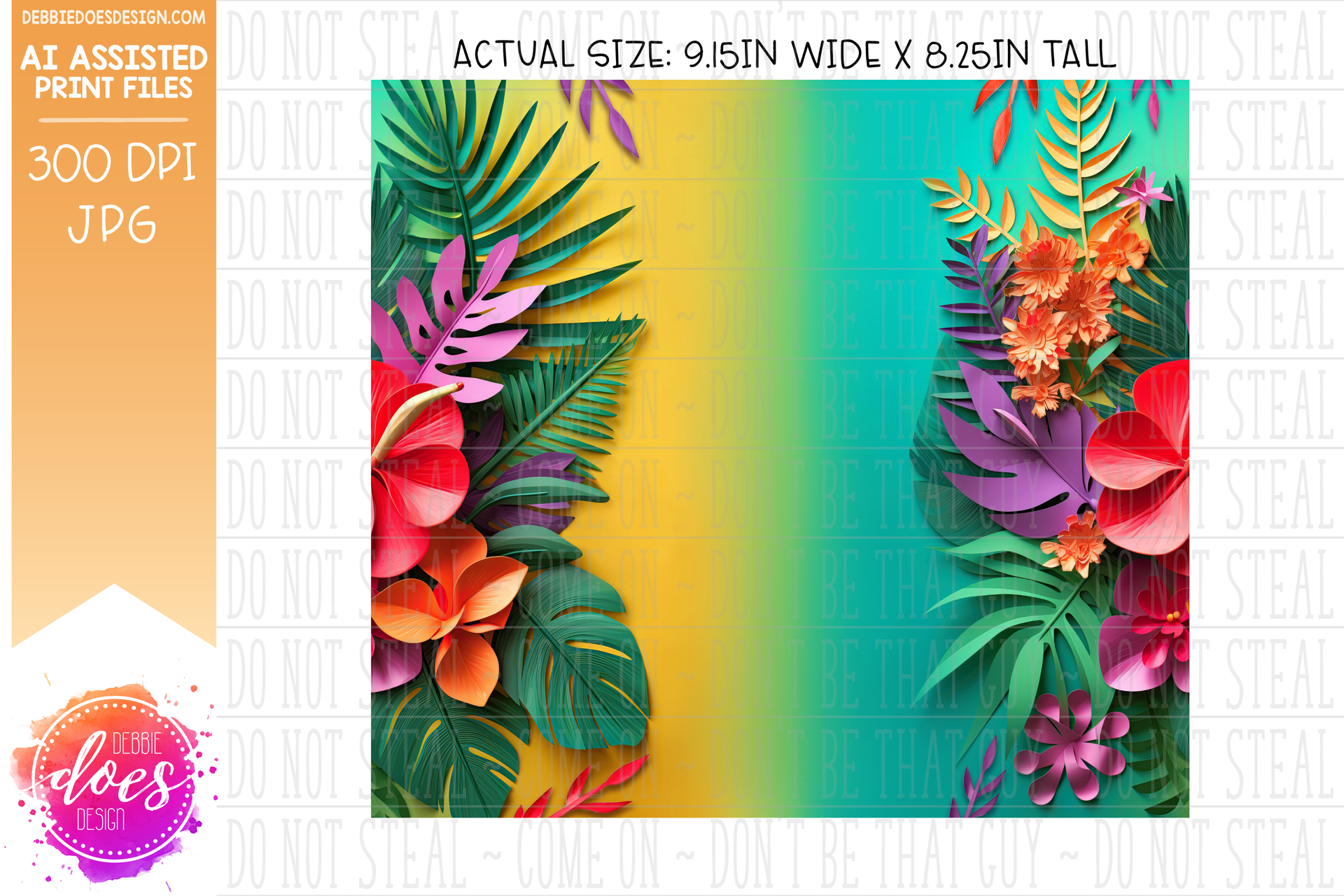 Tropical Flowers - Teal Yellow Tumbler - Blank - Printable/Sublimation Design