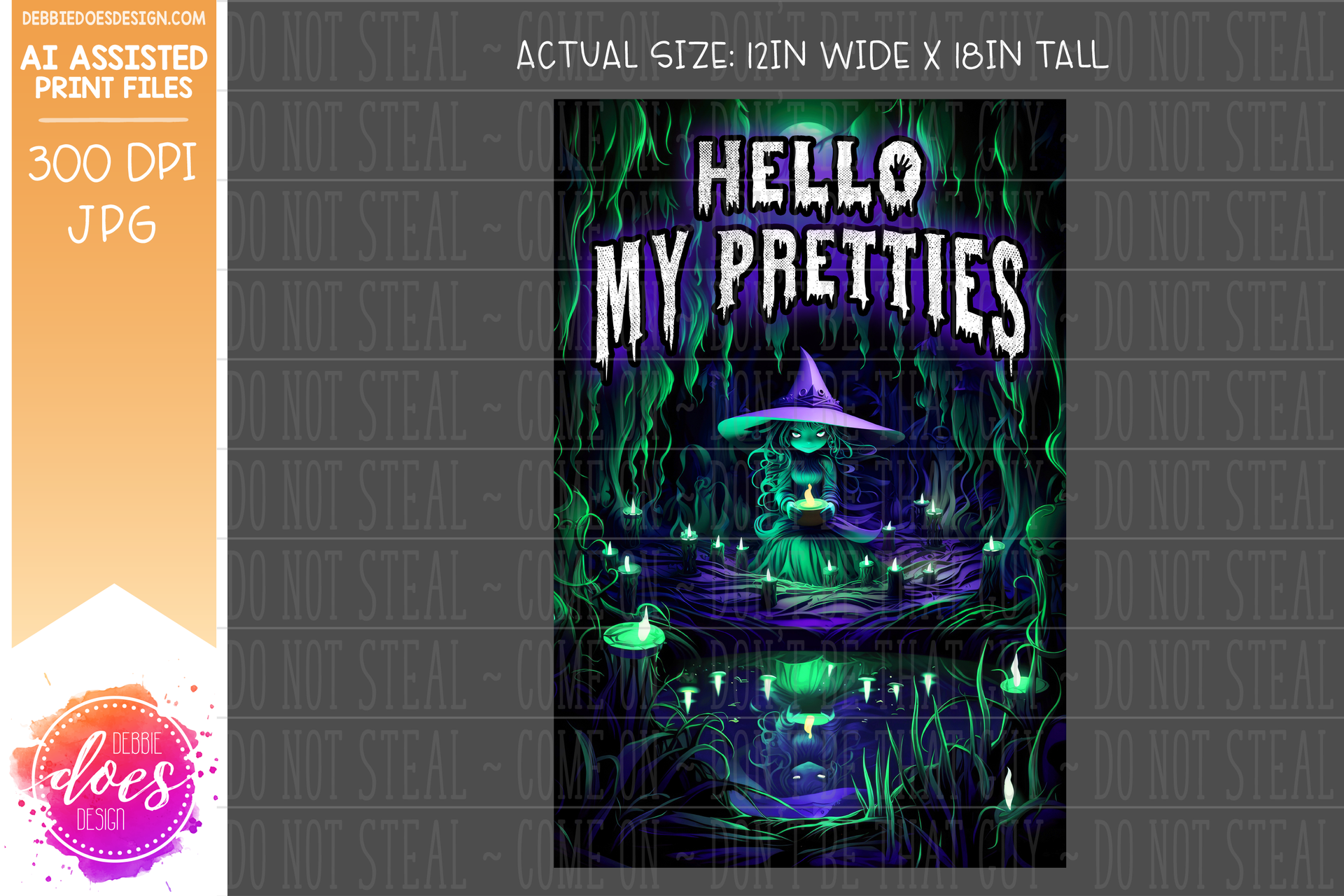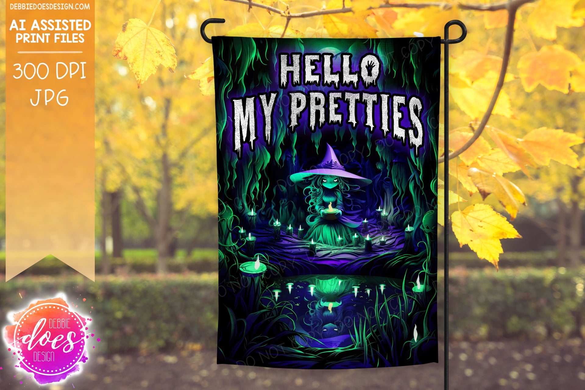 Wicked Purple and Green Witch - Hello My Pretties - Garden Flag - AI Assisted Printable/Sublimation Design