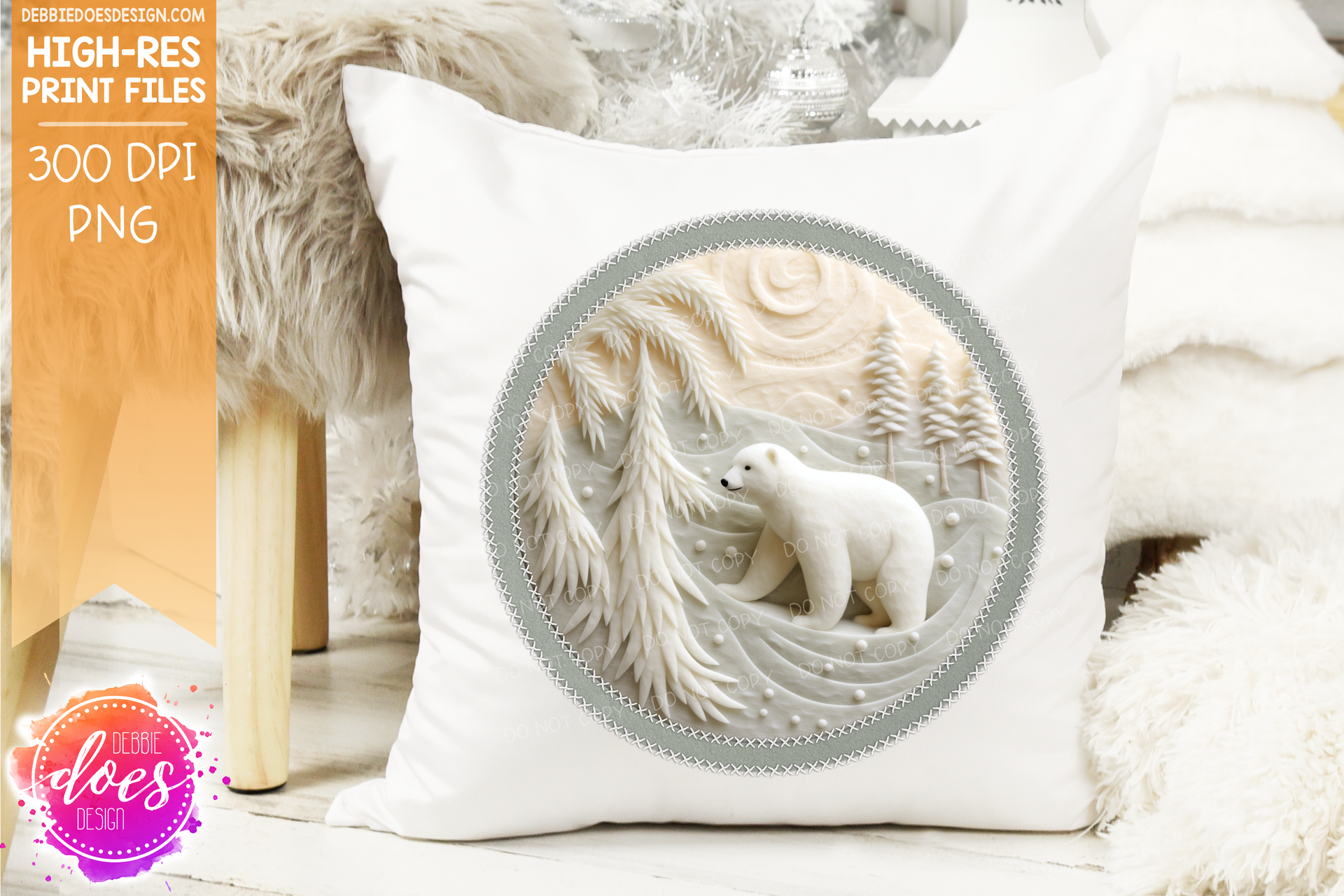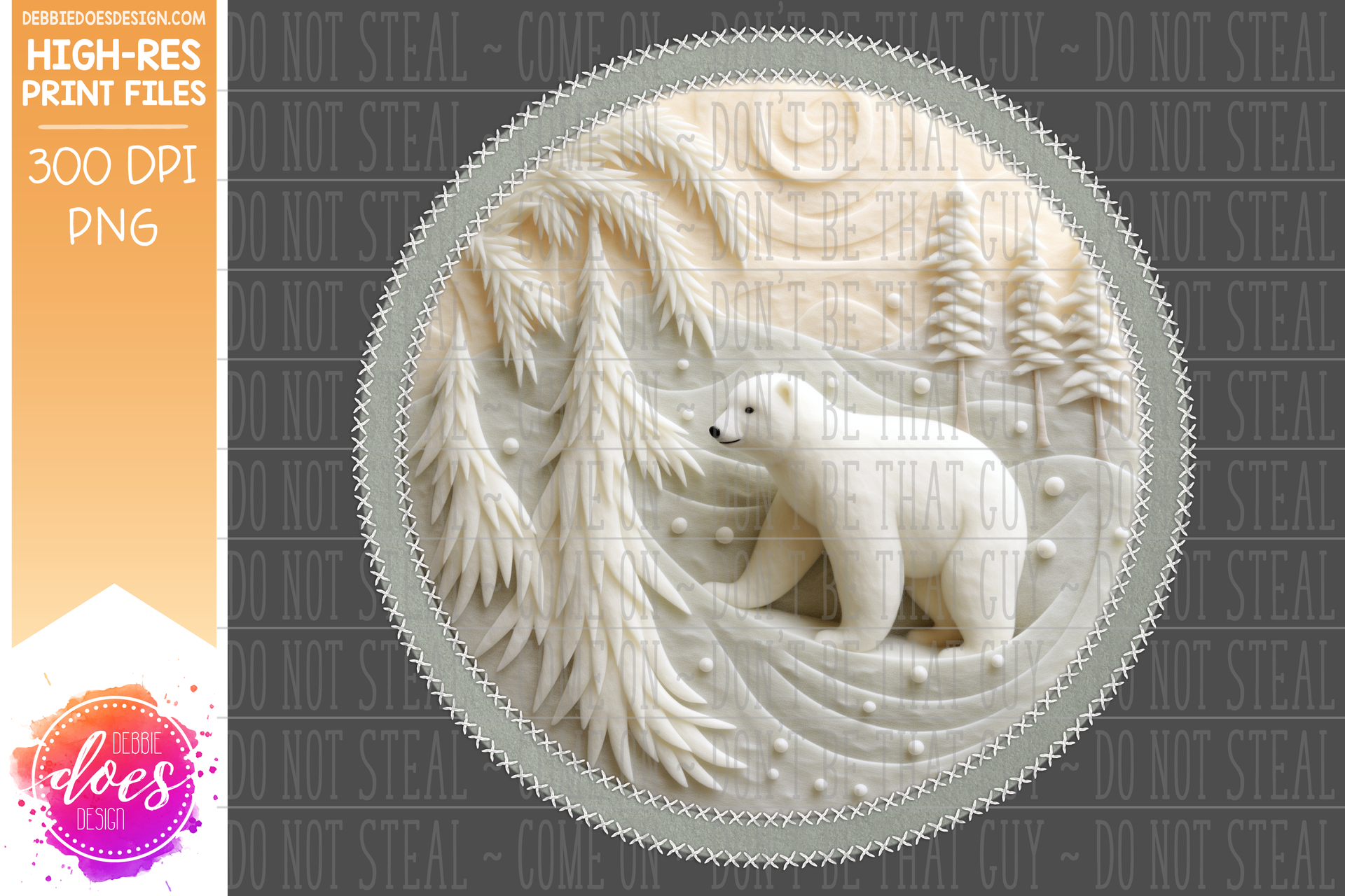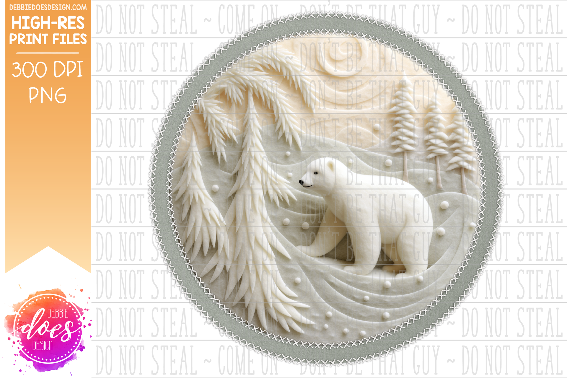 3D Felt Circle Applique - Light Polar Bear - Sublimation/Printable Design