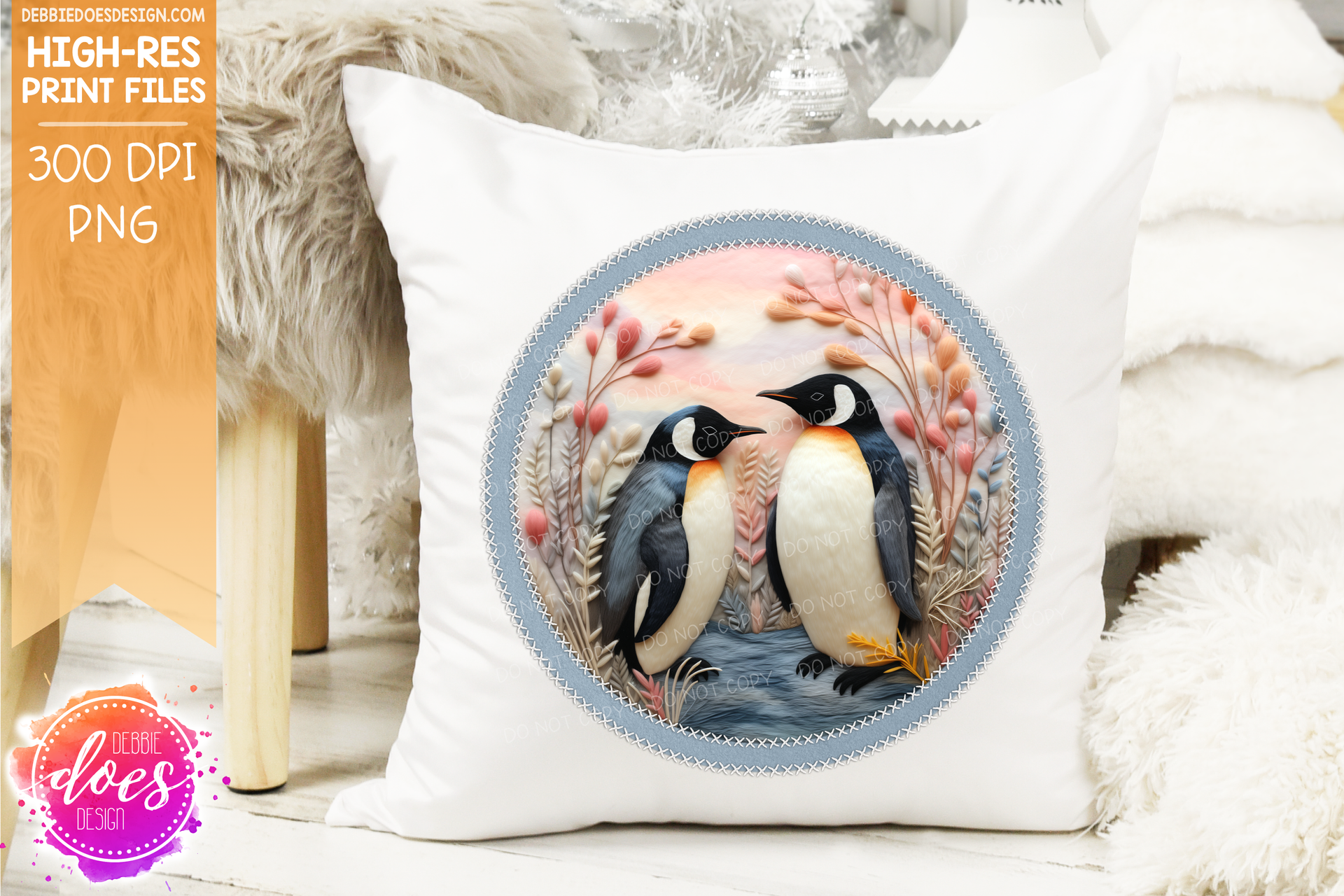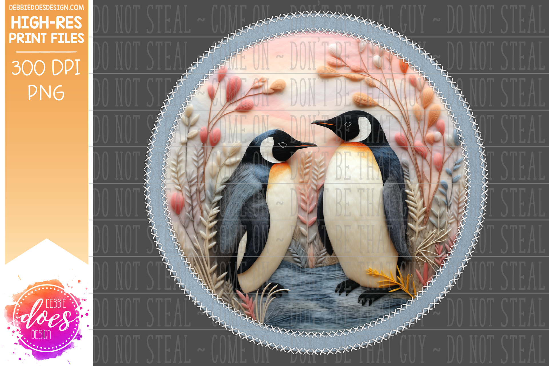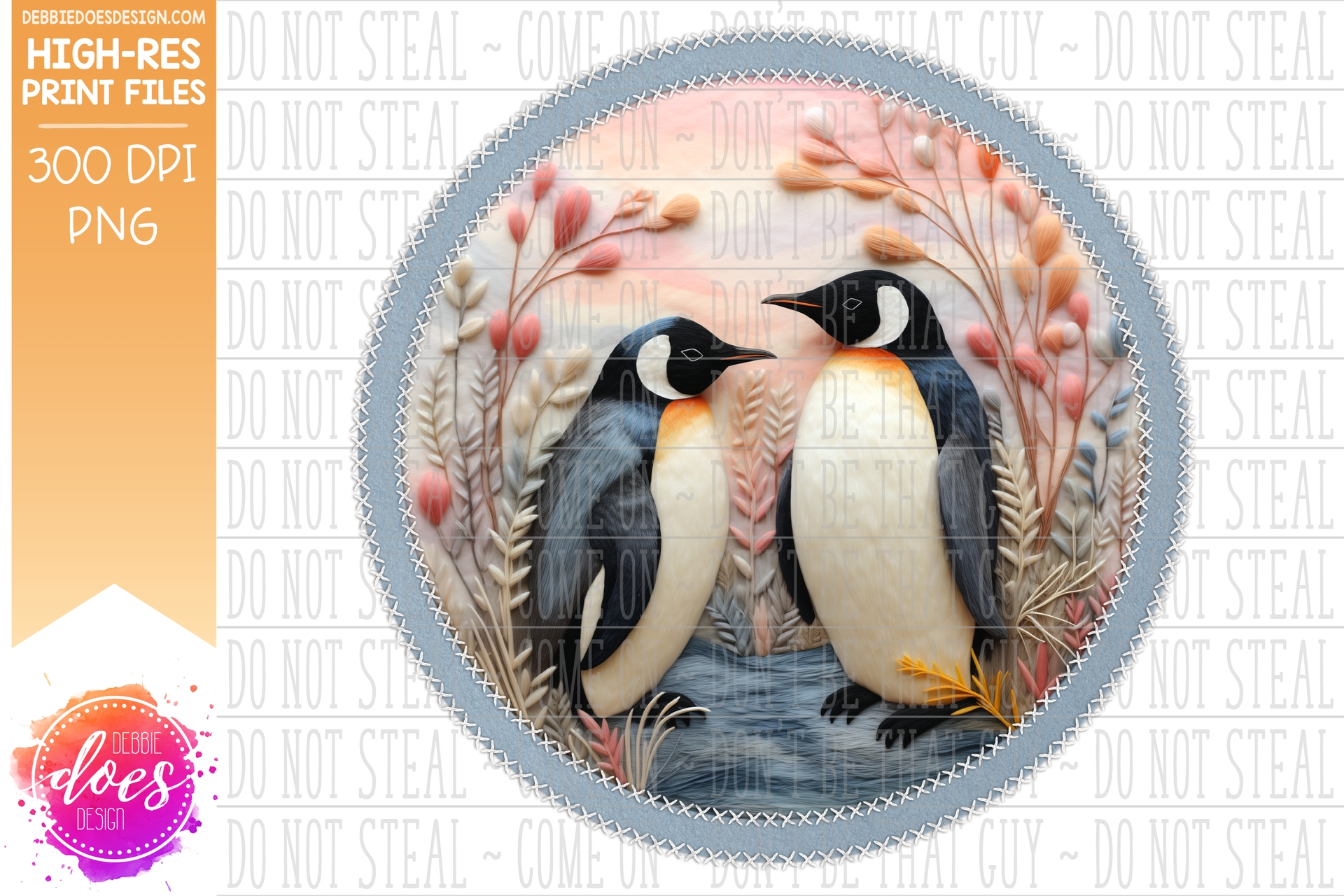3D Felt Circle Applique - Penguin Couple Pastels - Sublimation/Printable Design