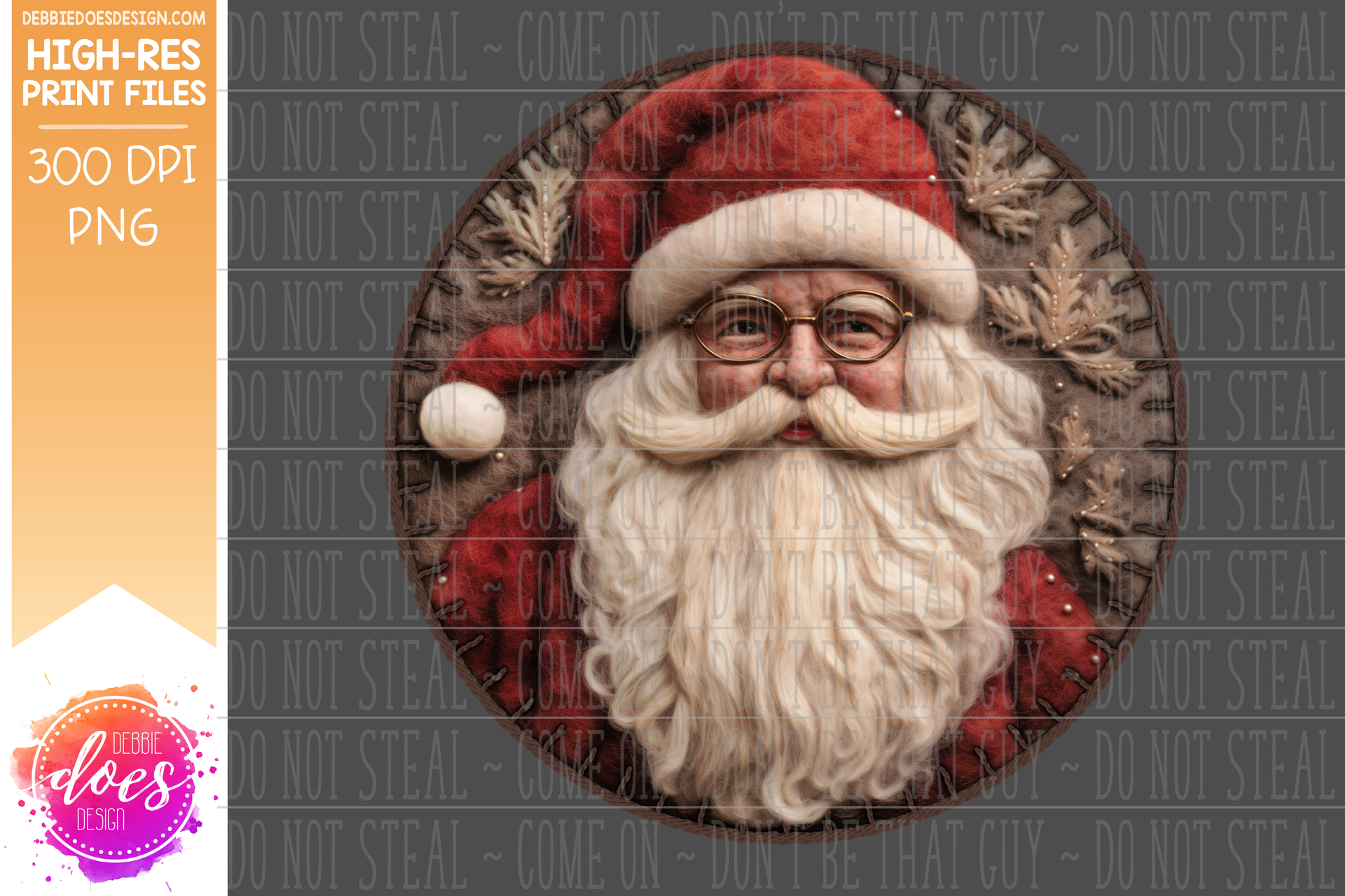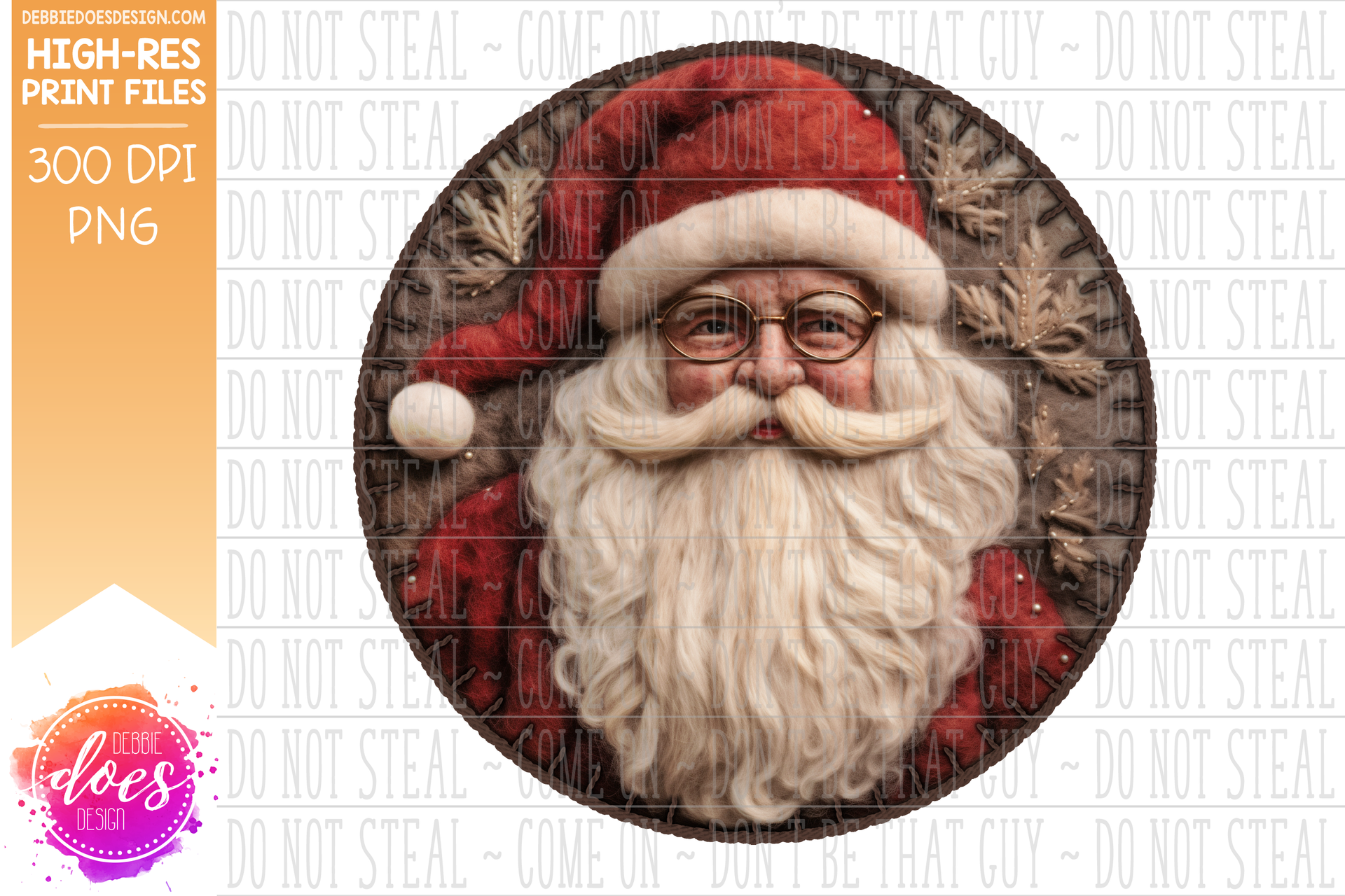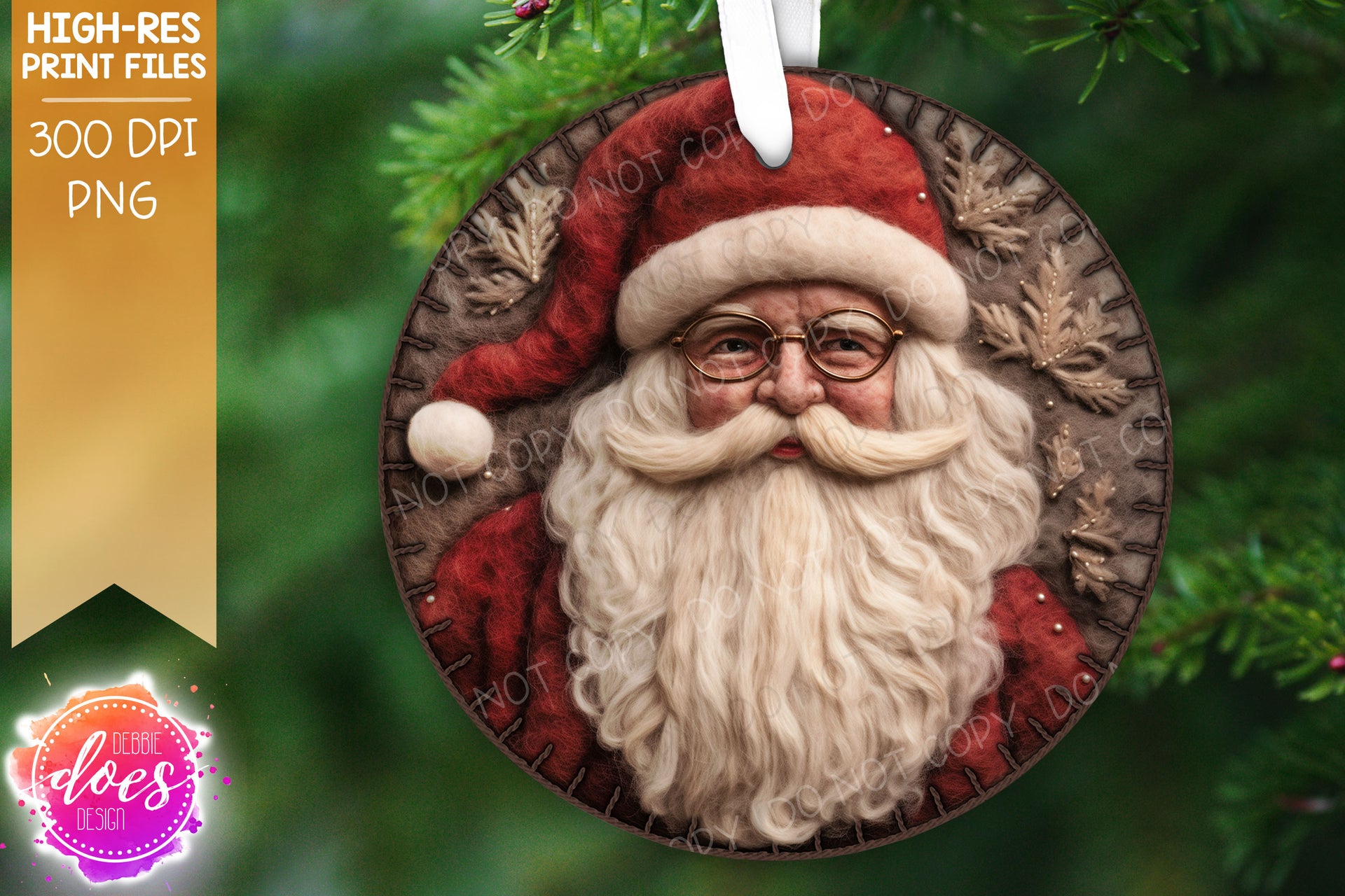 3D Felt Circle Ornament - Vintage Red Brown Santa - Brown - Sublimation/Printable Design