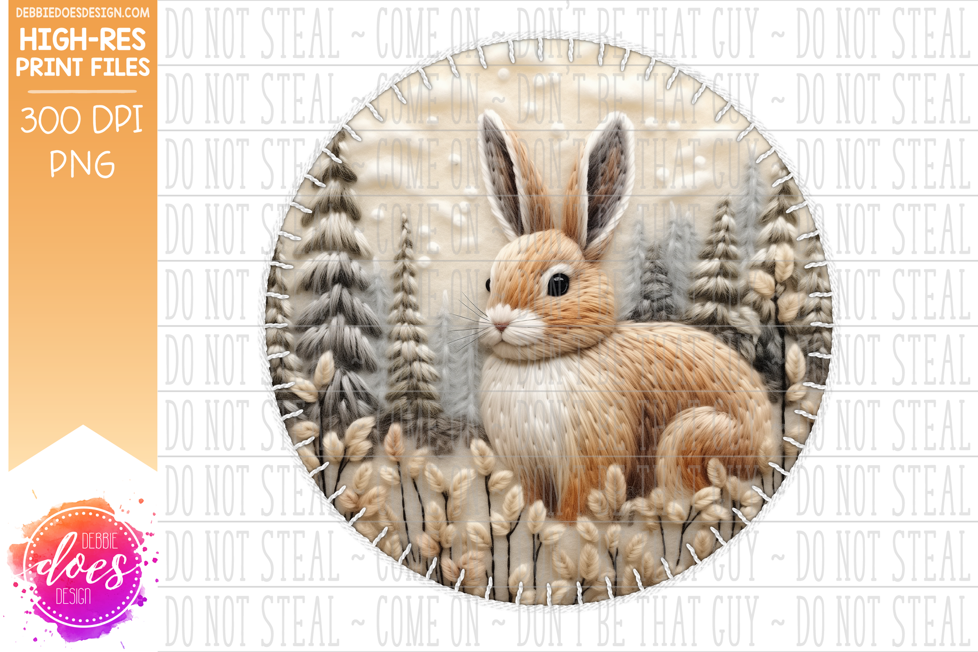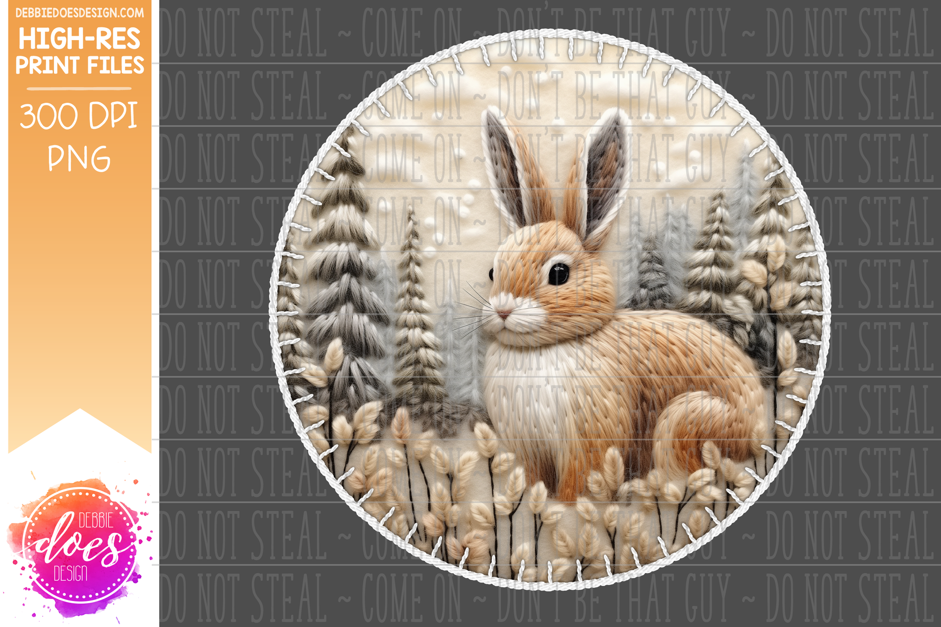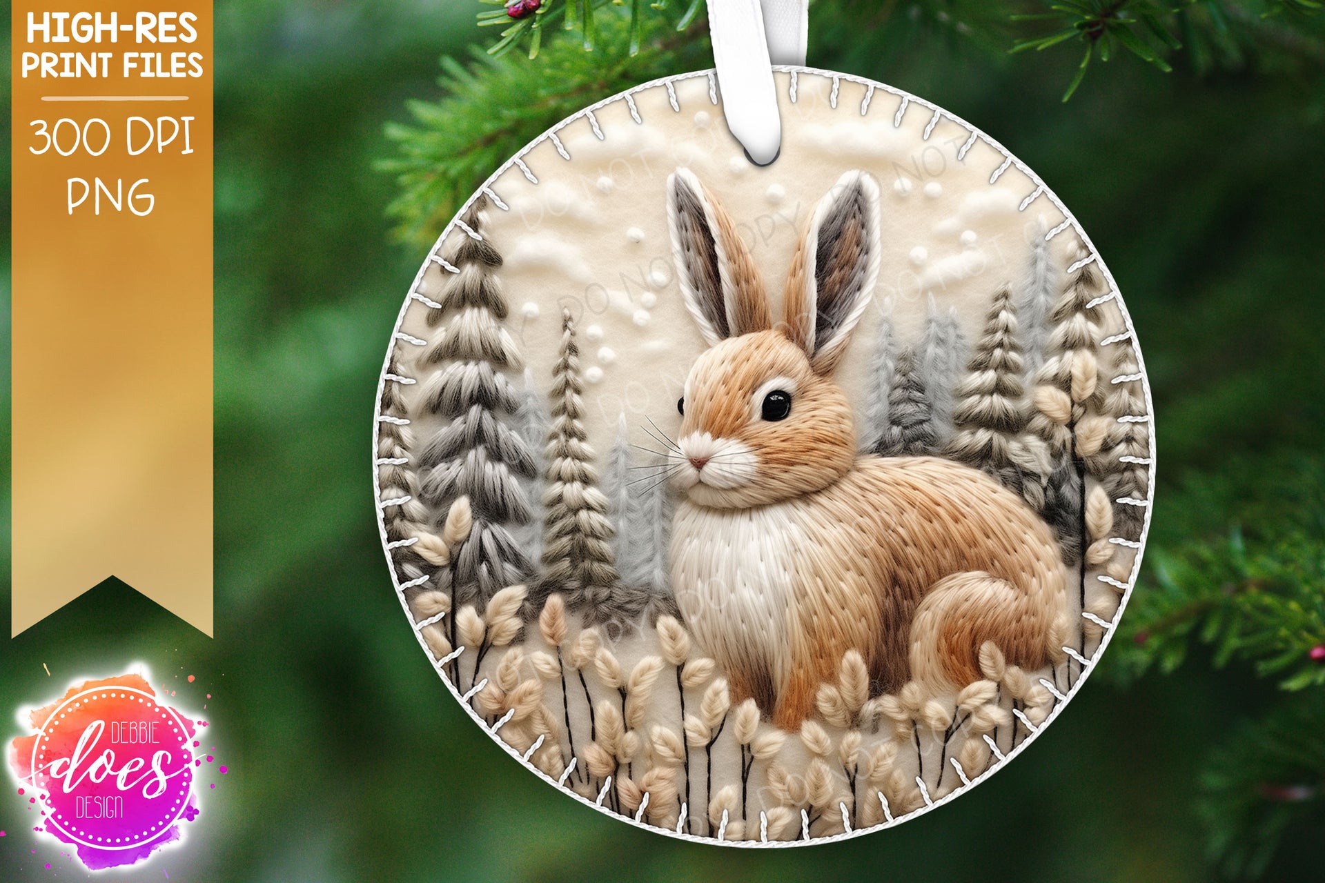 3D Felt Circle Ornament - Vintage Winter Rabbit - Sublimation/Printable Design