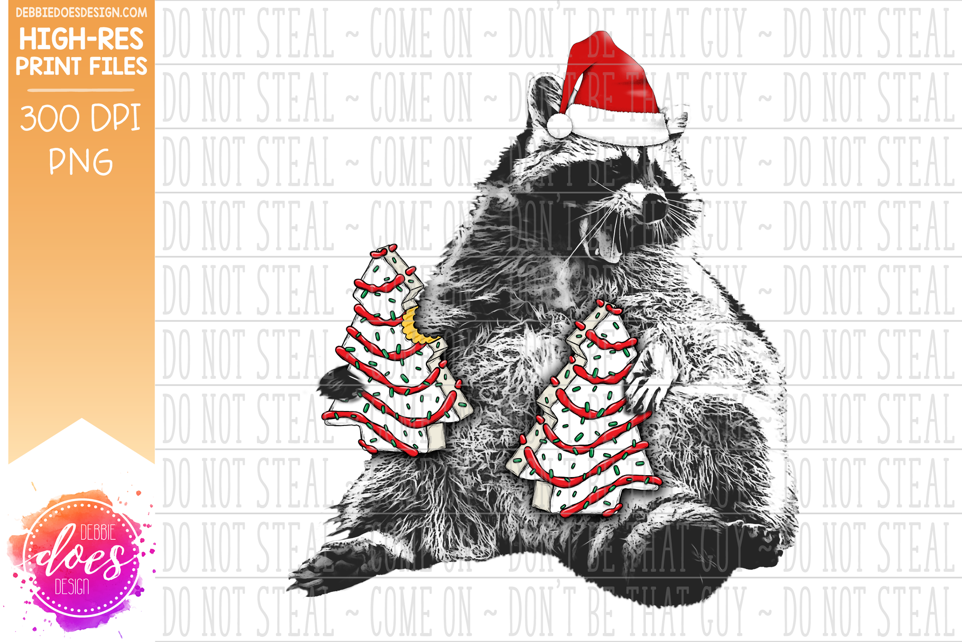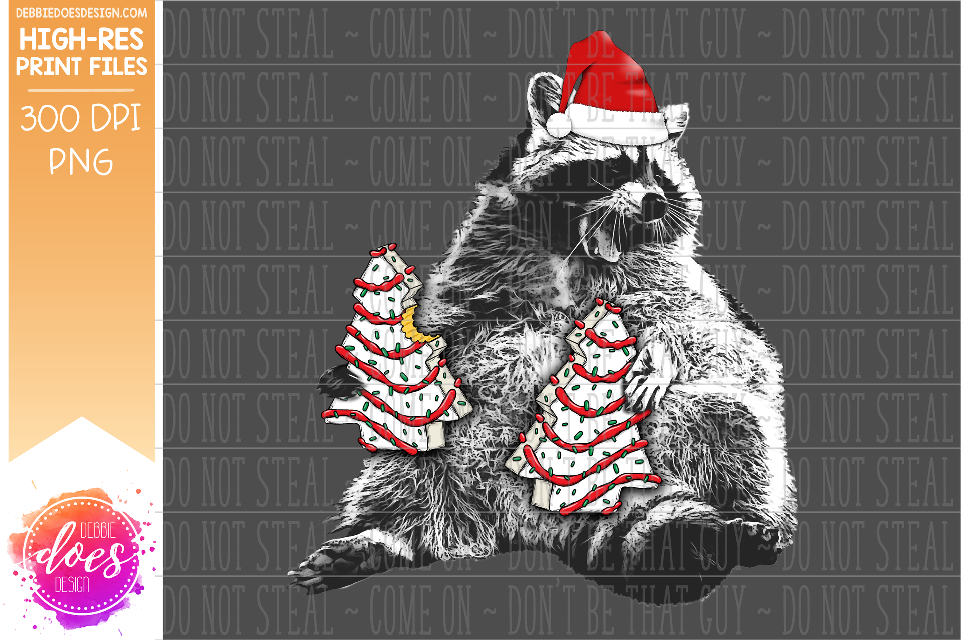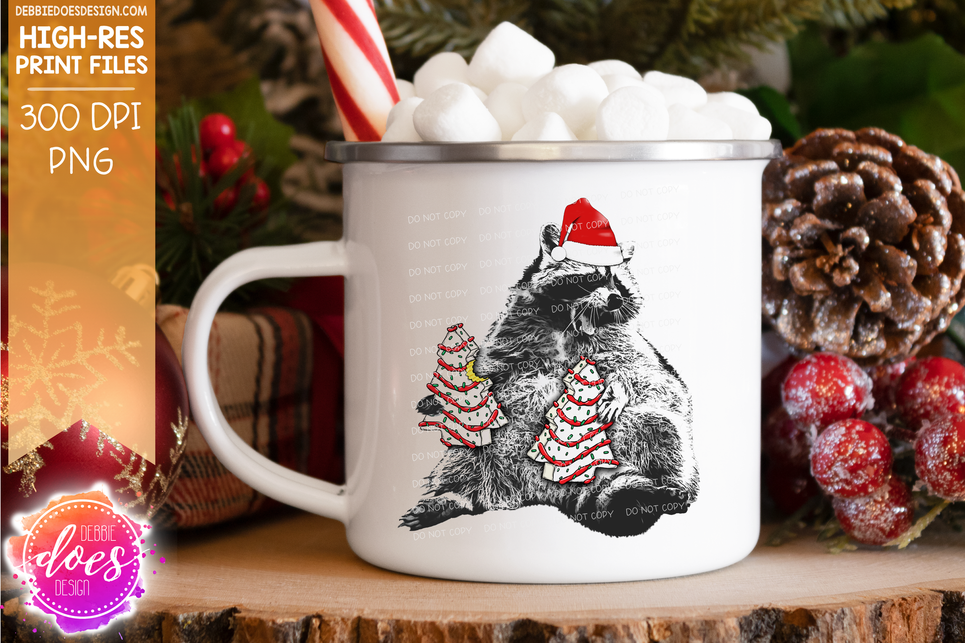 Angry Christmas Raccoon Sketch with 2 Cakes - Sublimation/Printable Design