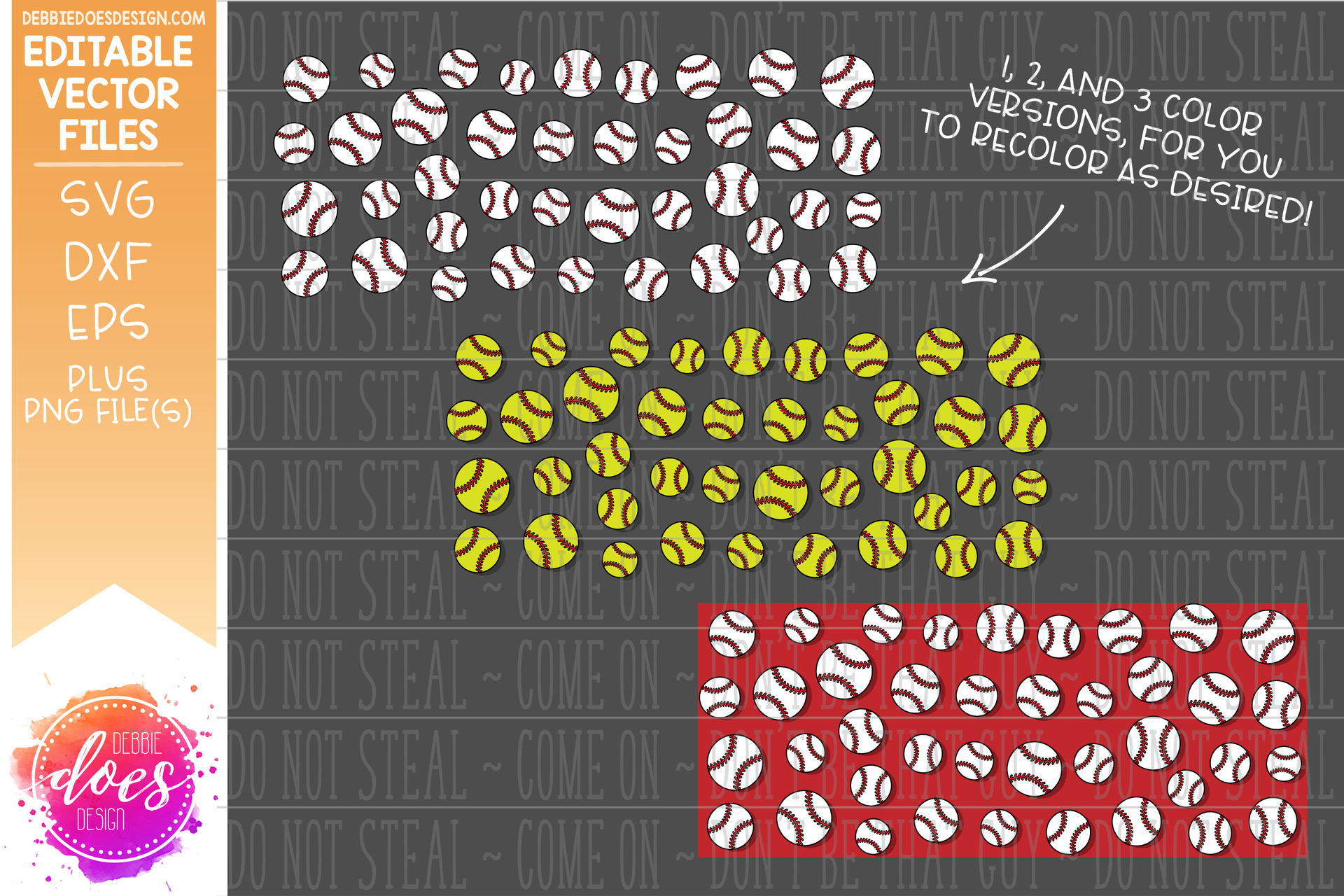 Baseball / Softball Print Glass Can Tumbler Designs - Set of 3 - Editable Vector Design