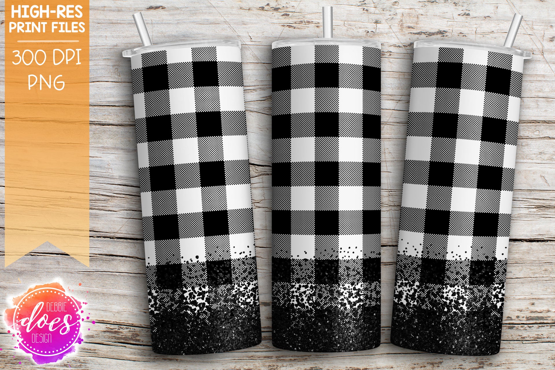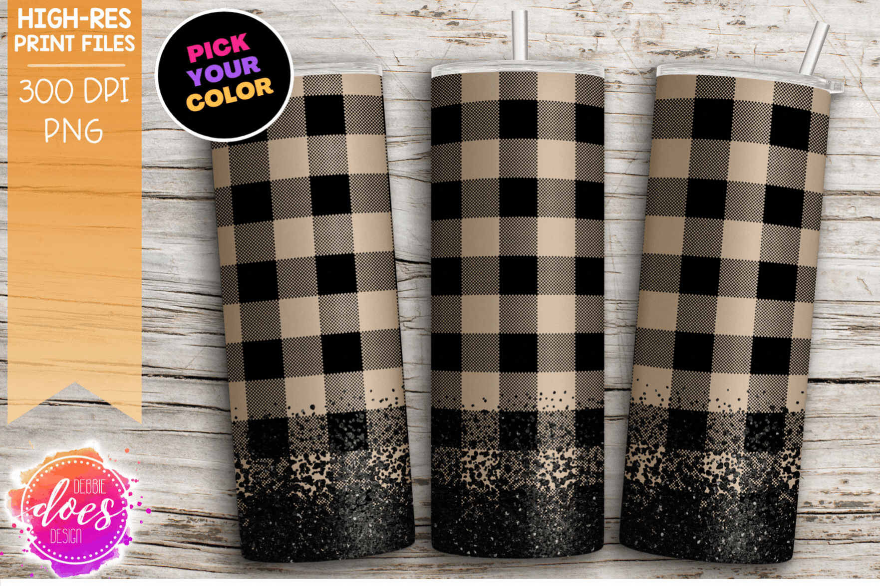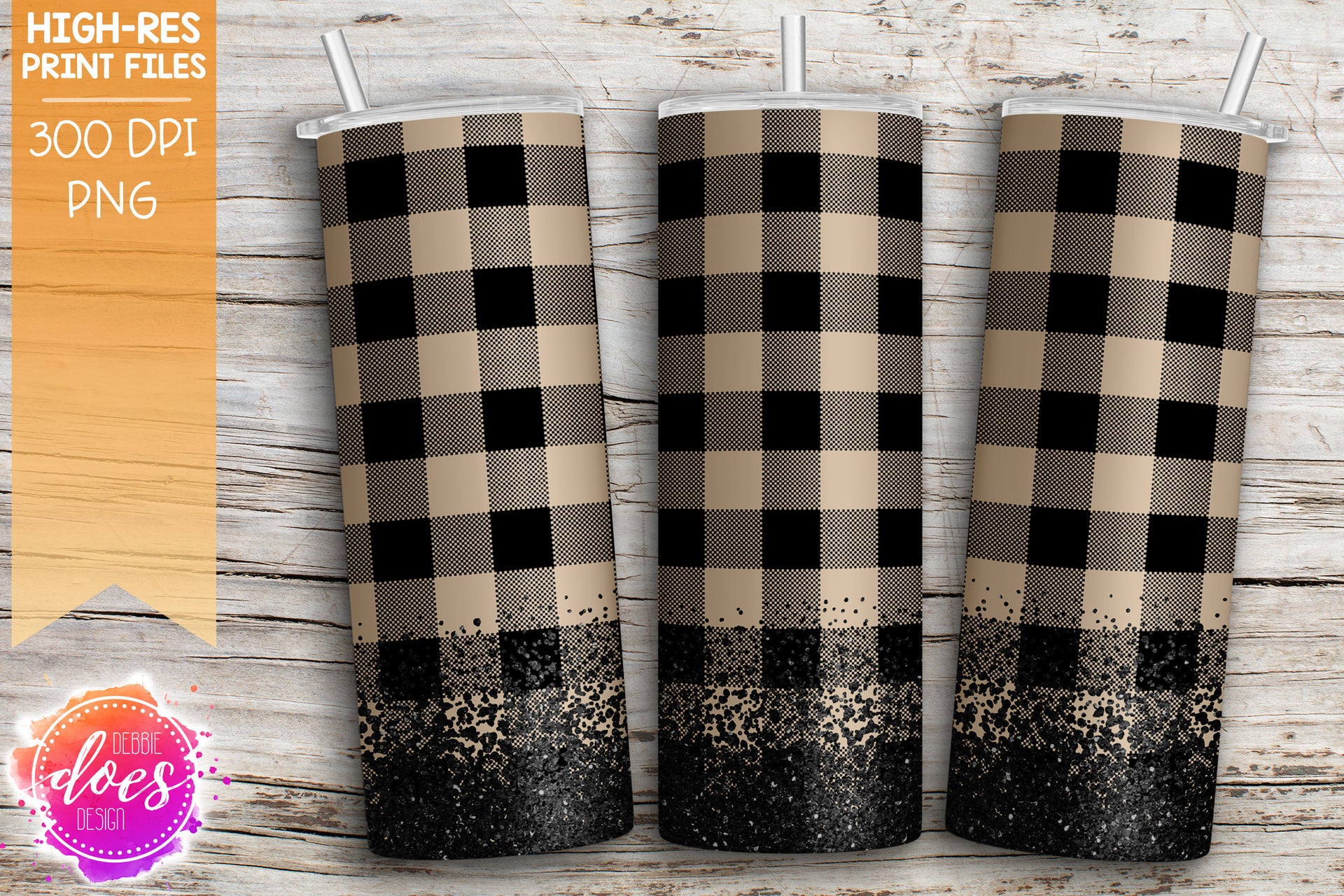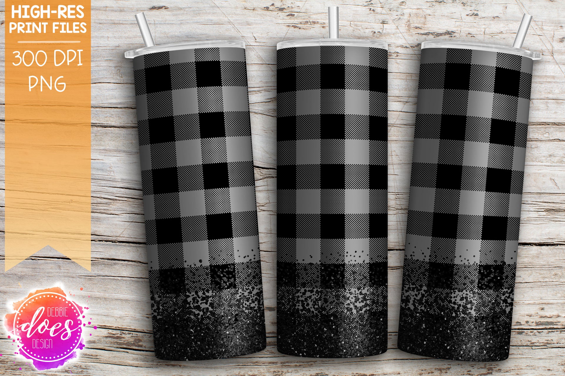 Black Glitter Plaid Ombre Tumbler Wrap - Choose your Color - Sublimation/Printable Design