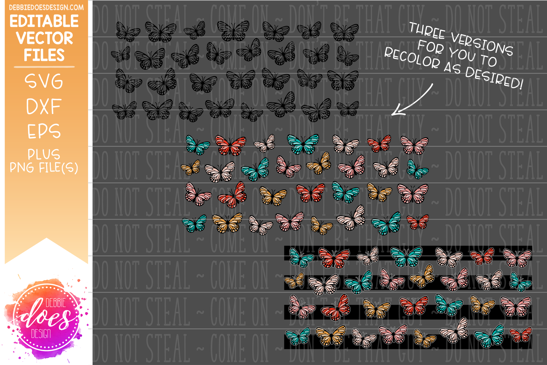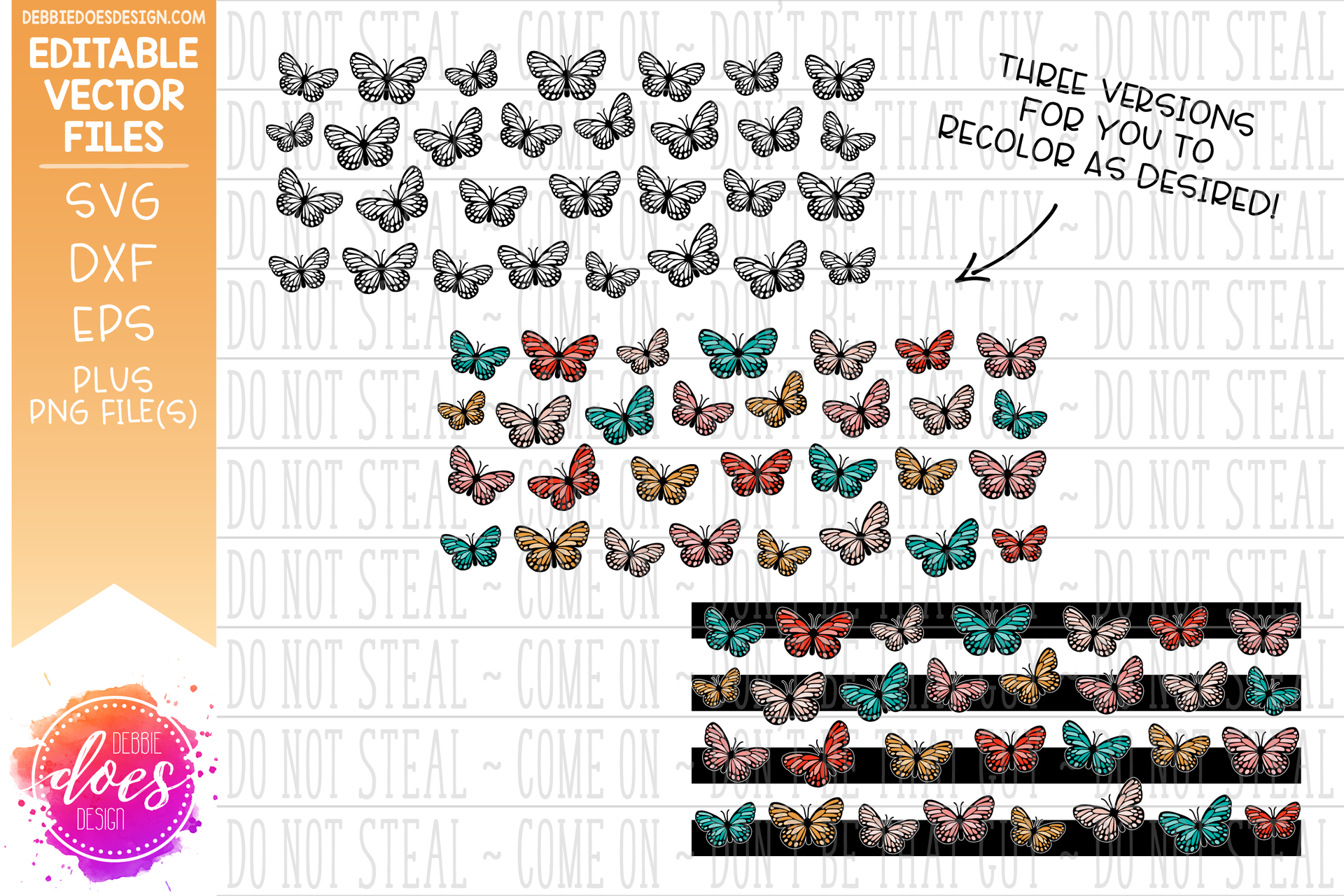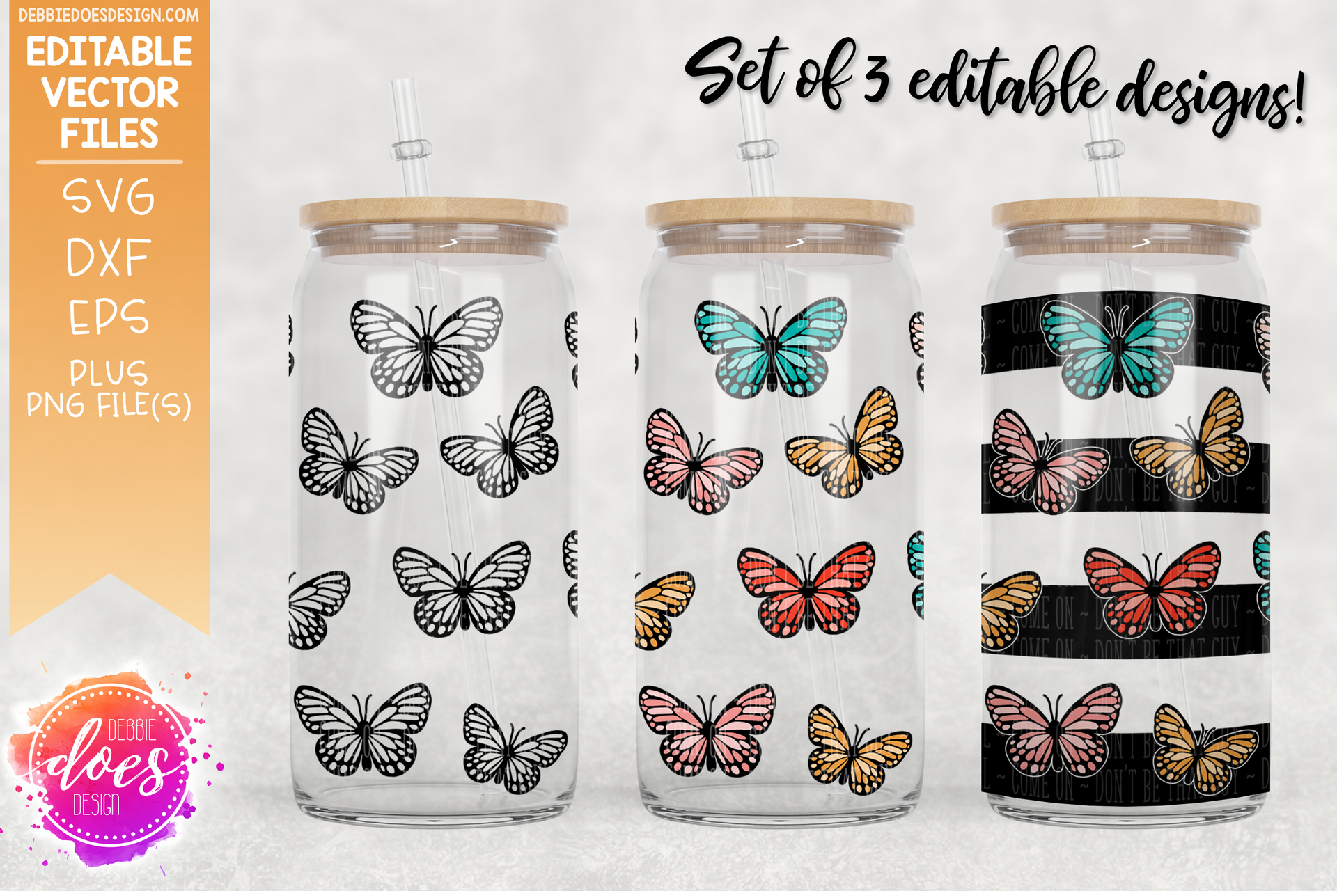 Butterfly Print Glass Can Tumbler Designs - Set of 3 - Editable Vector Design