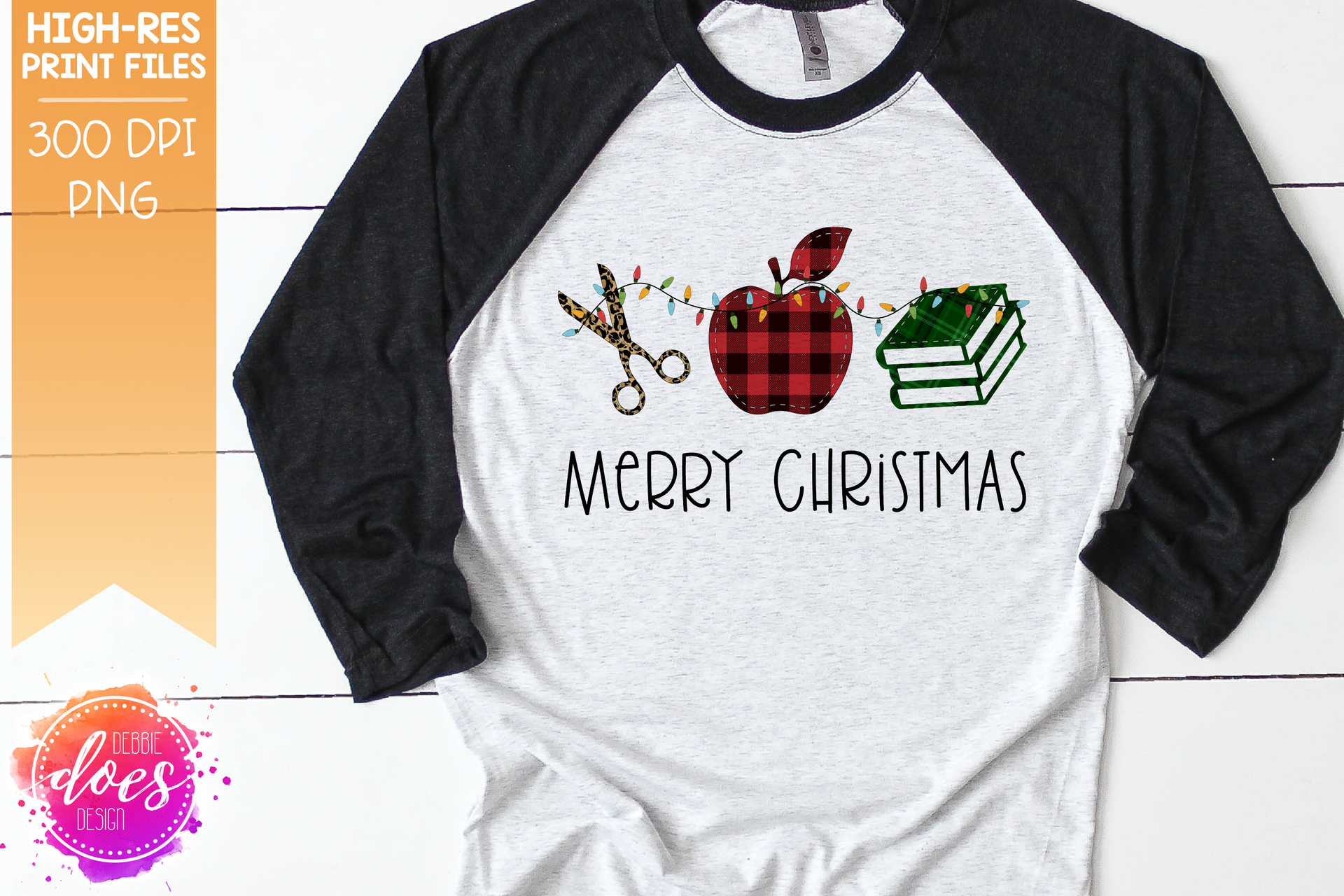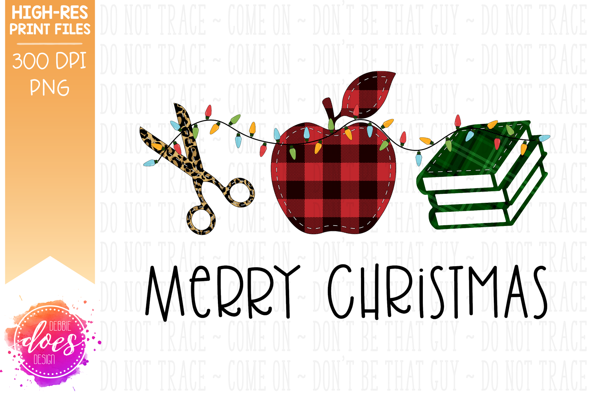 Christmas Leopard Plaid Teacher Applique With Lights - Sublimation/Printable Design