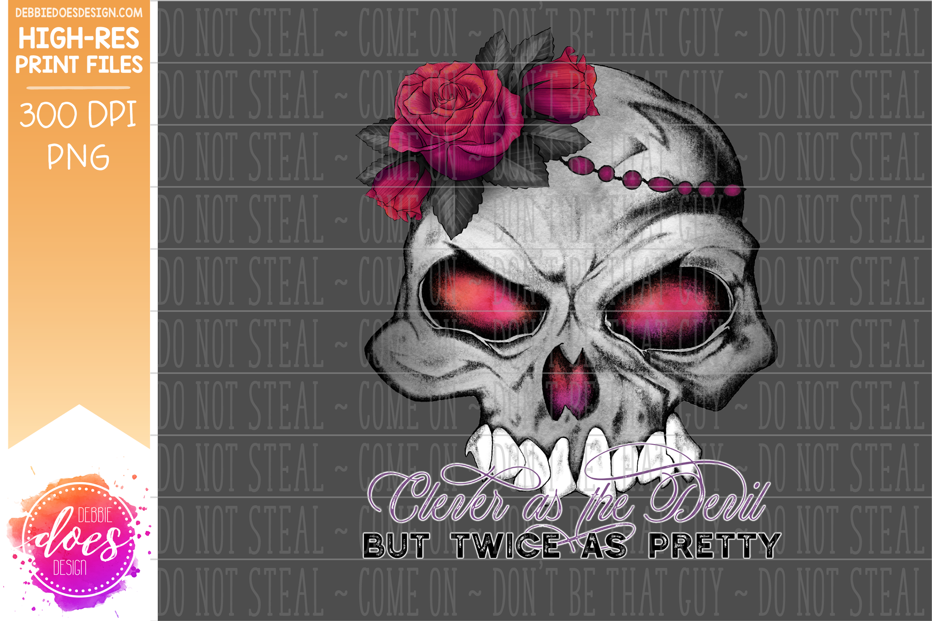 Clever as the Devil, but Twice as Pretty - Flower Skull - Printable/Sublimation File