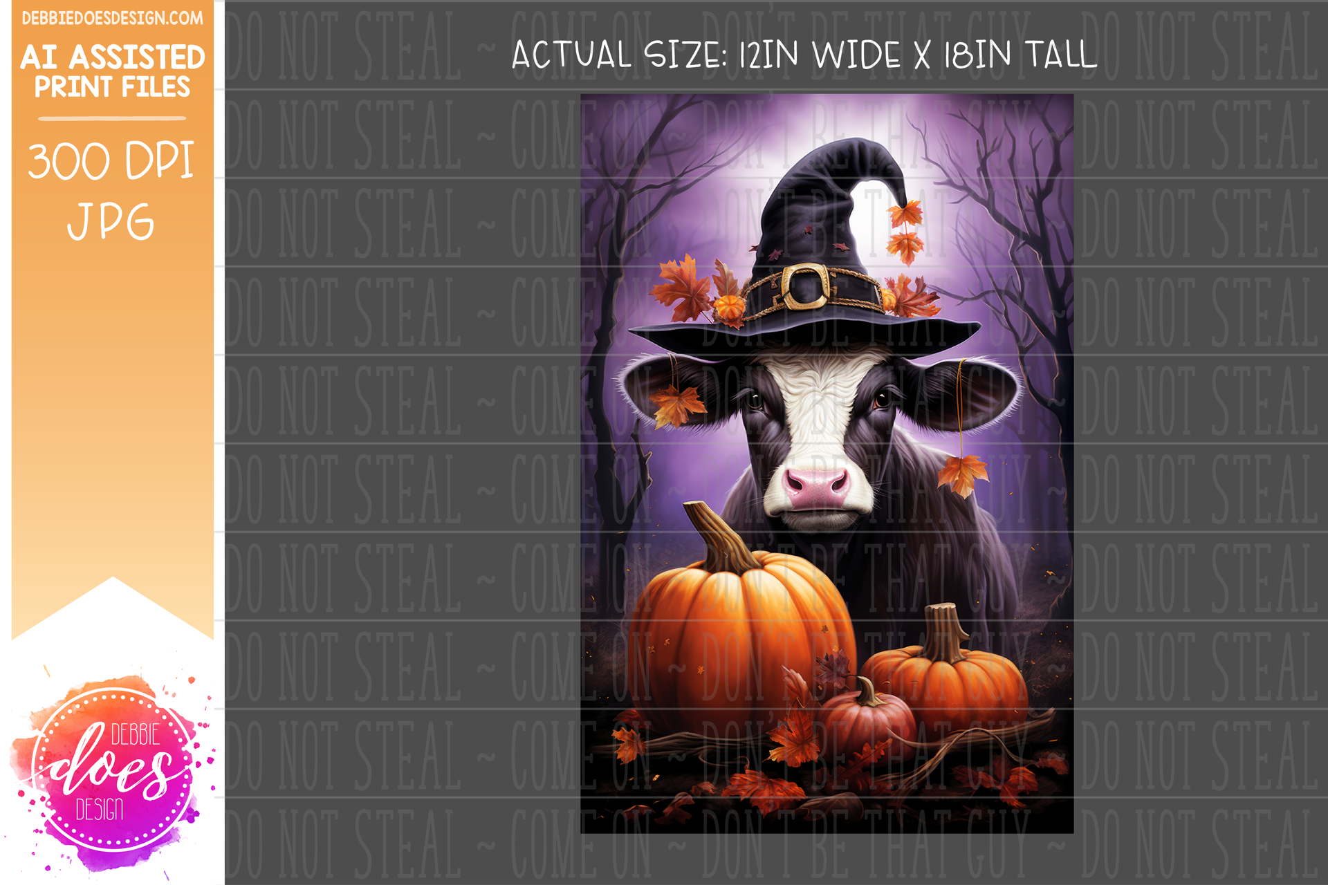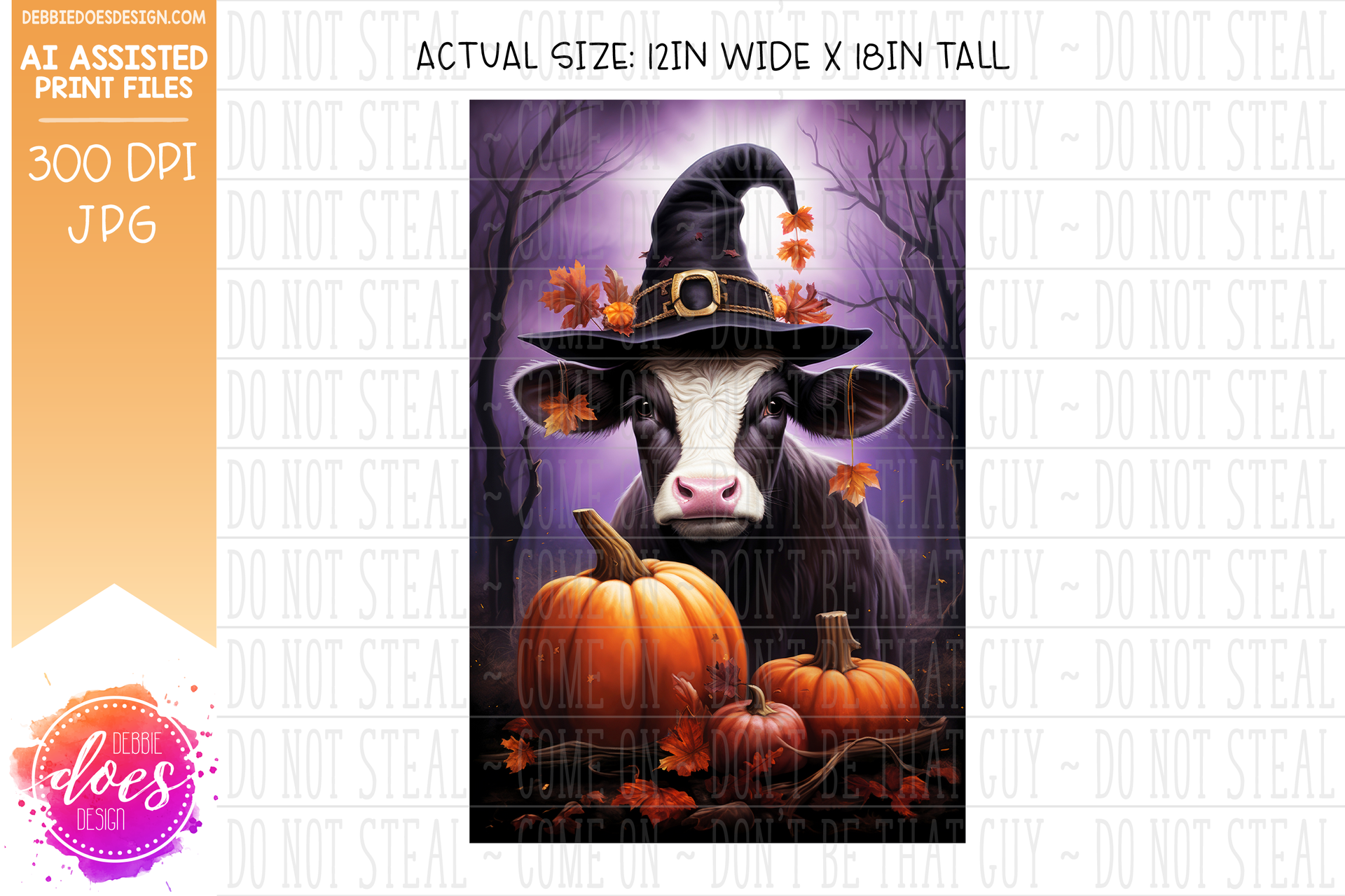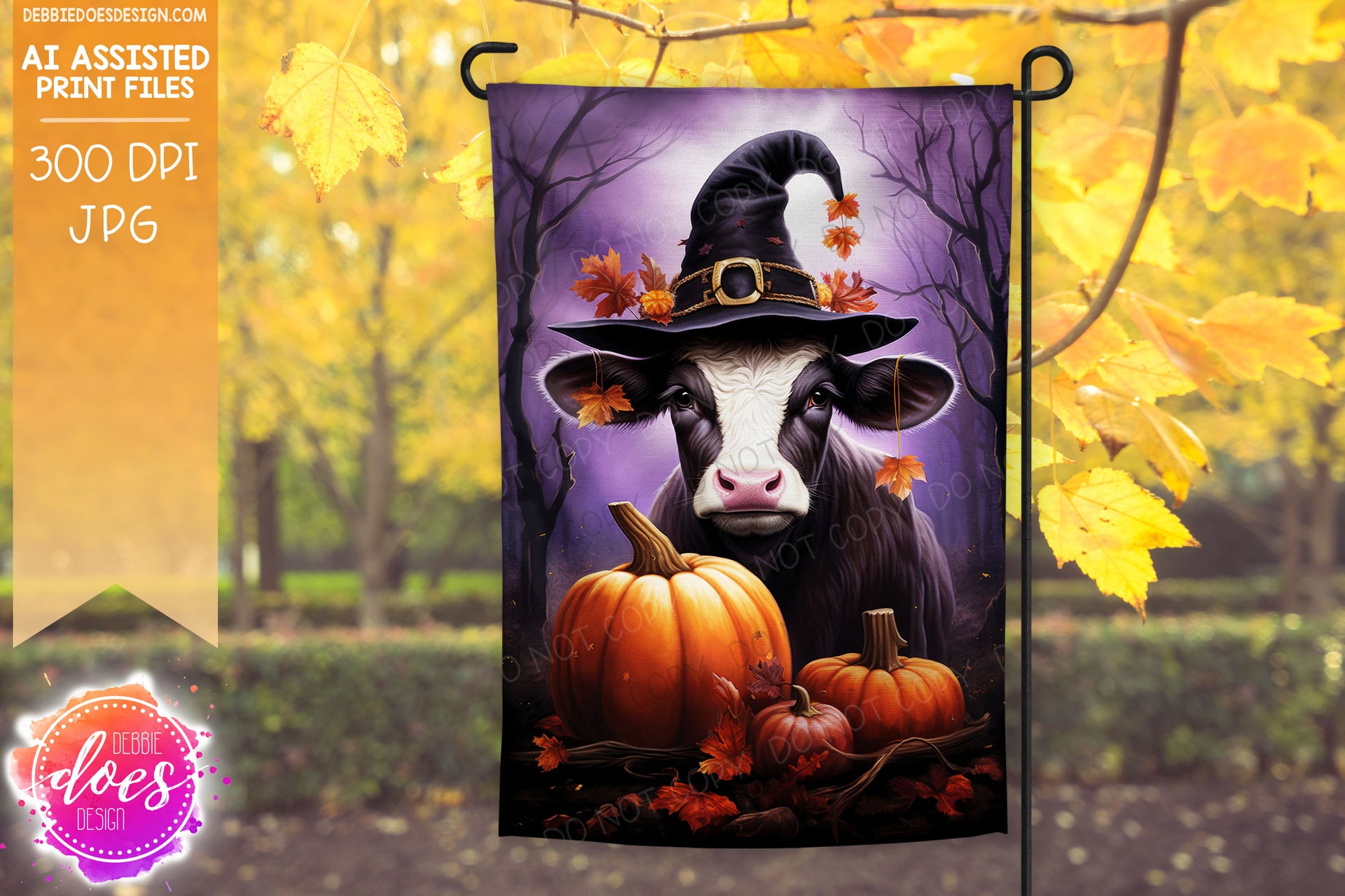 Cow in Witch Hat - Garden Flag - Printable/Sublimation Design