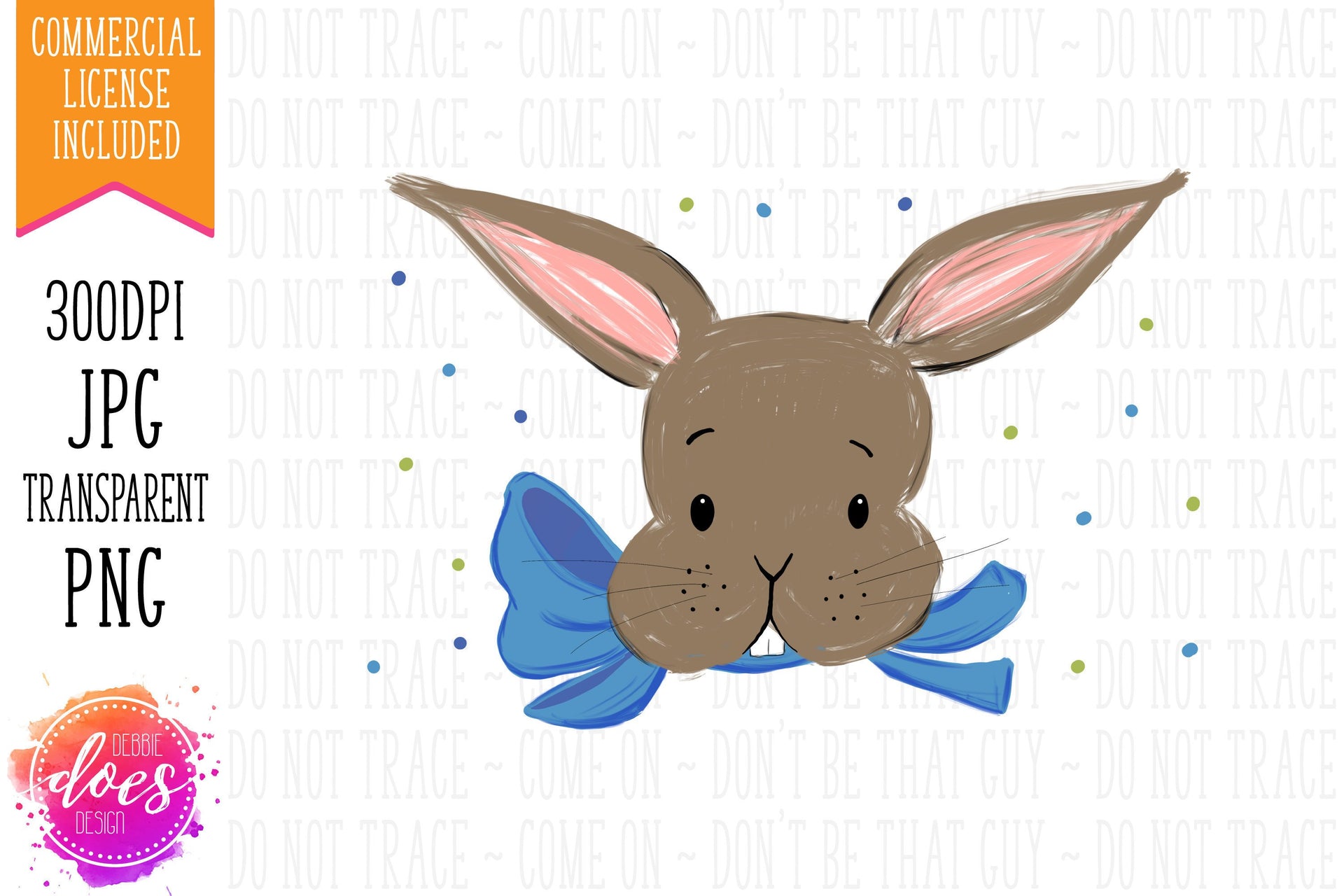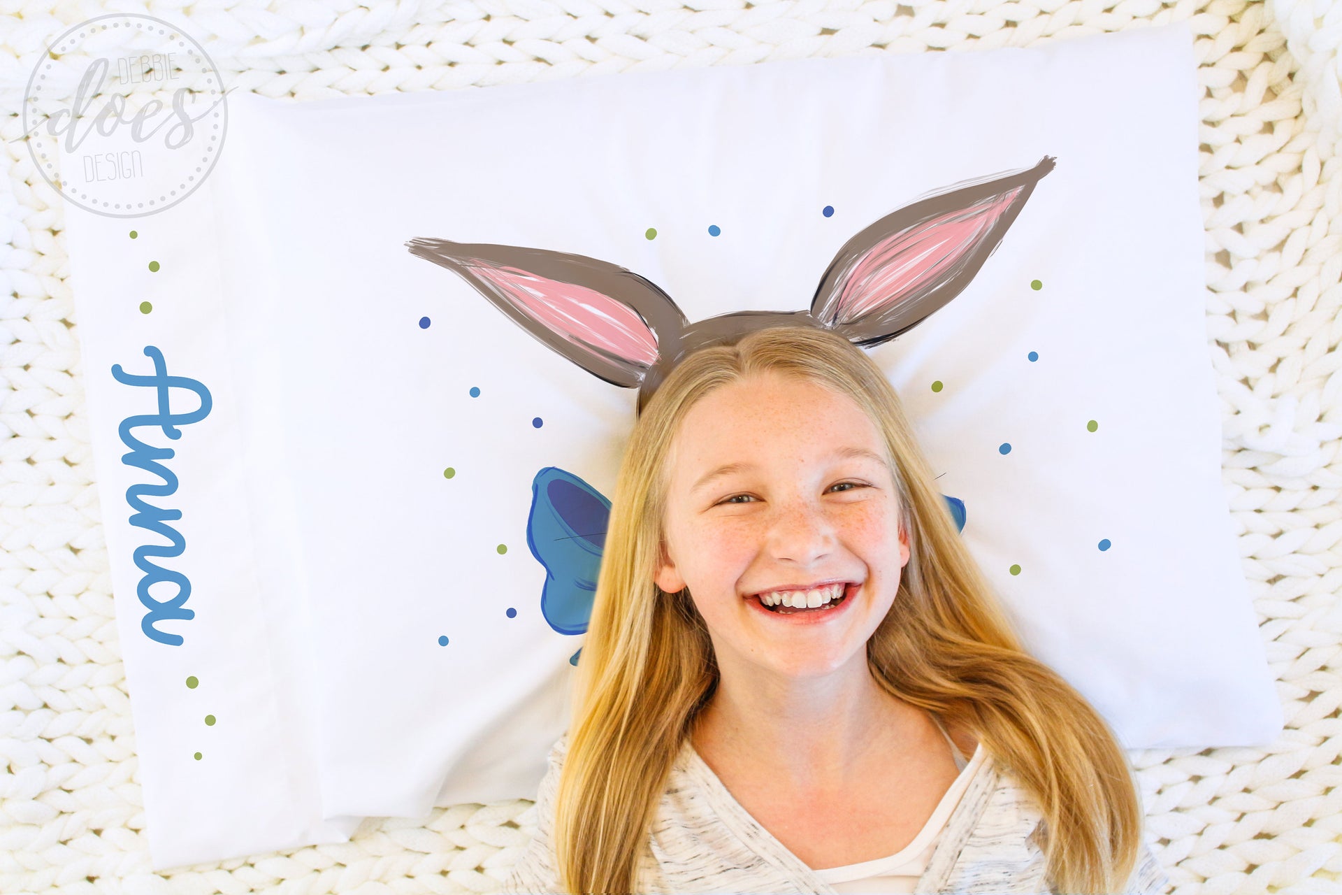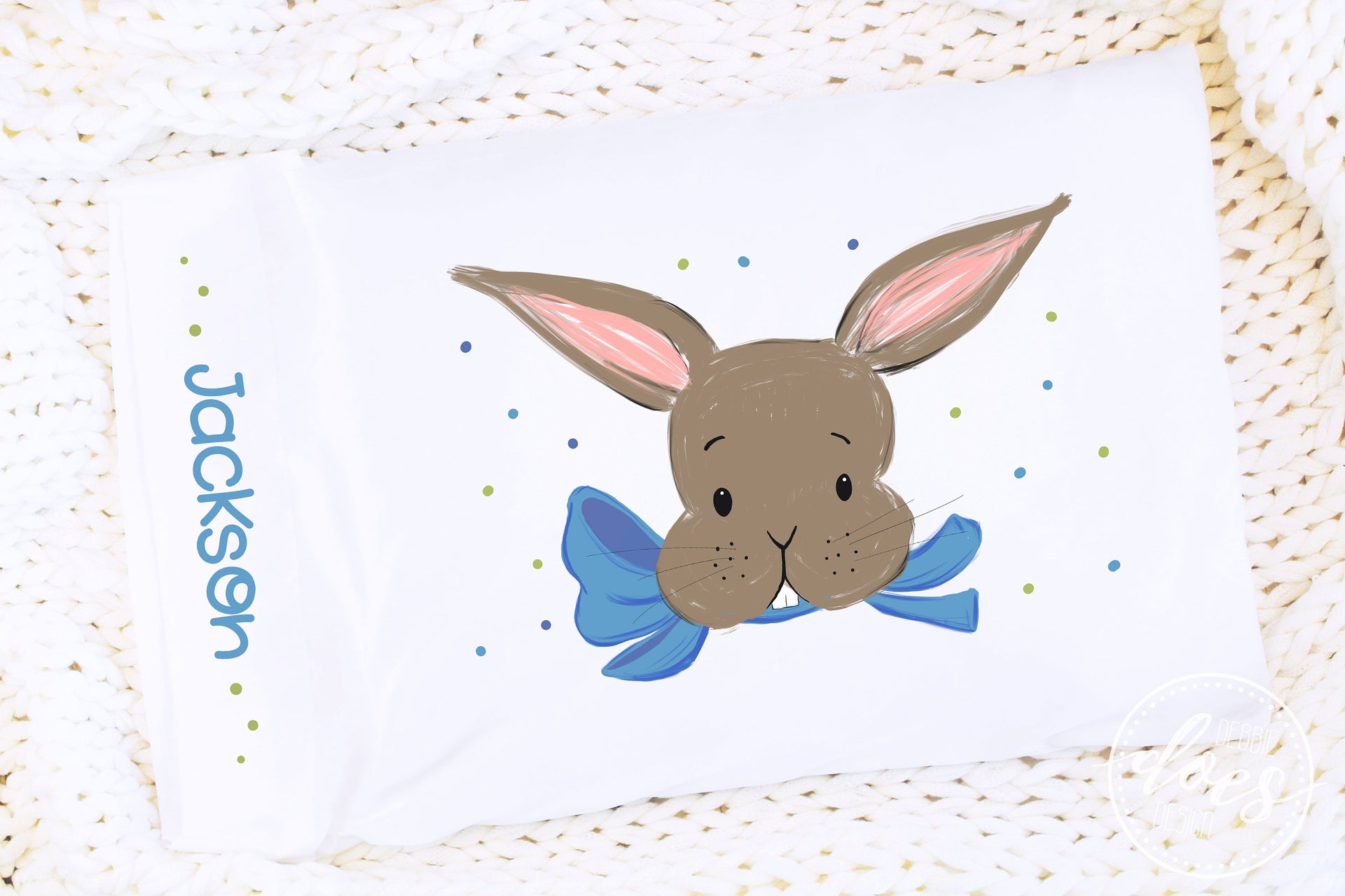 Easter Bunny with Blue Bow - Pillowcase Design - Sublimation/Printable Design