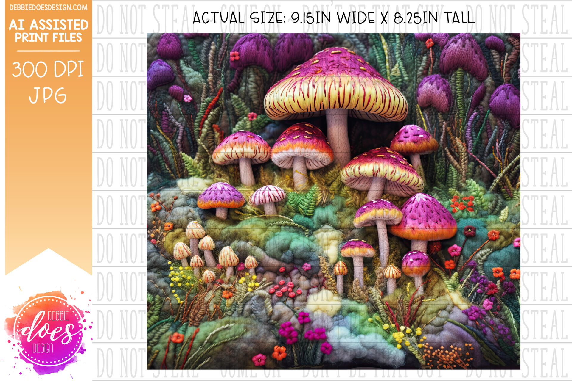 Embroidery Pattern Tumbler - Mystical Mushroom Forest 13 - Printable/Sublimation Design