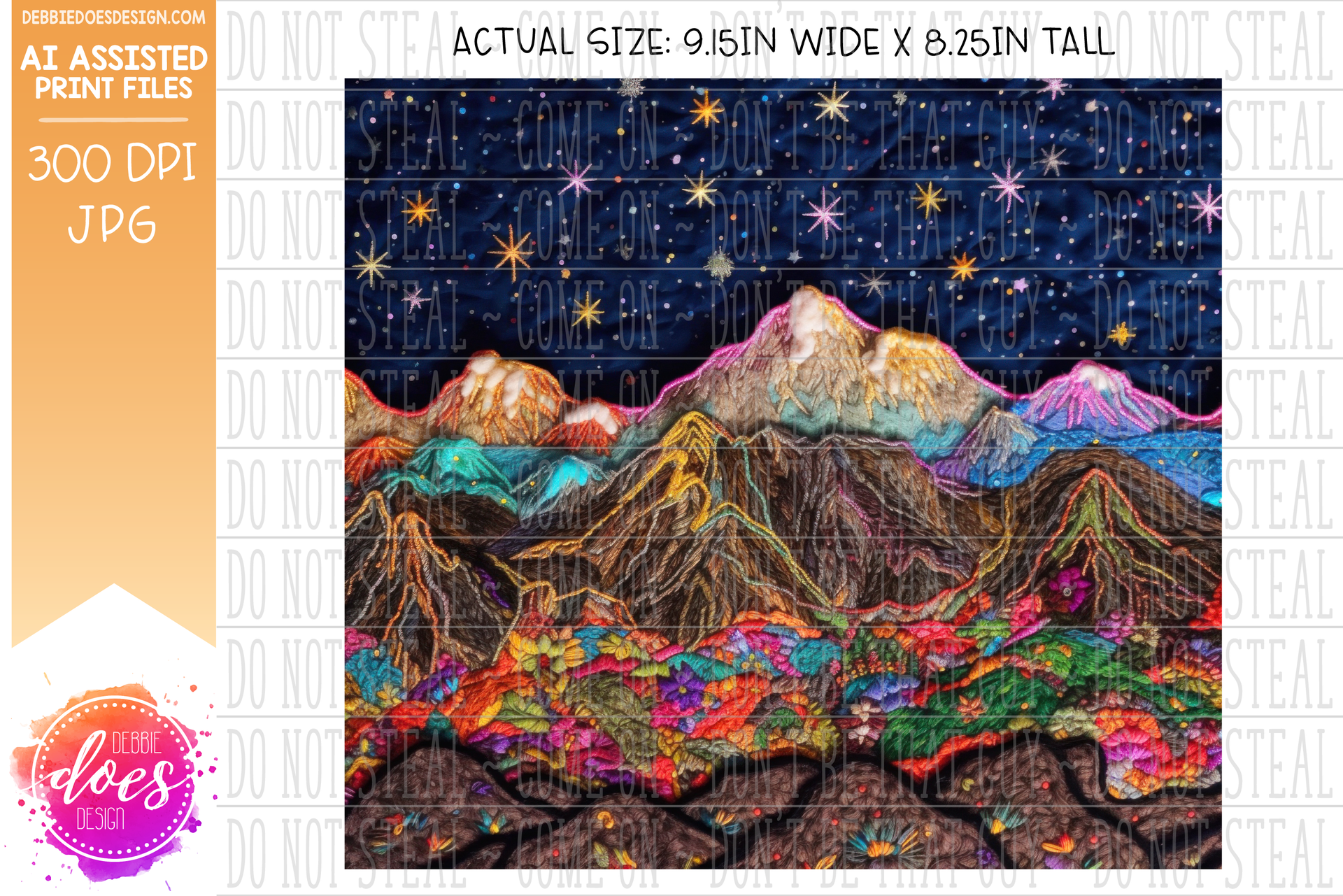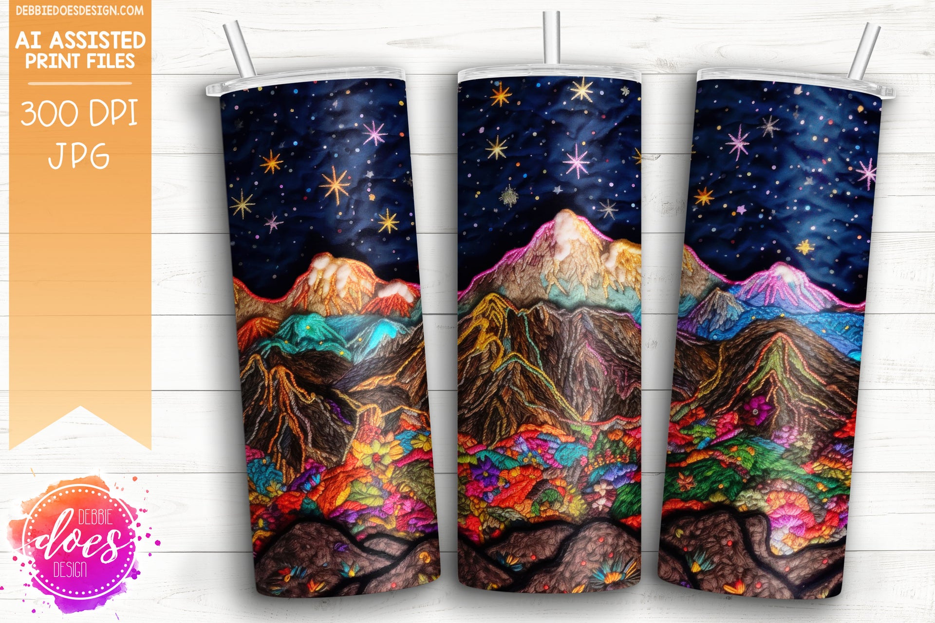 Embroidery Pattern Tumbler - Stars and Mountains 2 - Printable/Sublimation Design