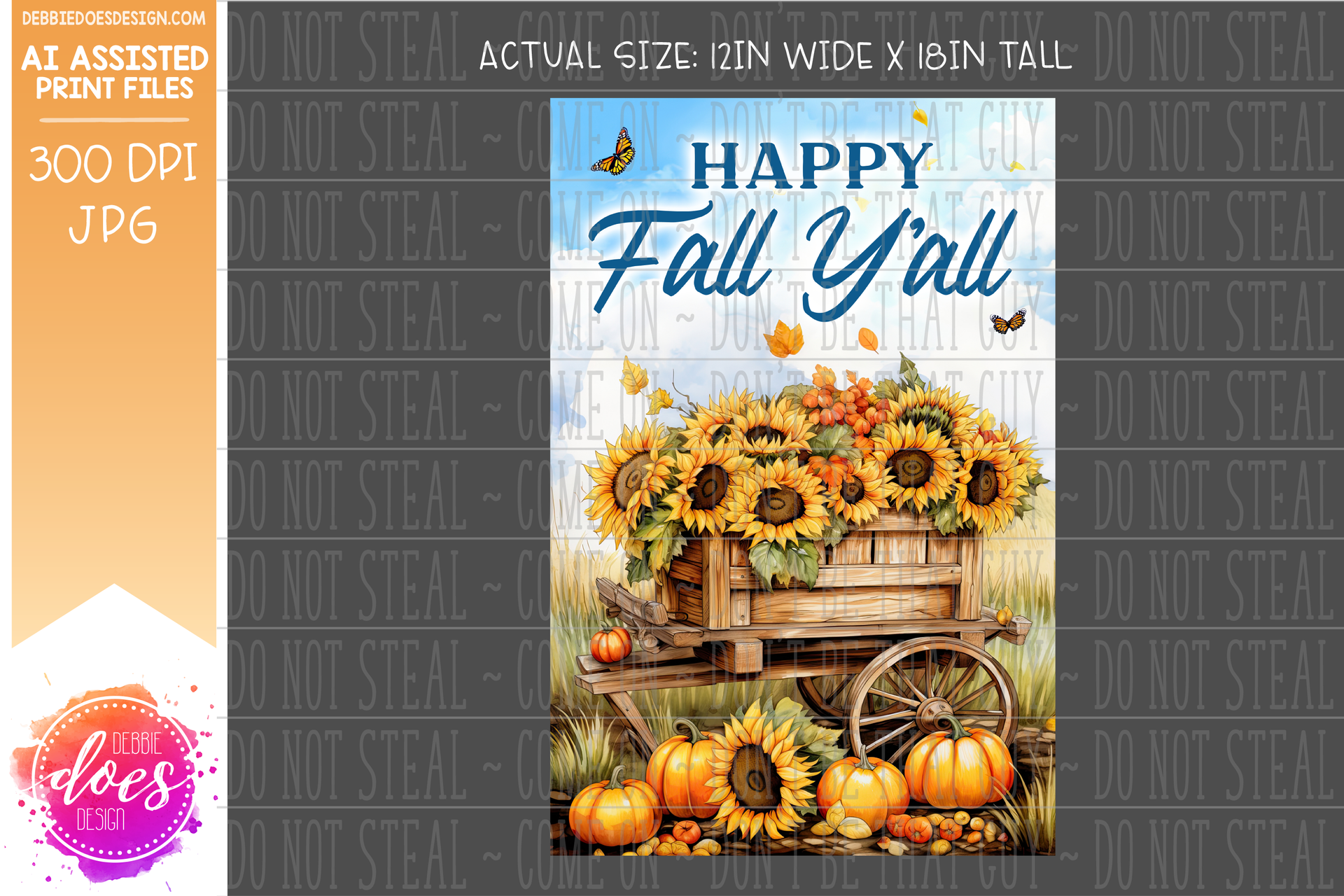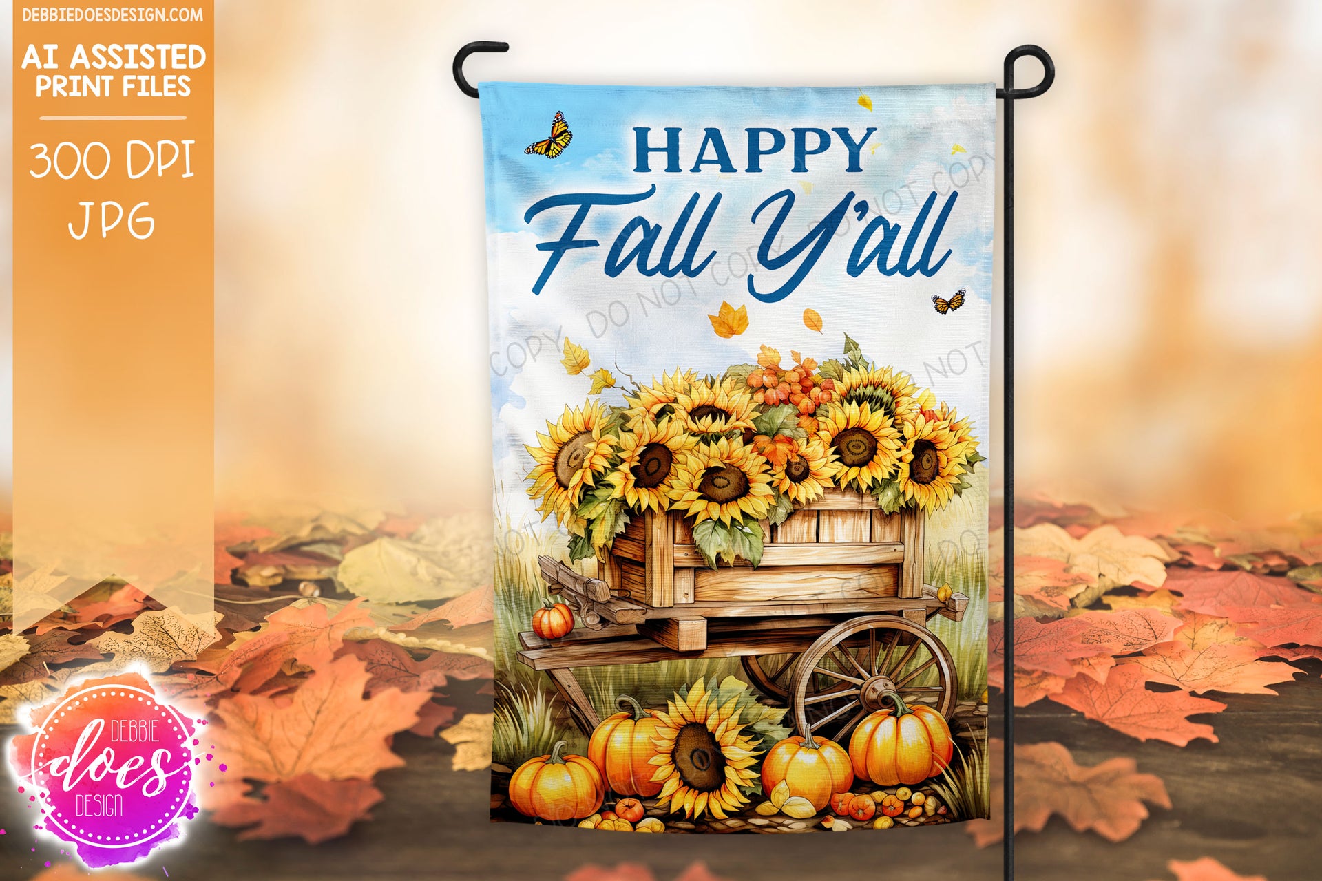 Fall Wagon of Sunflowers - Happy Fall Y'all - Garden Flag - Printable/Sublimation Design