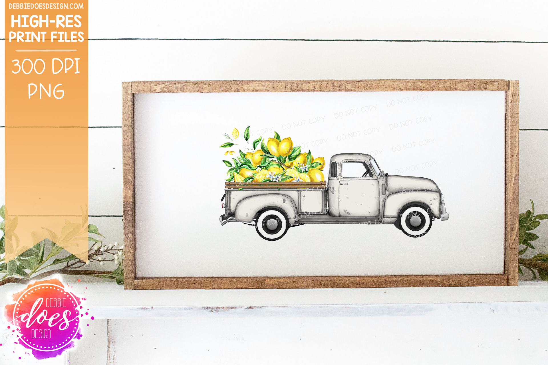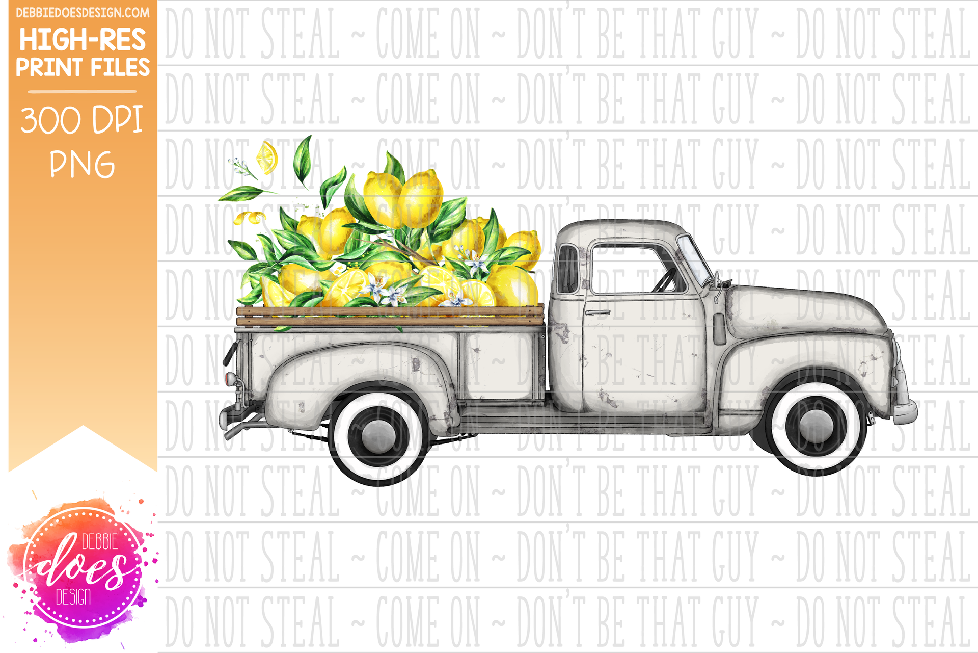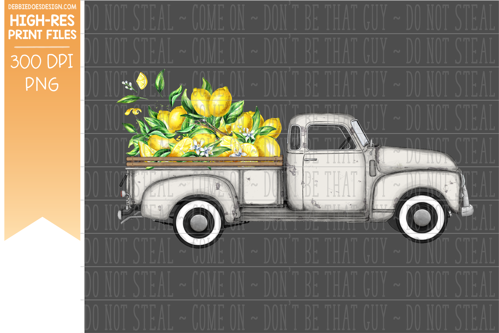 Farmhouse Truck - Lemons - Light Grey Truck - Sublimation/Printable Design