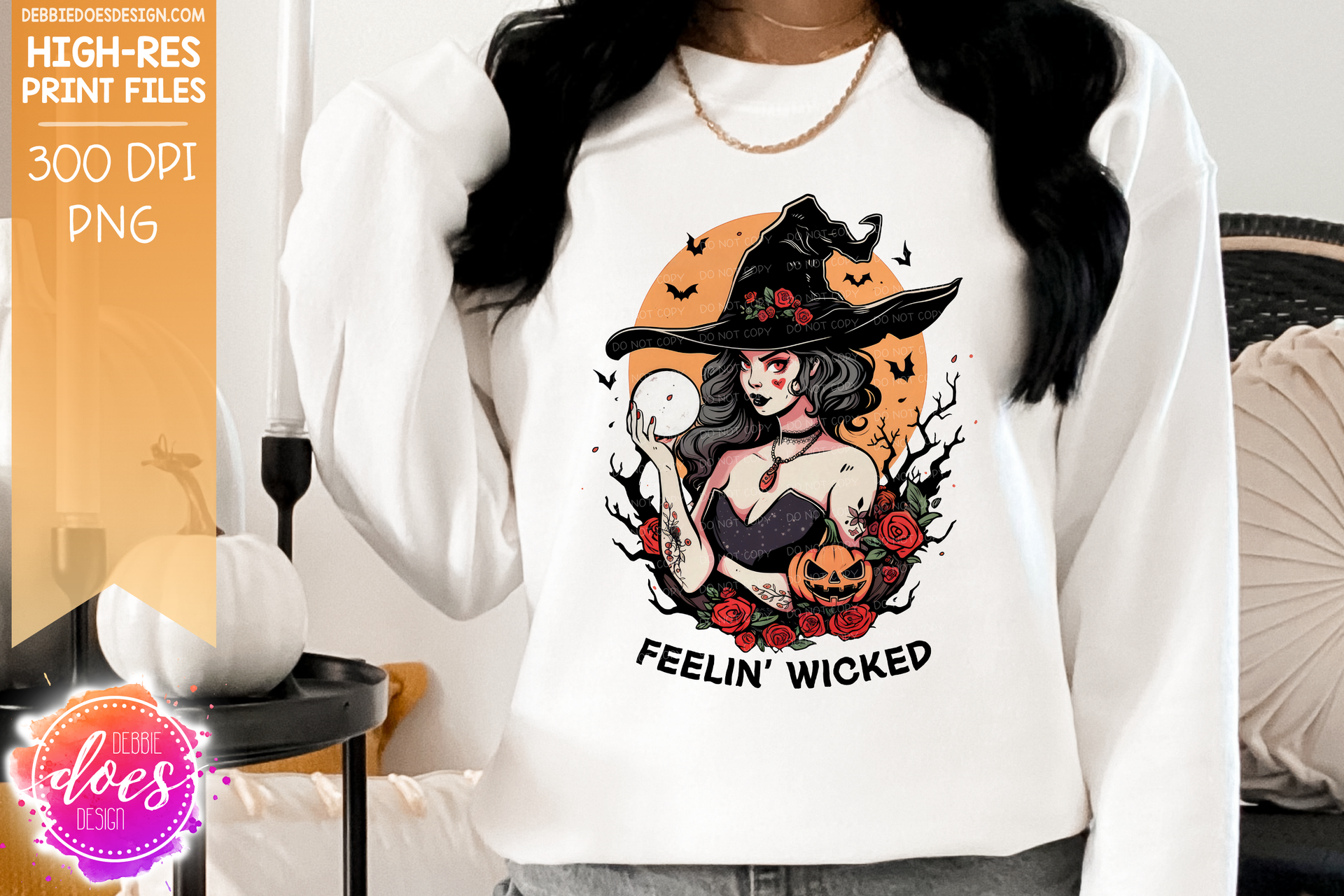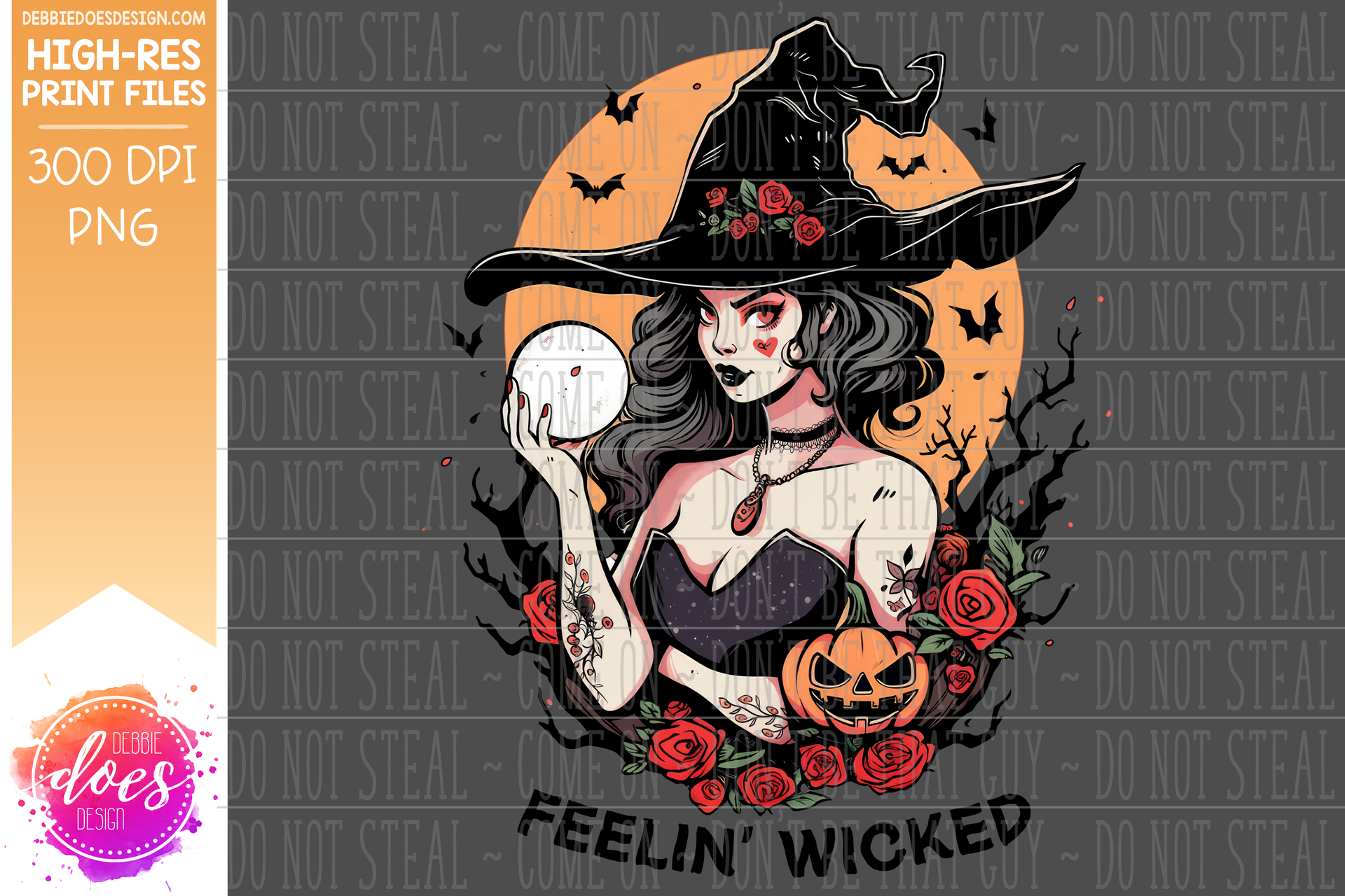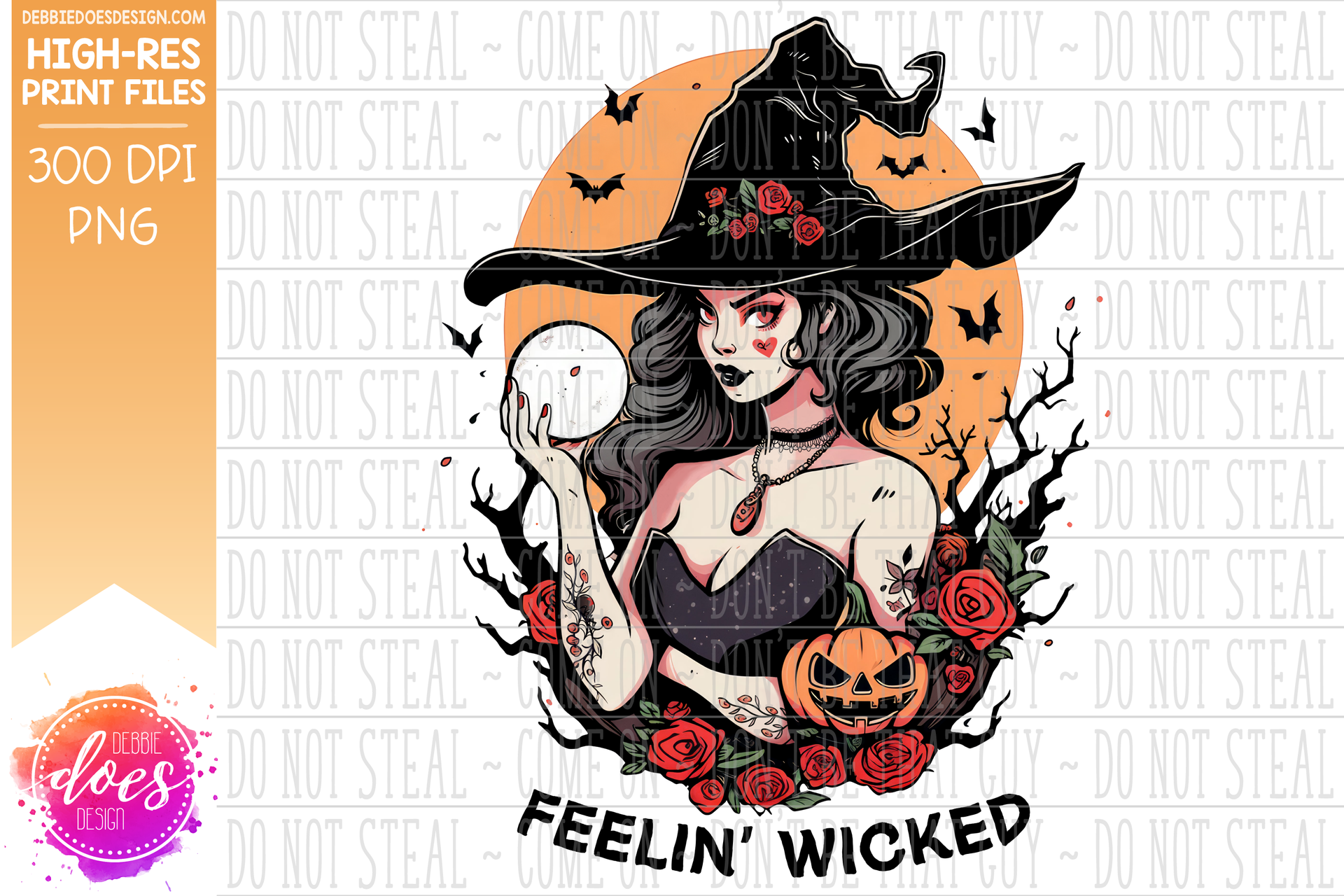Feelin Wicked - Tattooed Witch - Light Skin - Printable/Sublimation Design