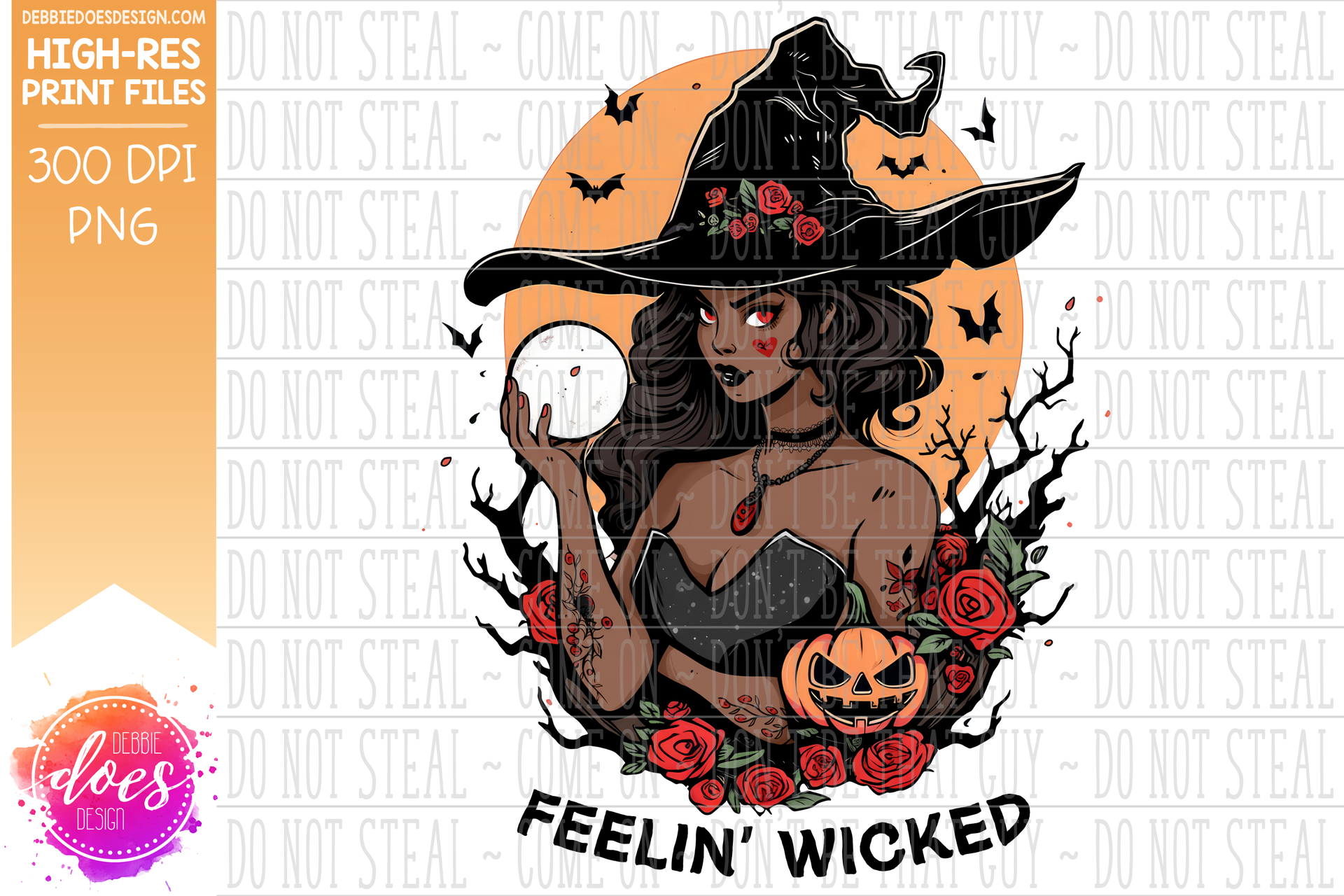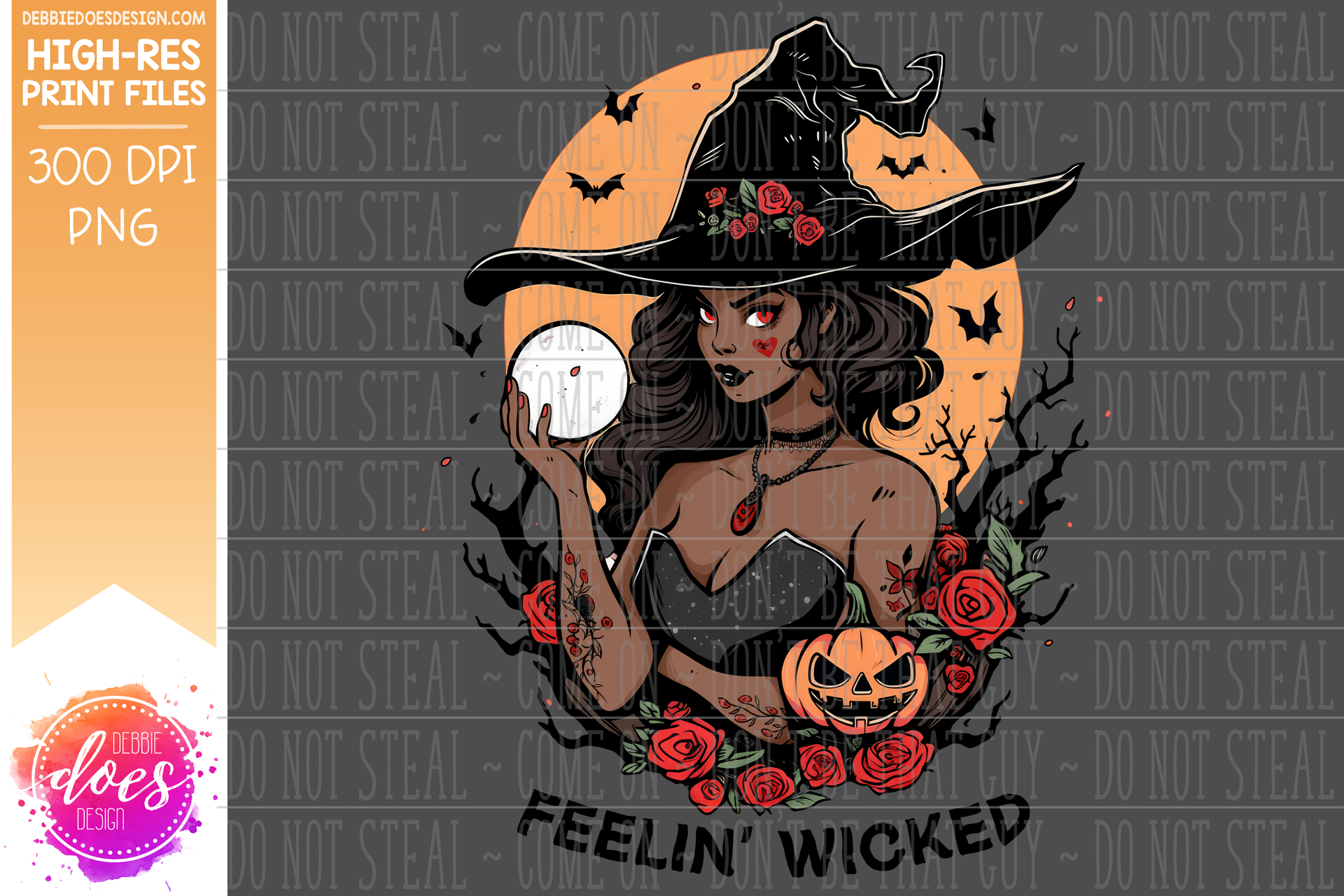 Feelin Wicked - Tattooed Witch - Dark Skin - Printable/Sublimation Design