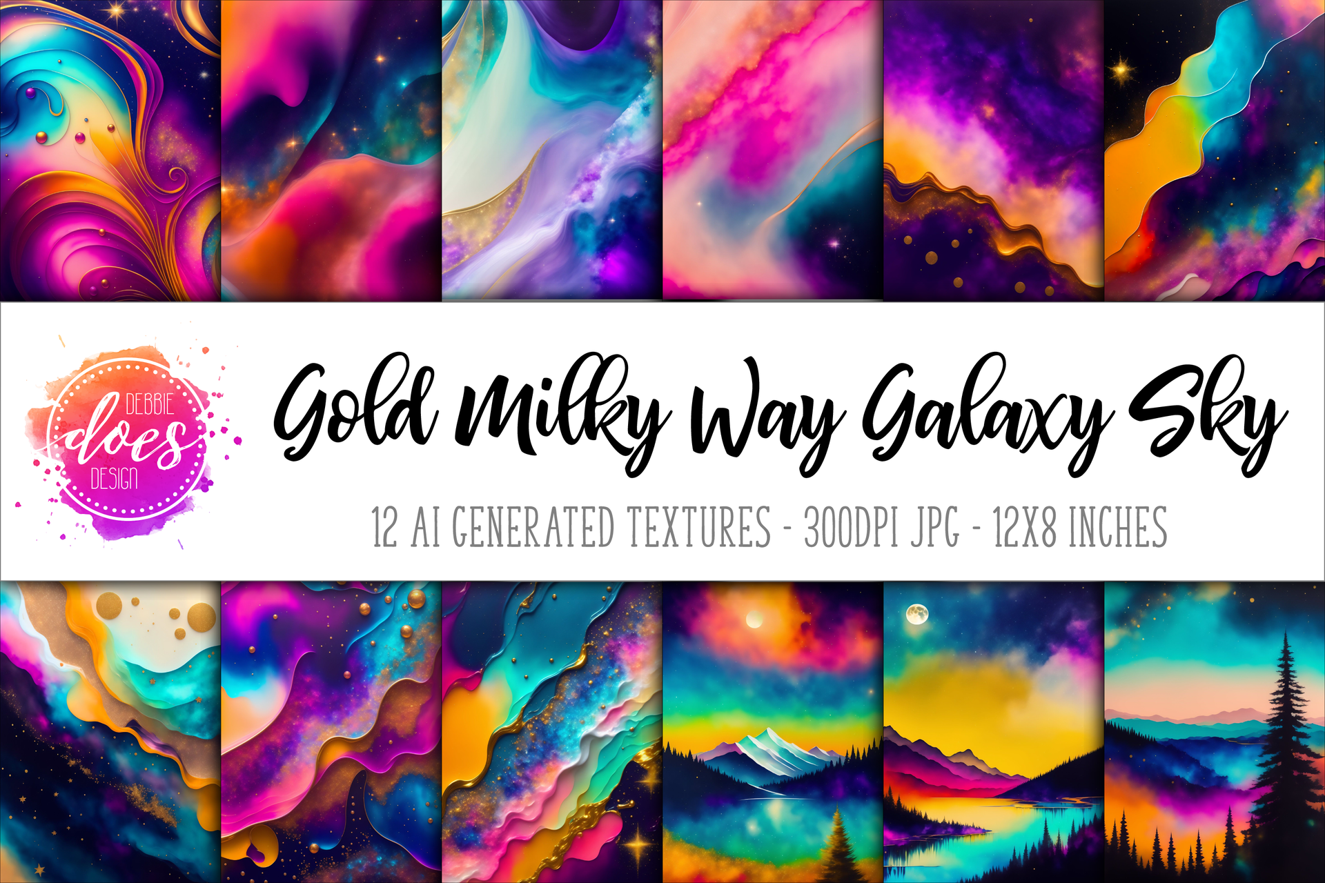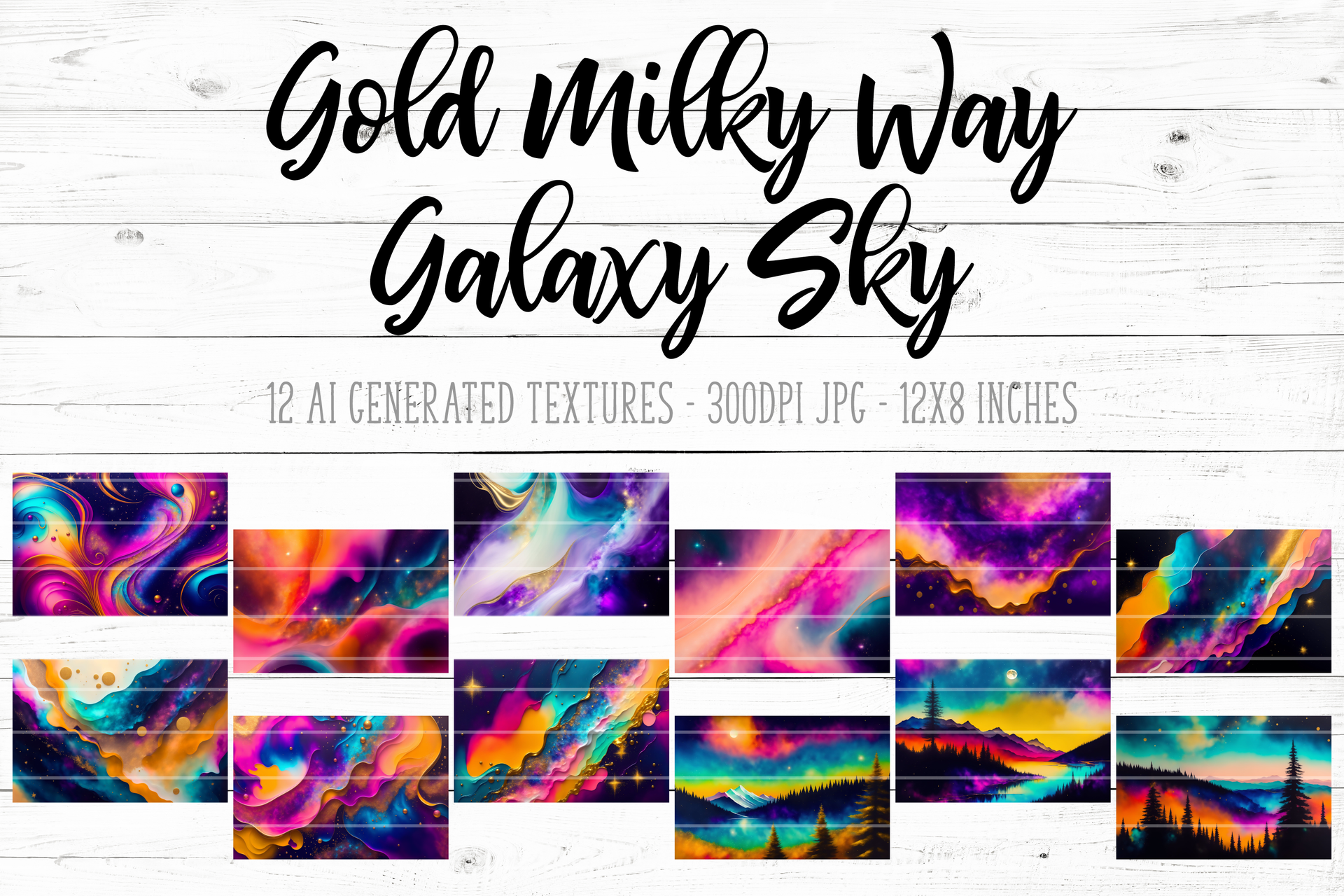 Gold Milky Way Galaxy Sky - Digital Paper/Texture Set - Design Elements