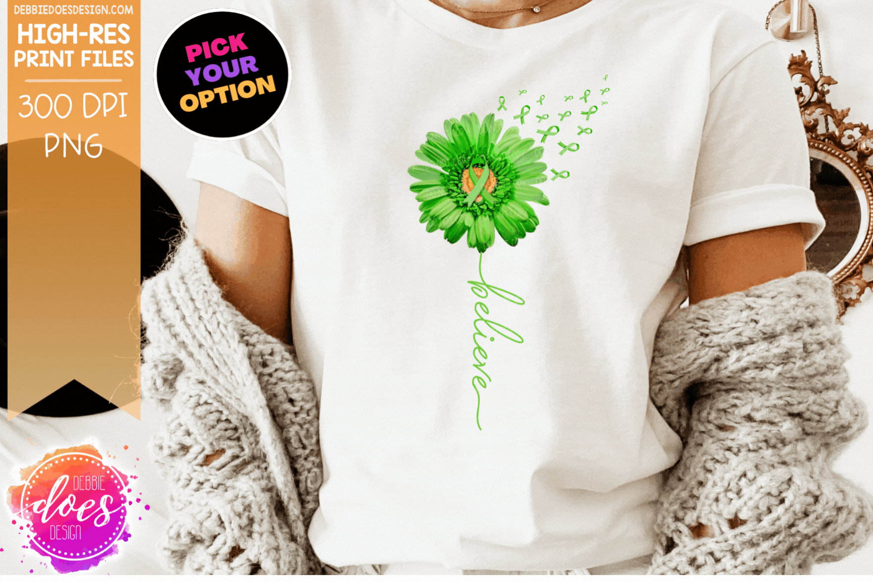 Green Awareness Daisy - Choose your Option - Printable/Sublimation File