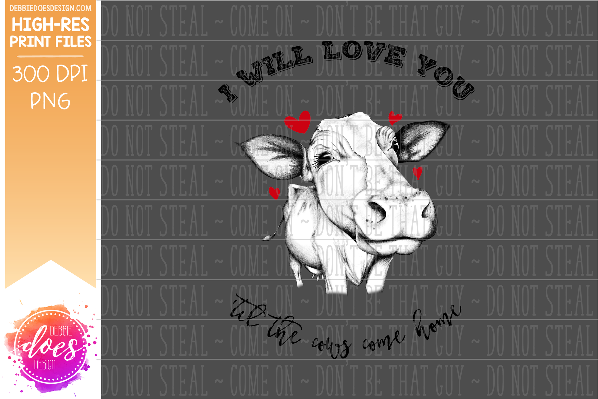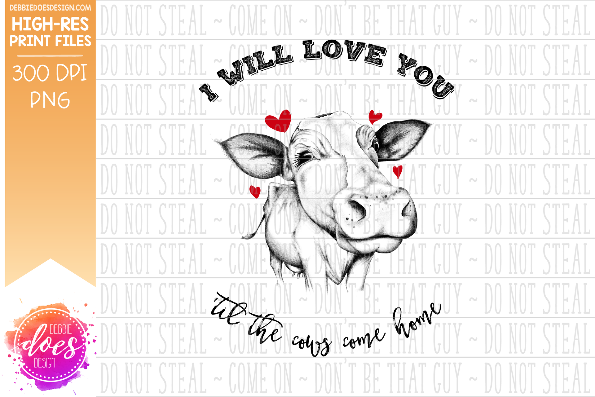 I Will Love You Til the Cows Come Home - Hand Drawn Cow Print - Printable/Sublimation File