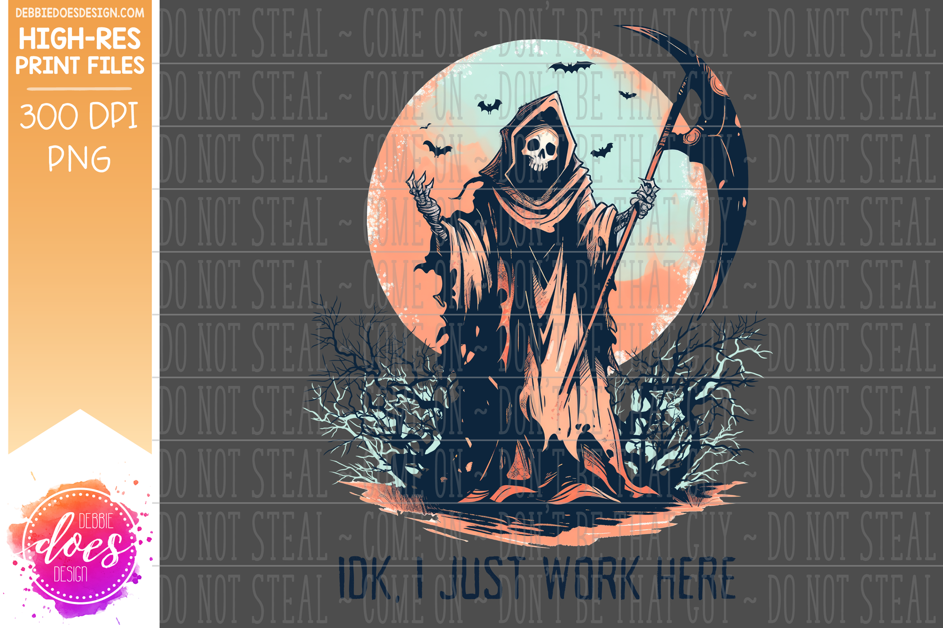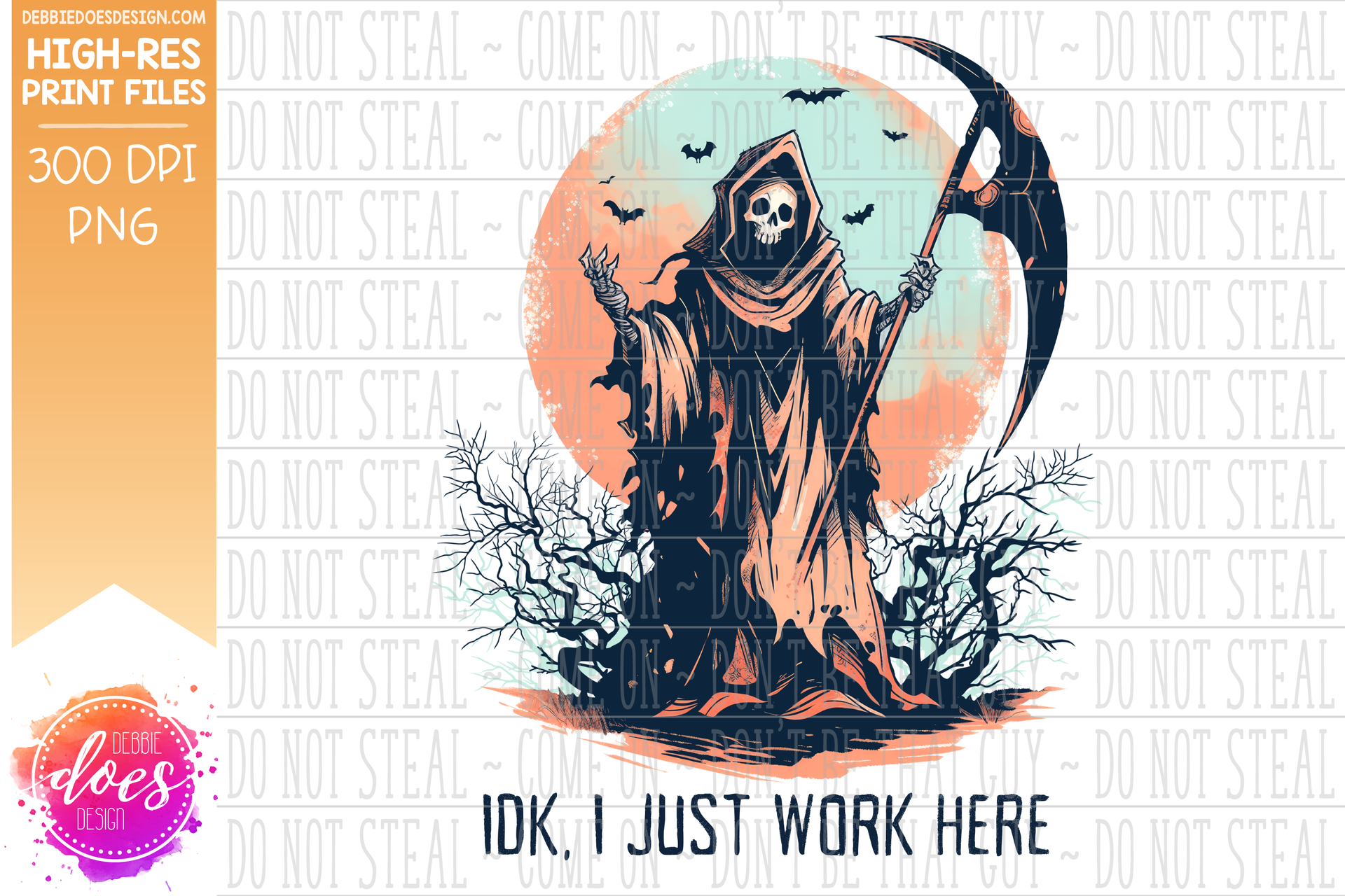 IDK I Just Work Here Grim Reaper - Coral - Printable/Sublimation Design