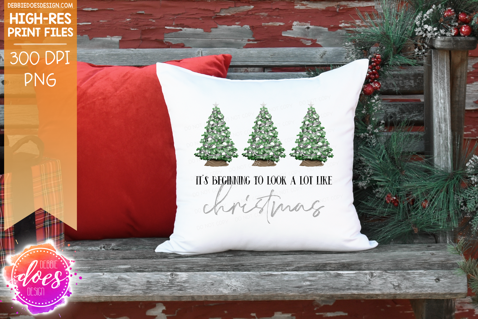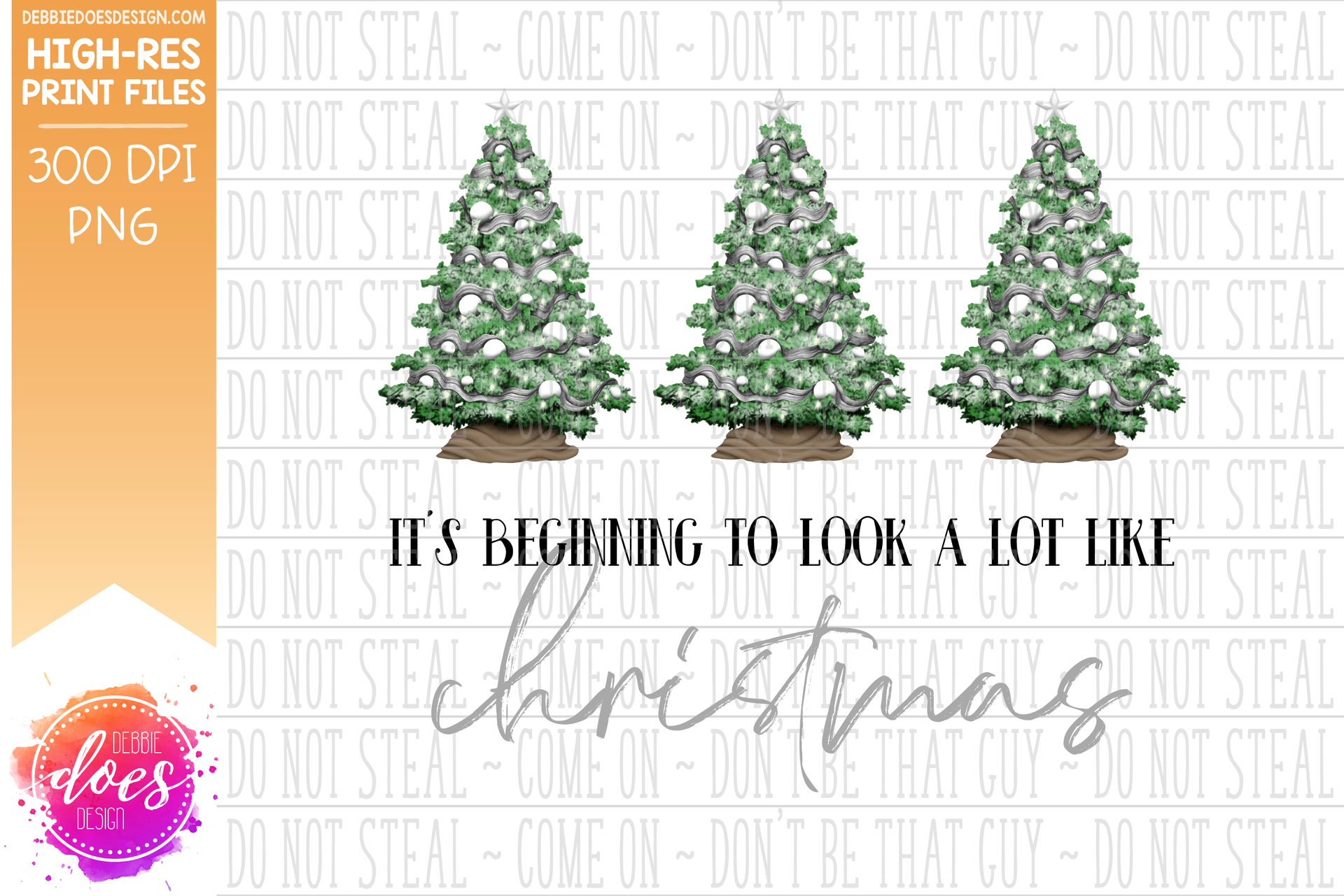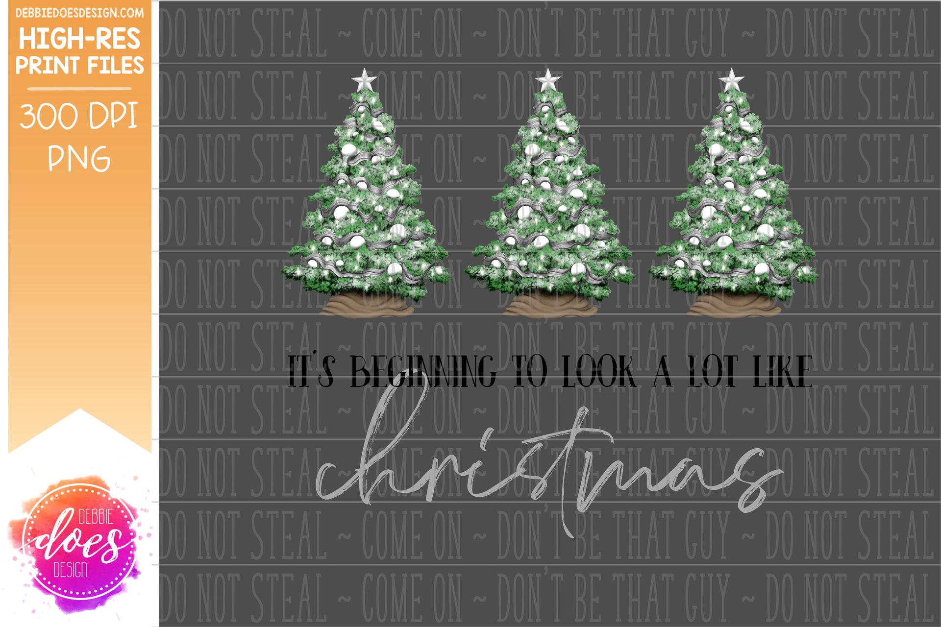 It's Beginning to Look a Lot Like Christmas - Silver Hand Drawn Trees - Sublimation/Printable Design