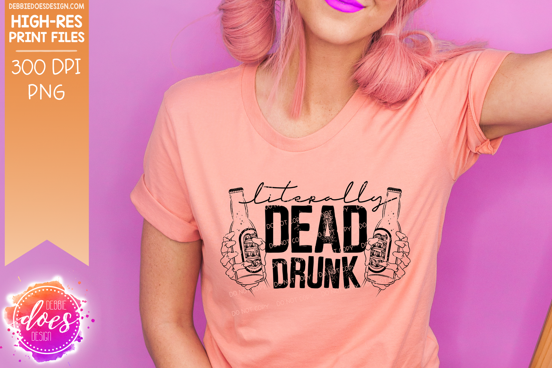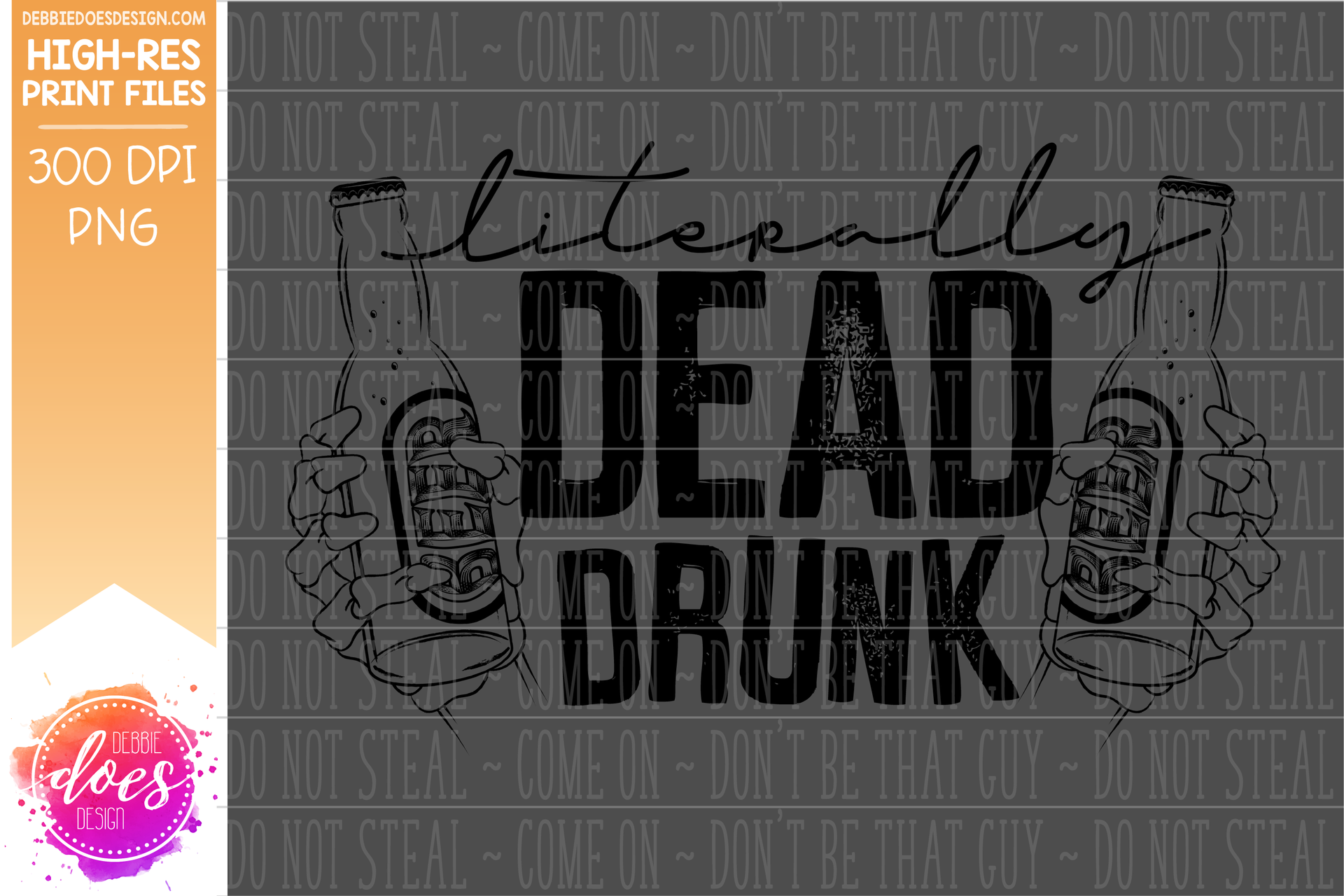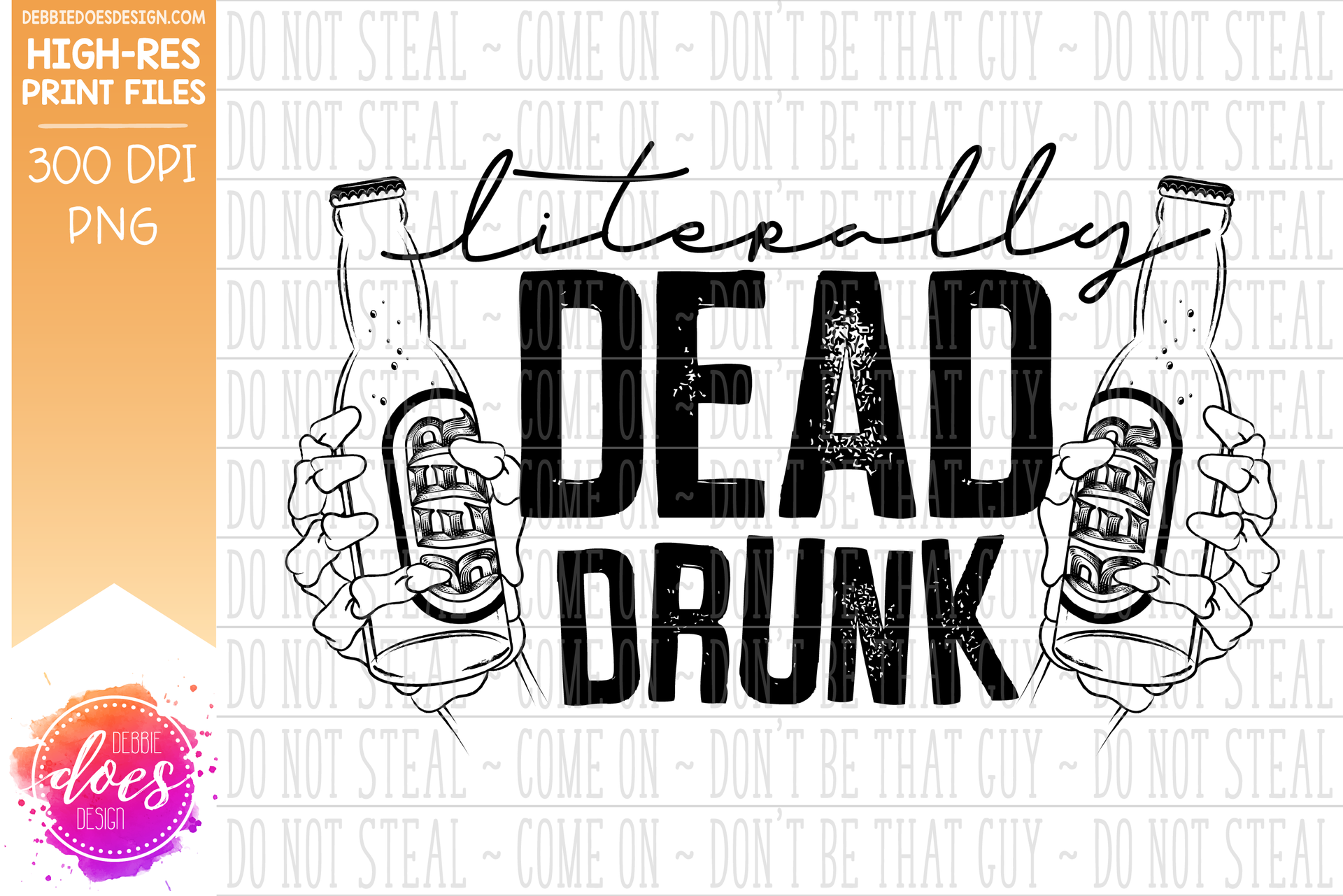 Literally Dead Drunk - Black Outline Beer Skeleton Hands - Printable/Sublimation Designs