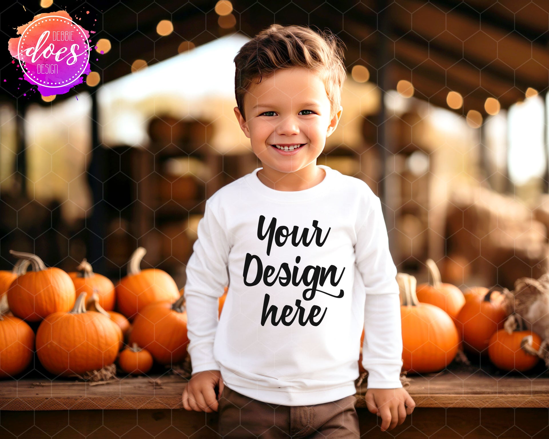 Little Boy Tee Mockup - Pumpkins - Brunette