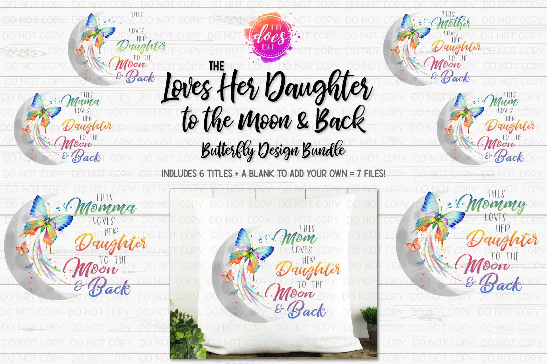 Loves Her Daughter - To the Moon & Back - Butterfly Design Bundle - 7 Versions! - Sublimation/Printable Design